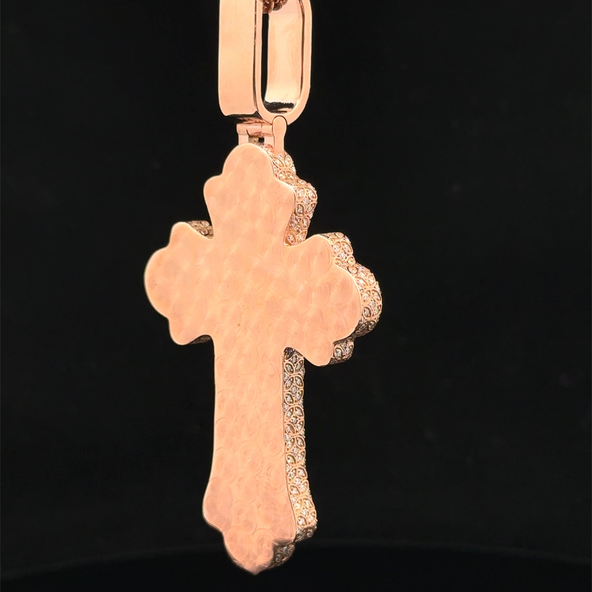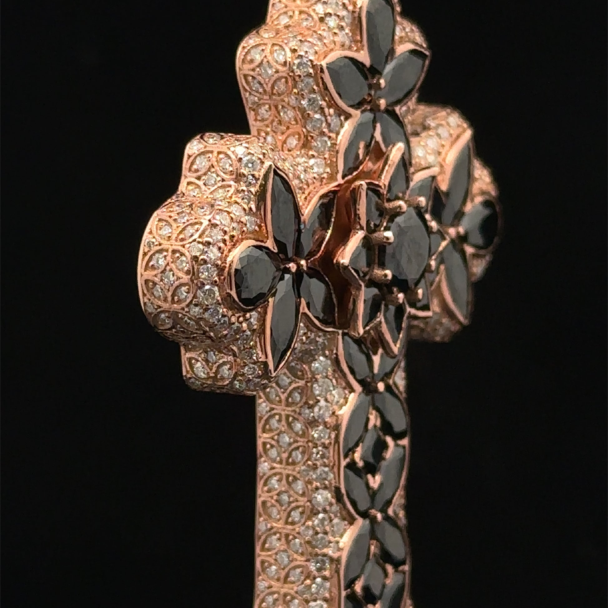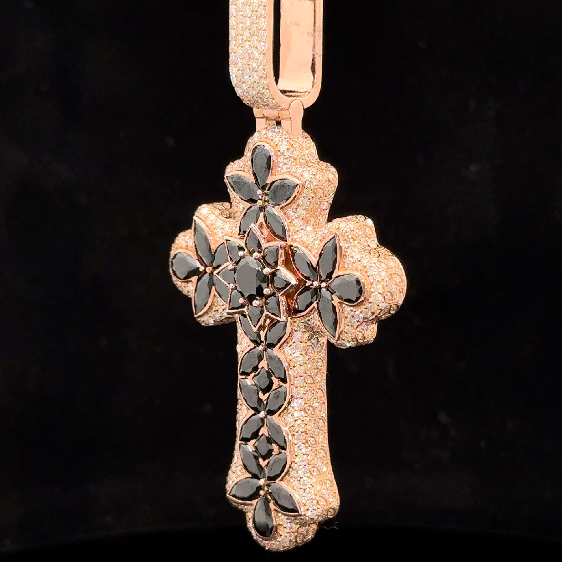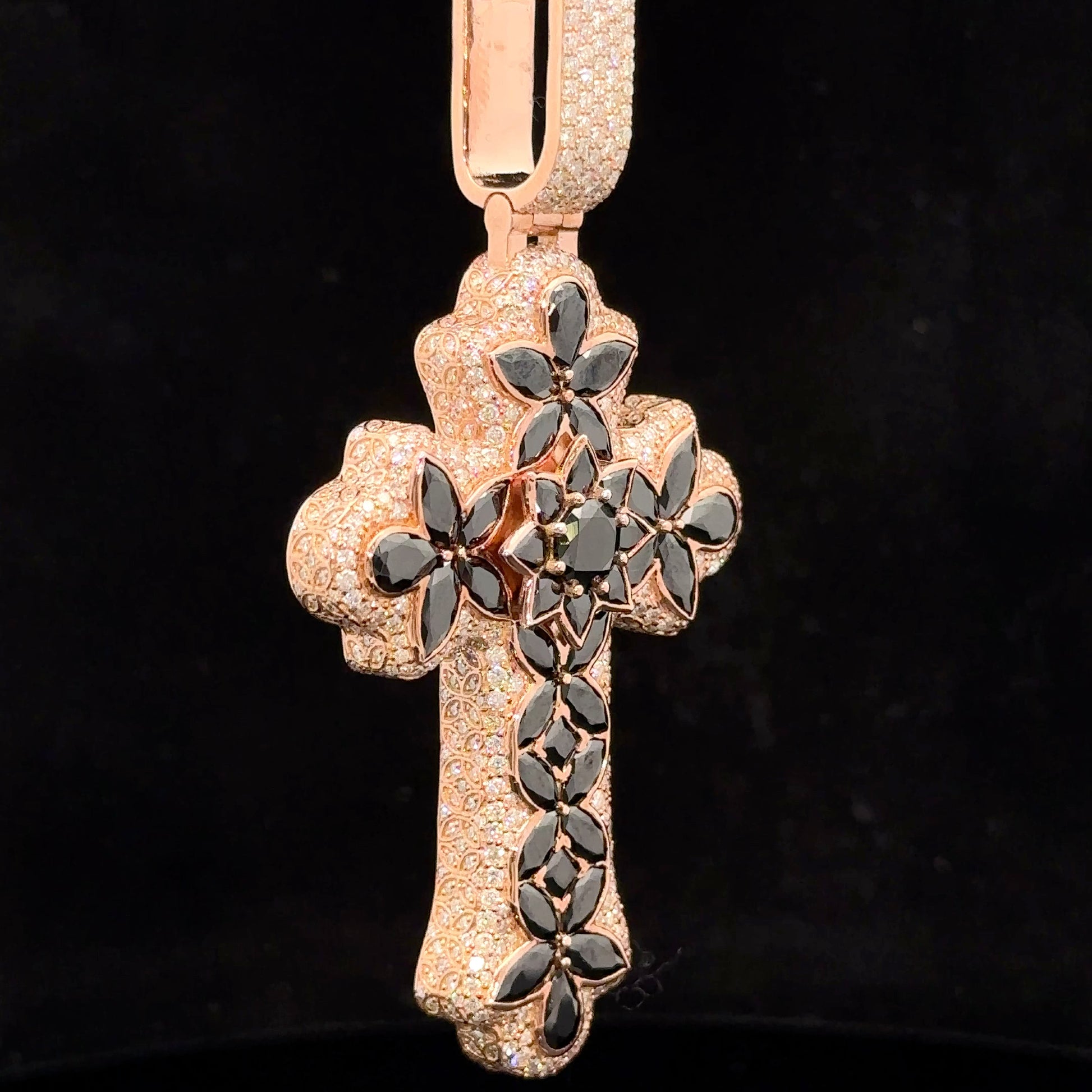 Rose gold and 5ct diamond Cross Pendant with round diamonds and black stones.