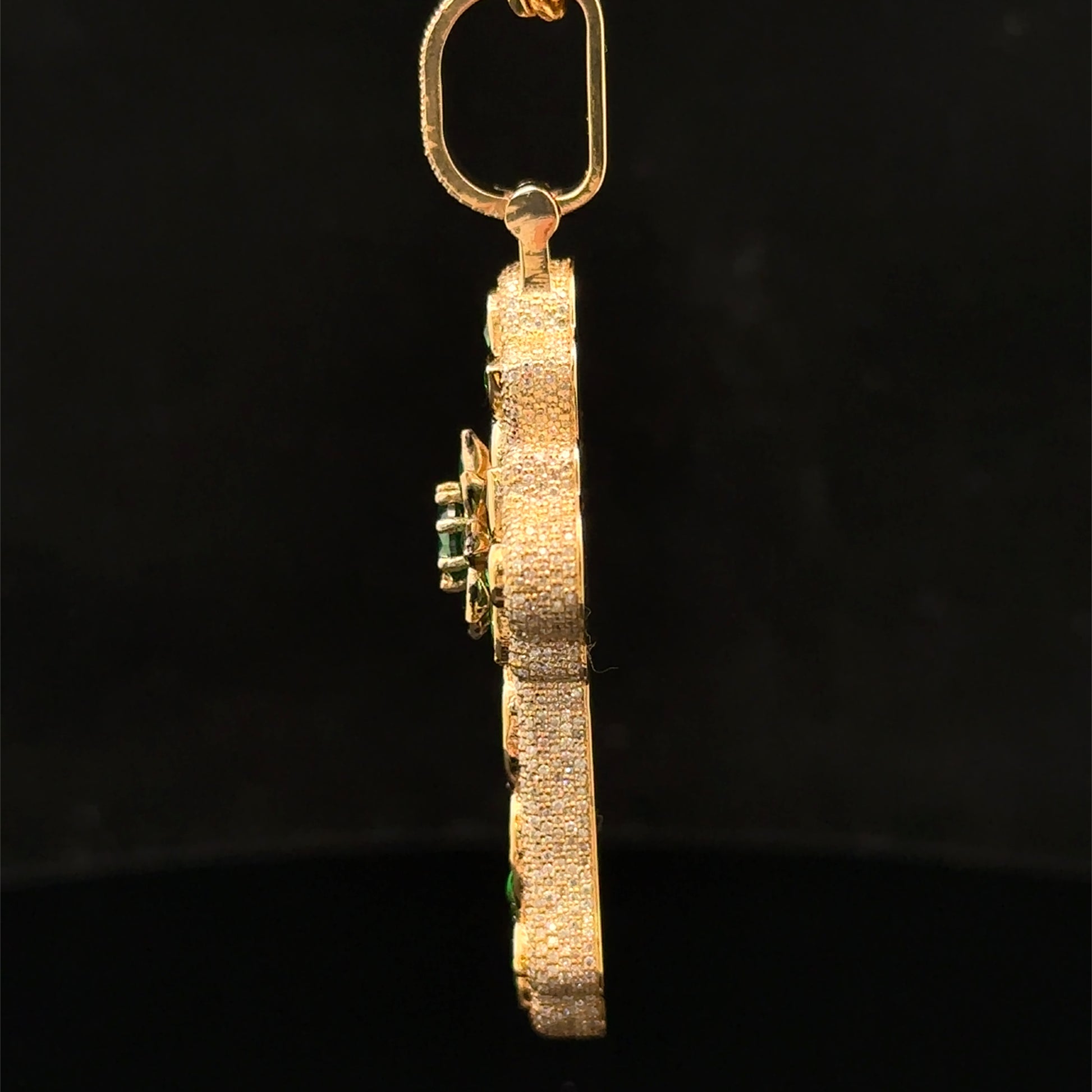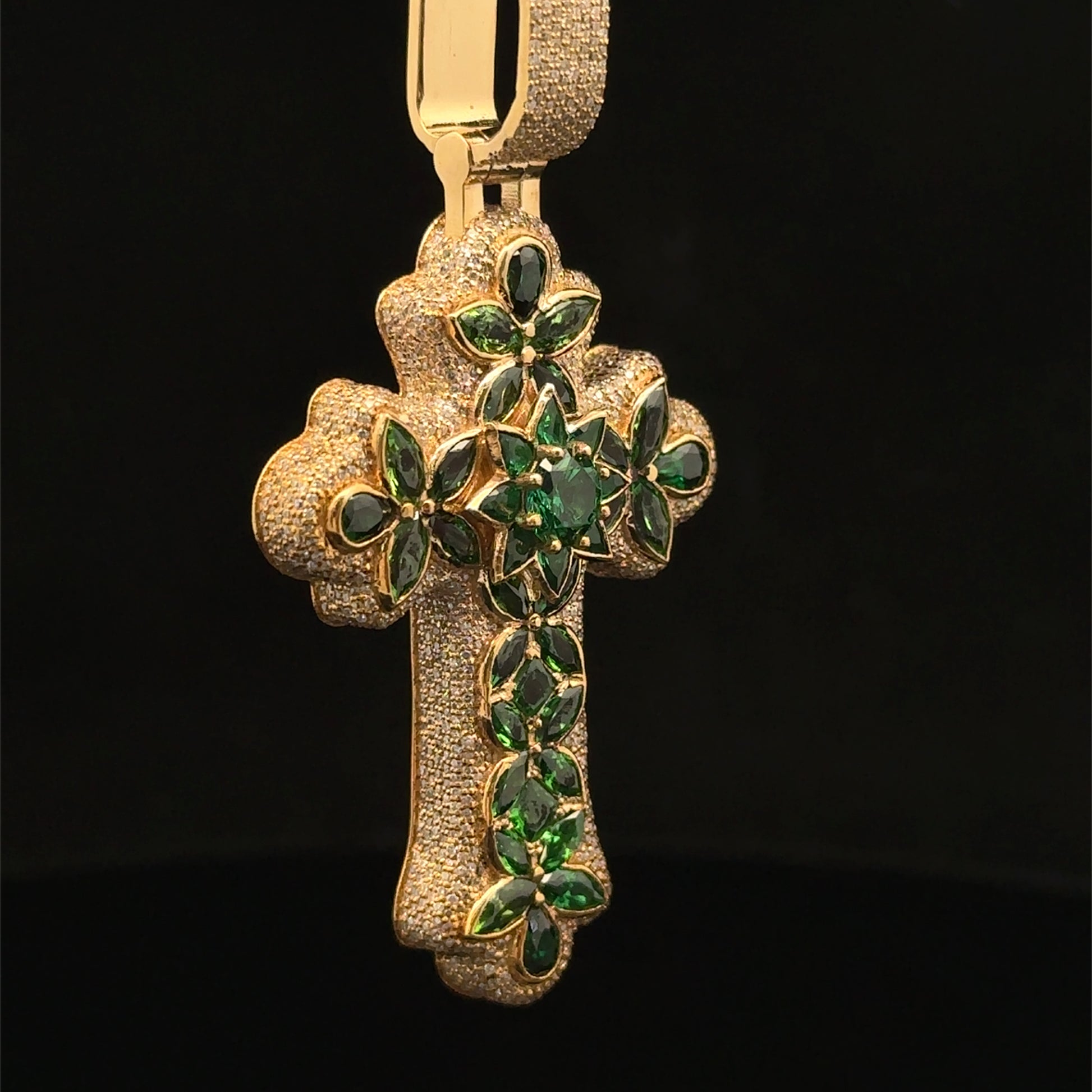 10K Yellow Gold Cross Pendant with Diamonds & Multicolored Stones