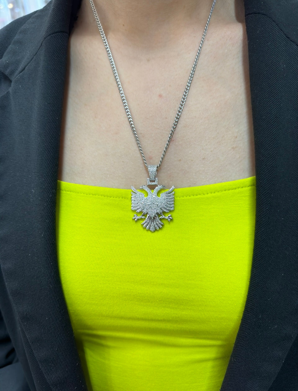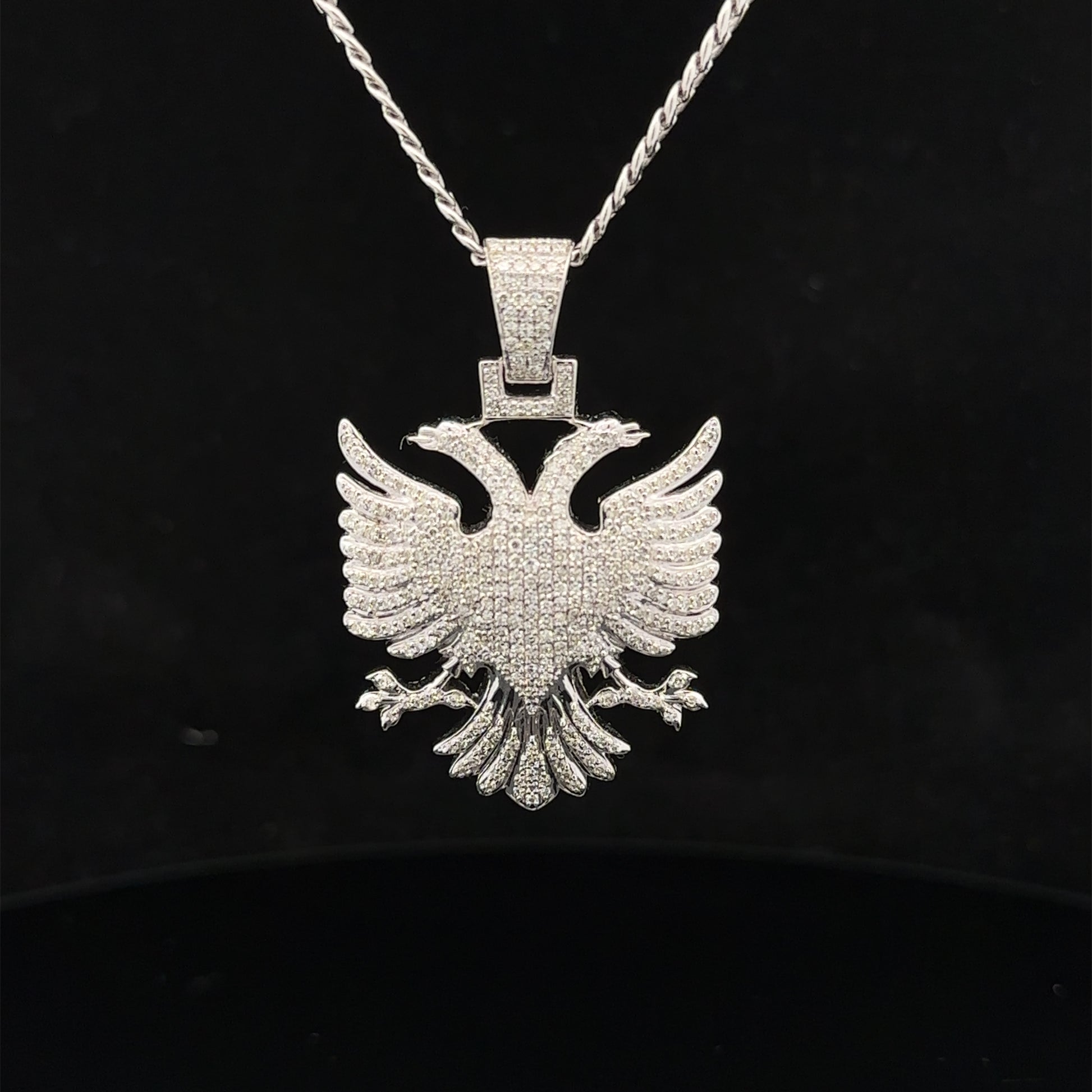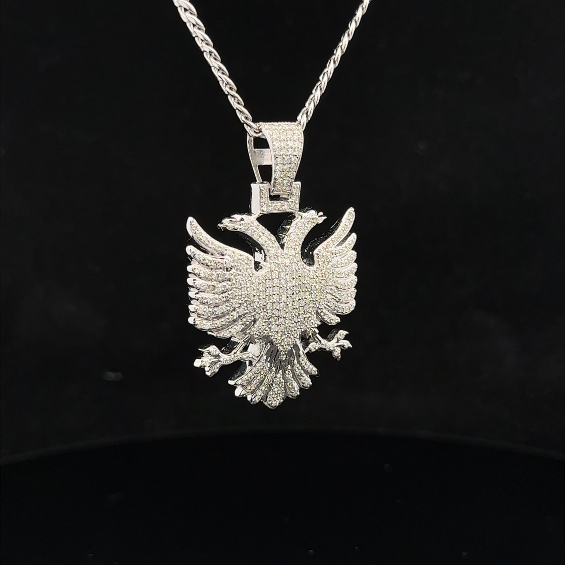 14k white gold and diamond Eagle pendant and 10k gold cuban link chain