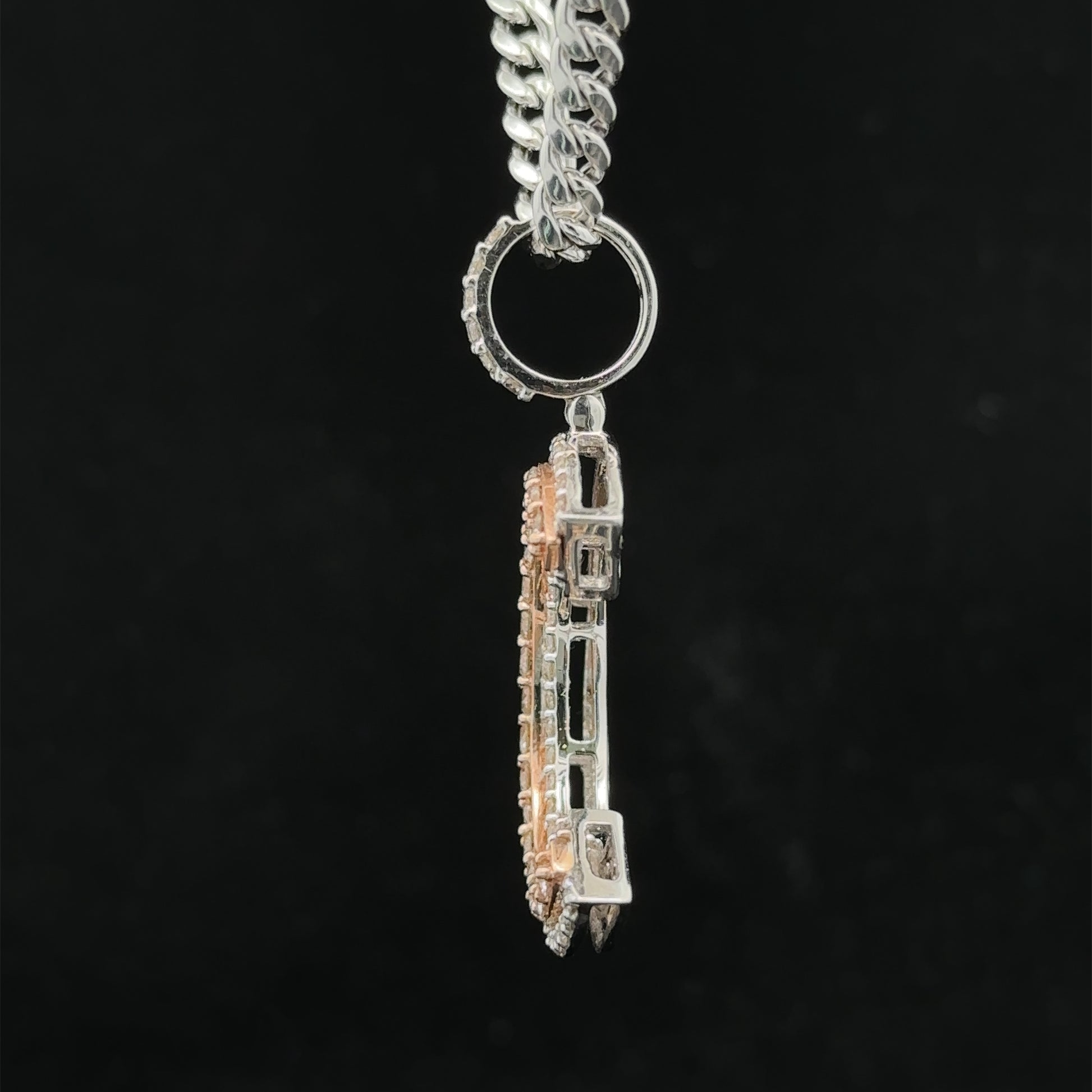 - 14k white gold Cuban link chain.