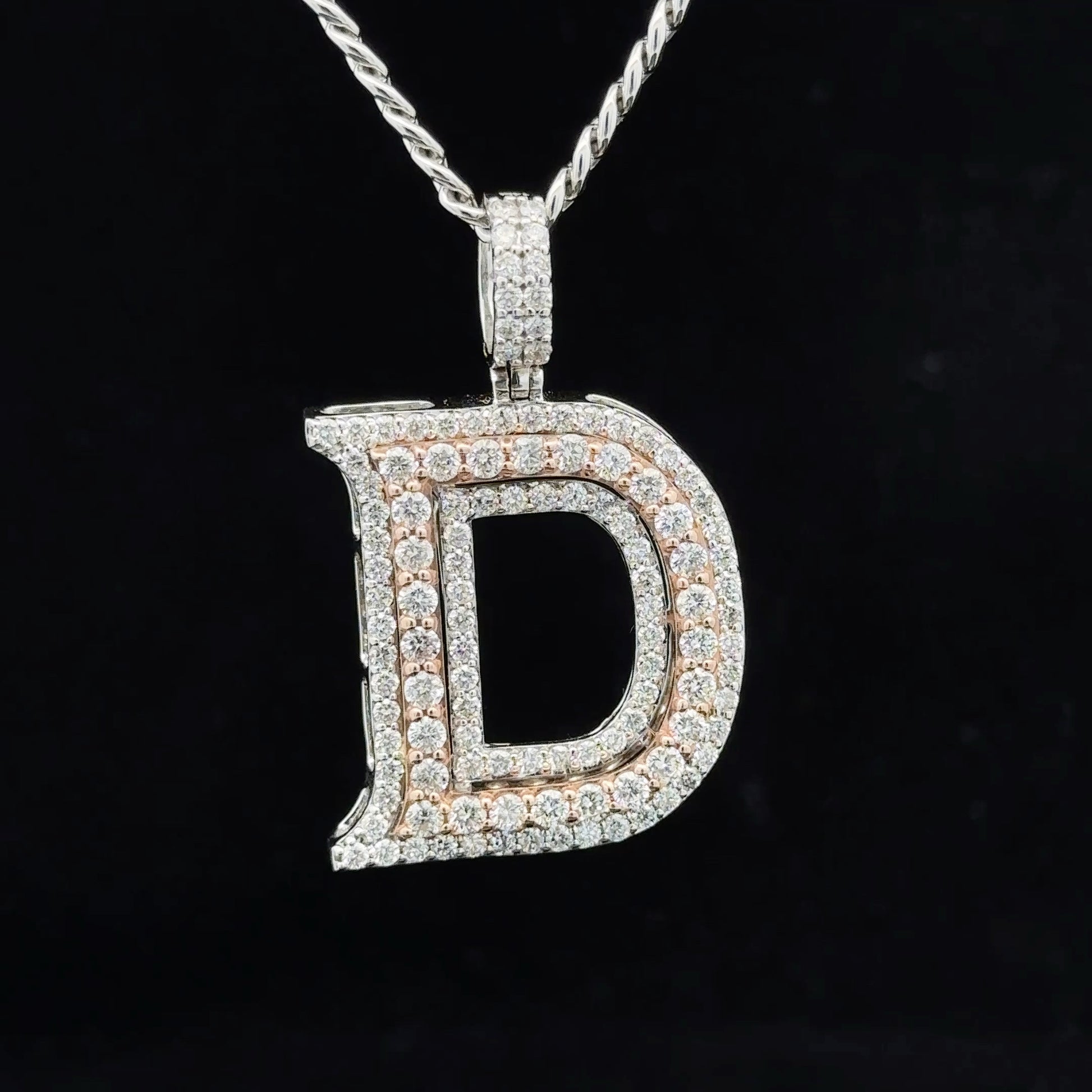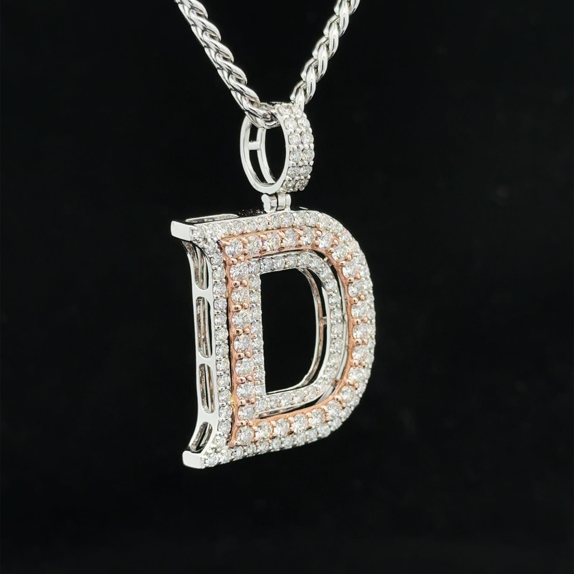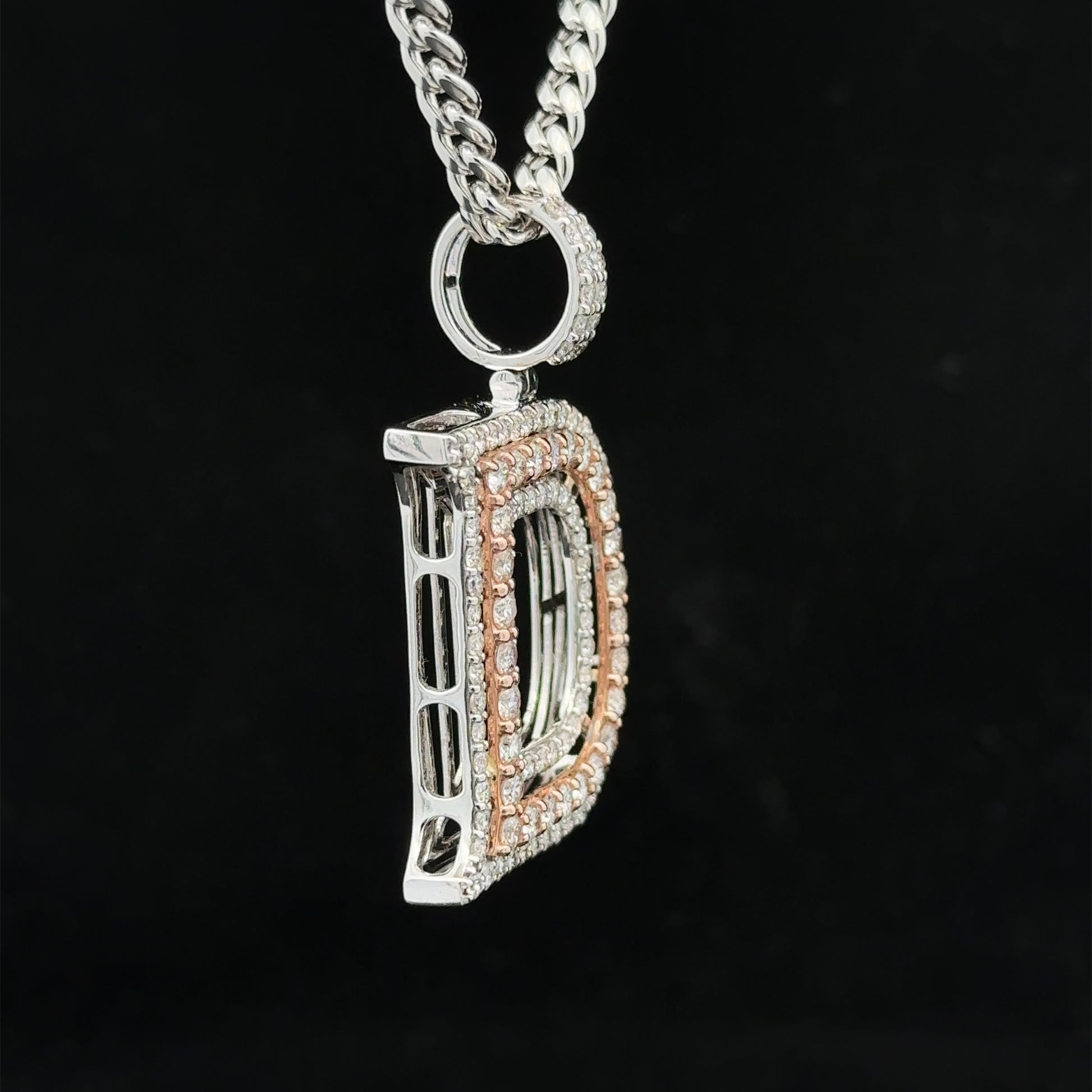 - Charm is 14k two-tone: rose and white gold and natural round diamonds.