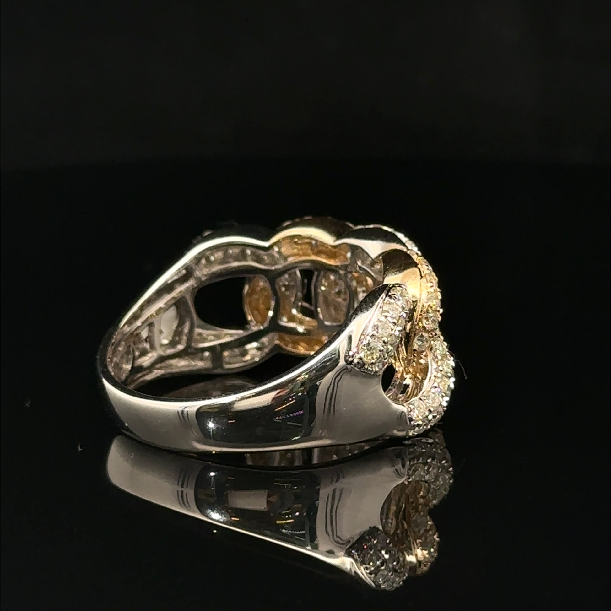 - 14k two-tone: yellow and white gold and natural round diamonds.