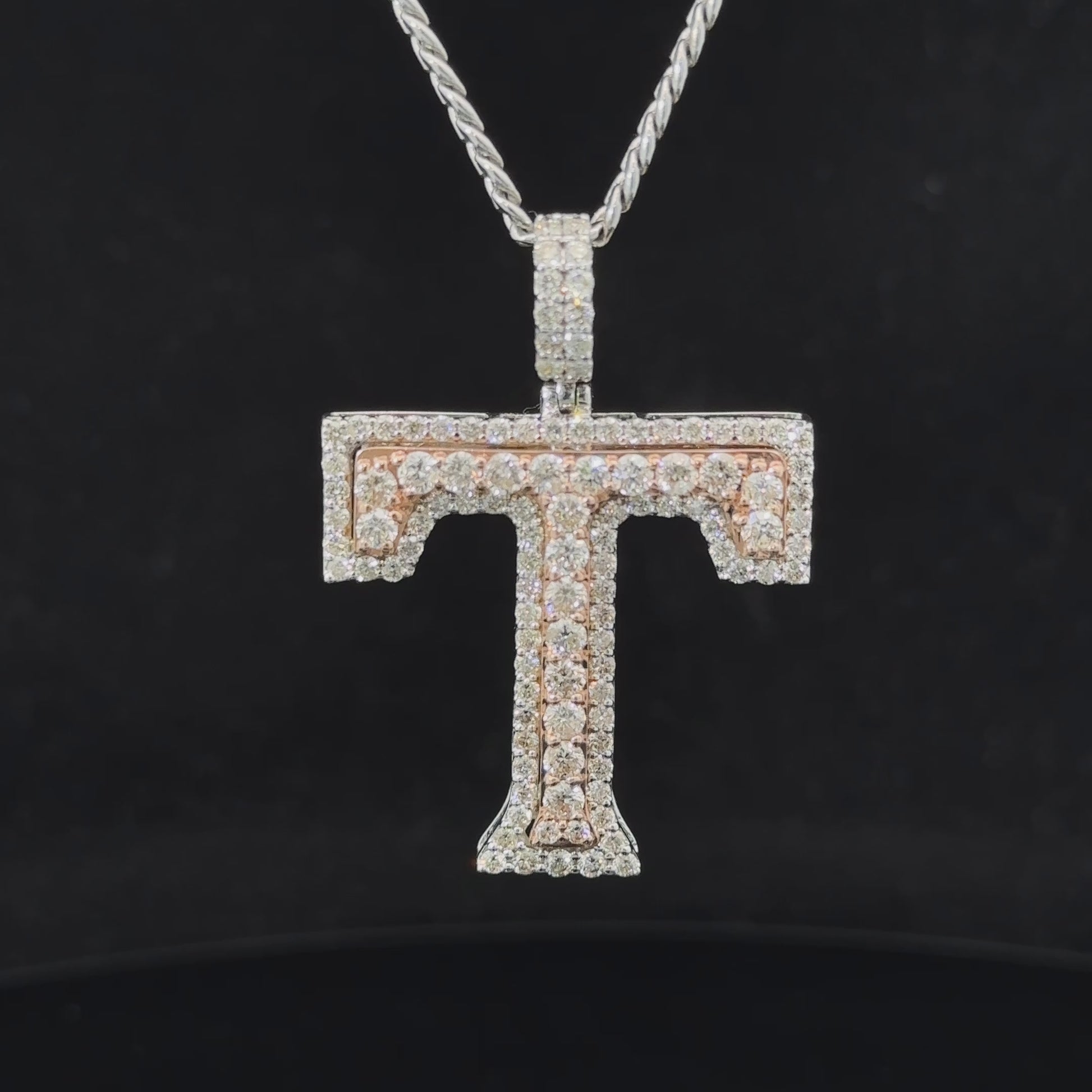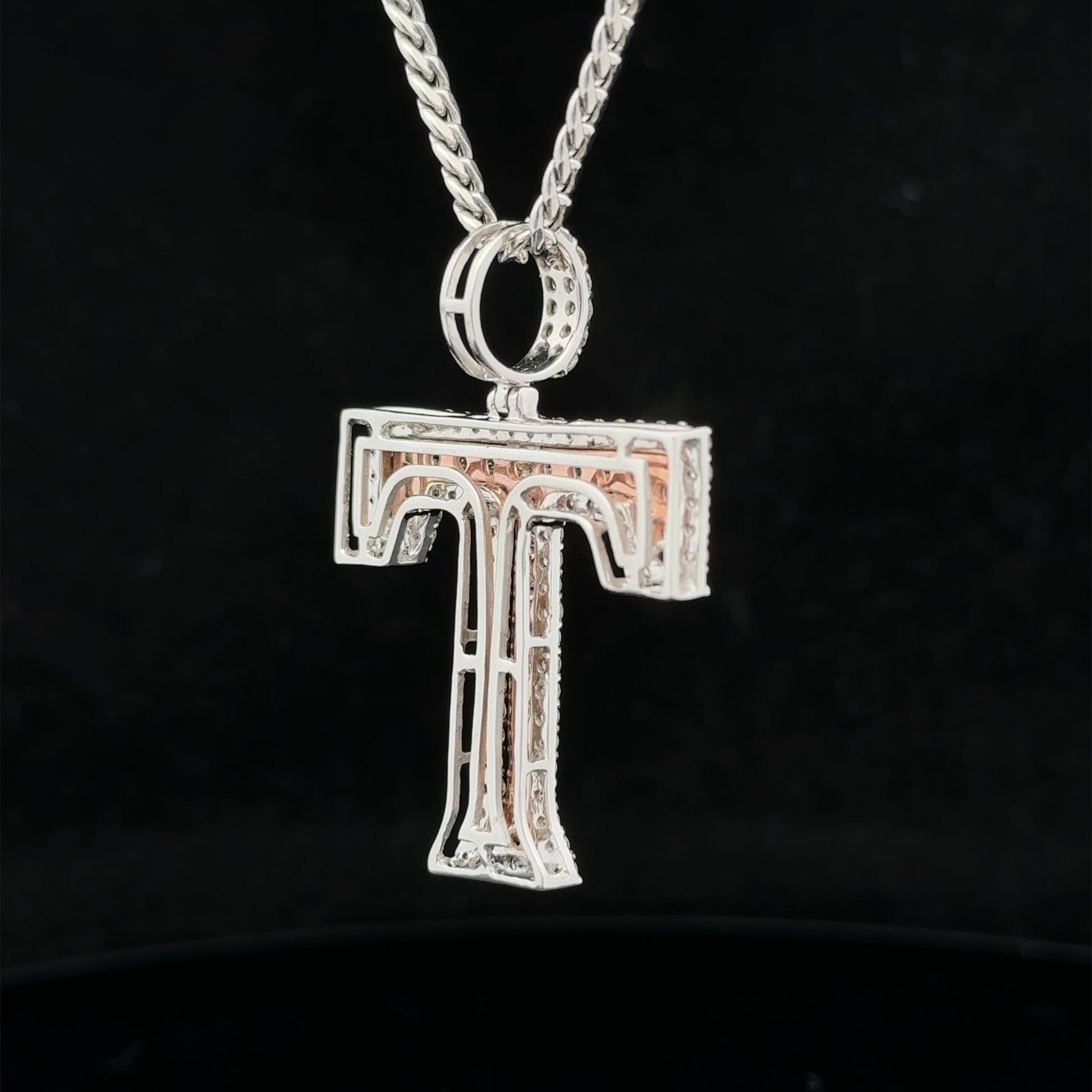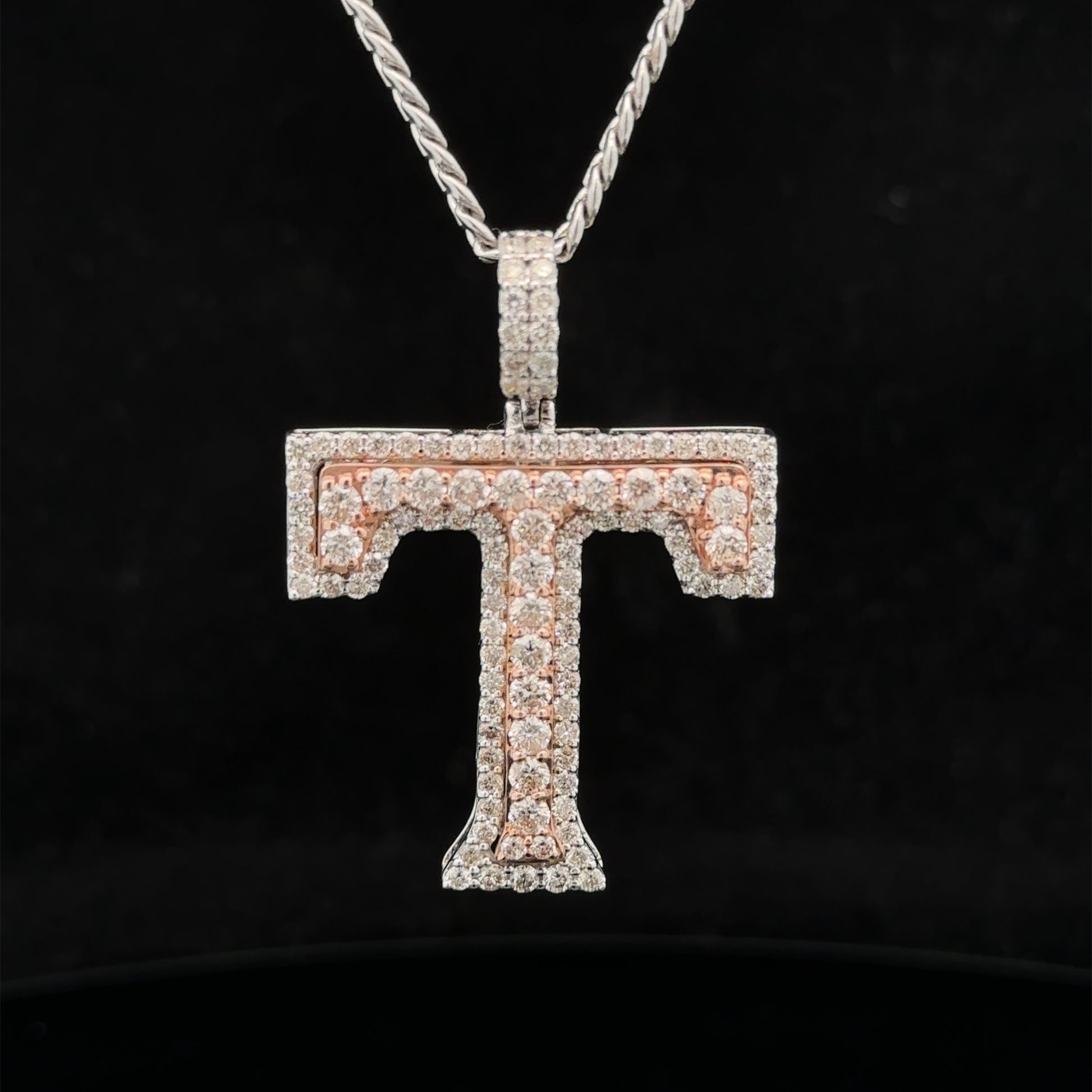 14k two-tone rose and white gold & diamond T Initial Pendant