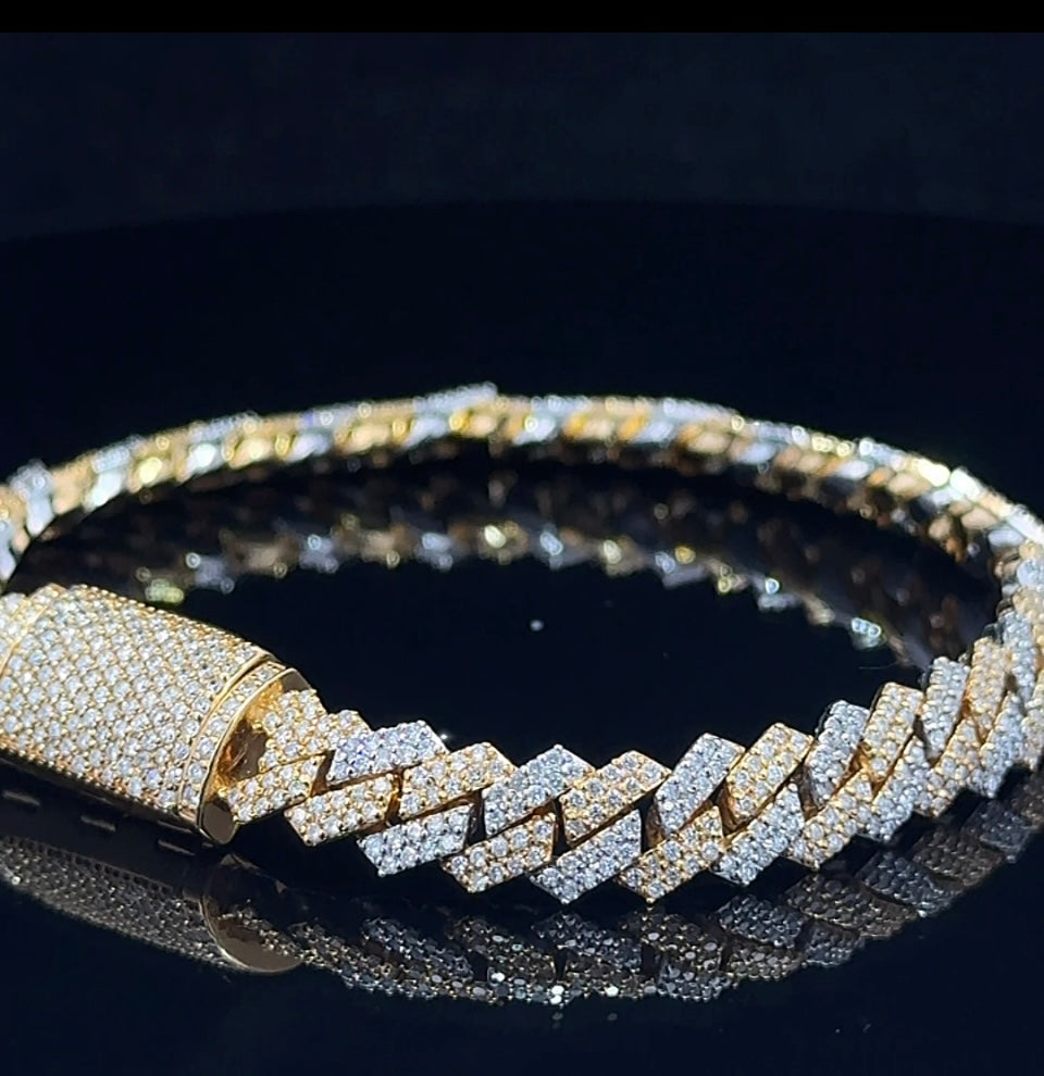 - 14k two-tone: white and yellow gold and natural round diamonds.