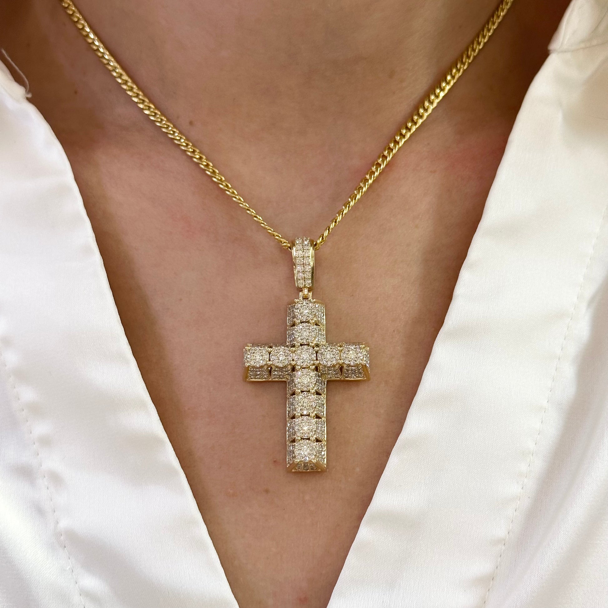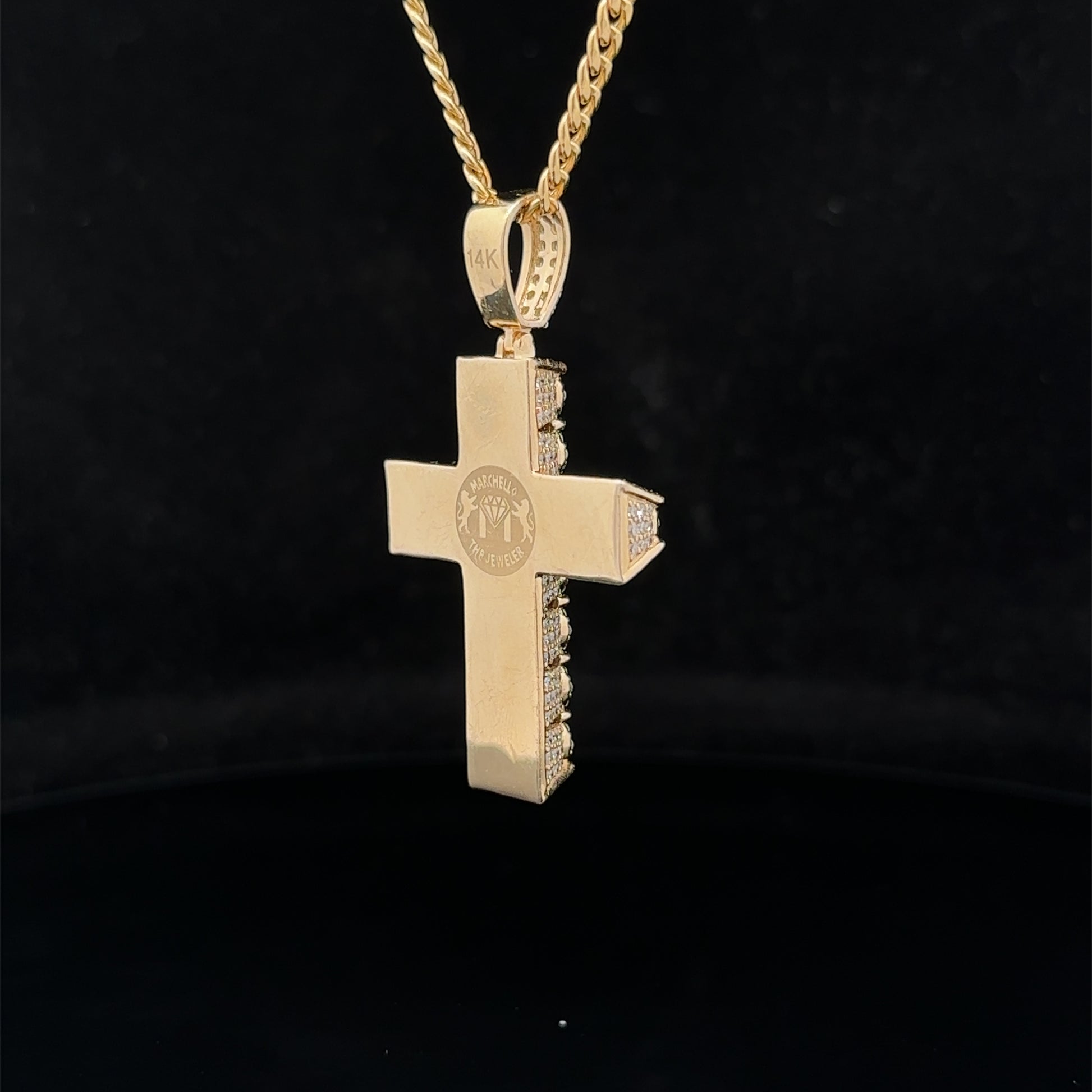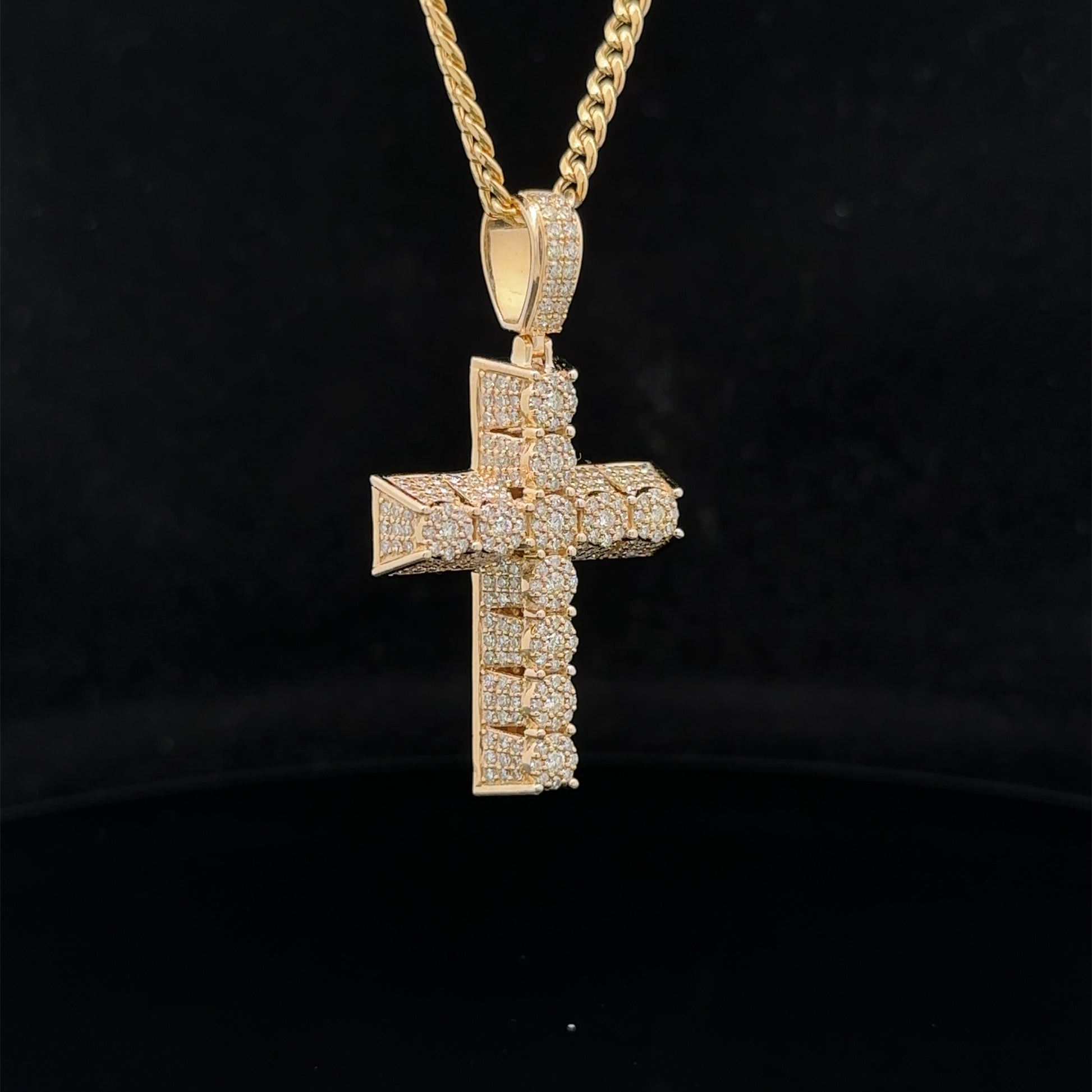 14k yellow gold and diamond Cross Pendant and 10k yellow gold Cuban chain