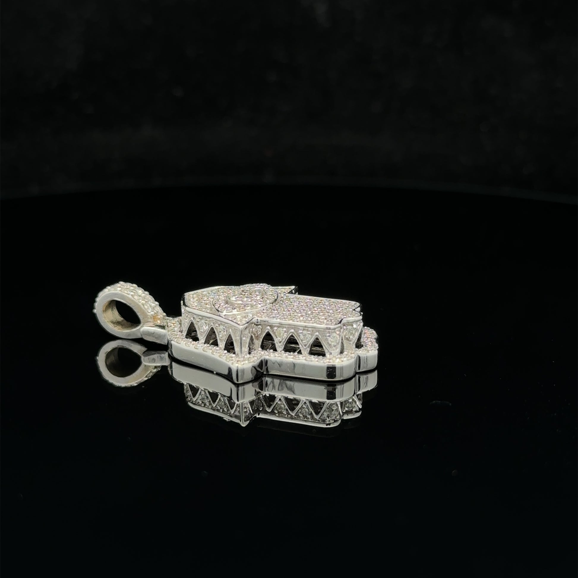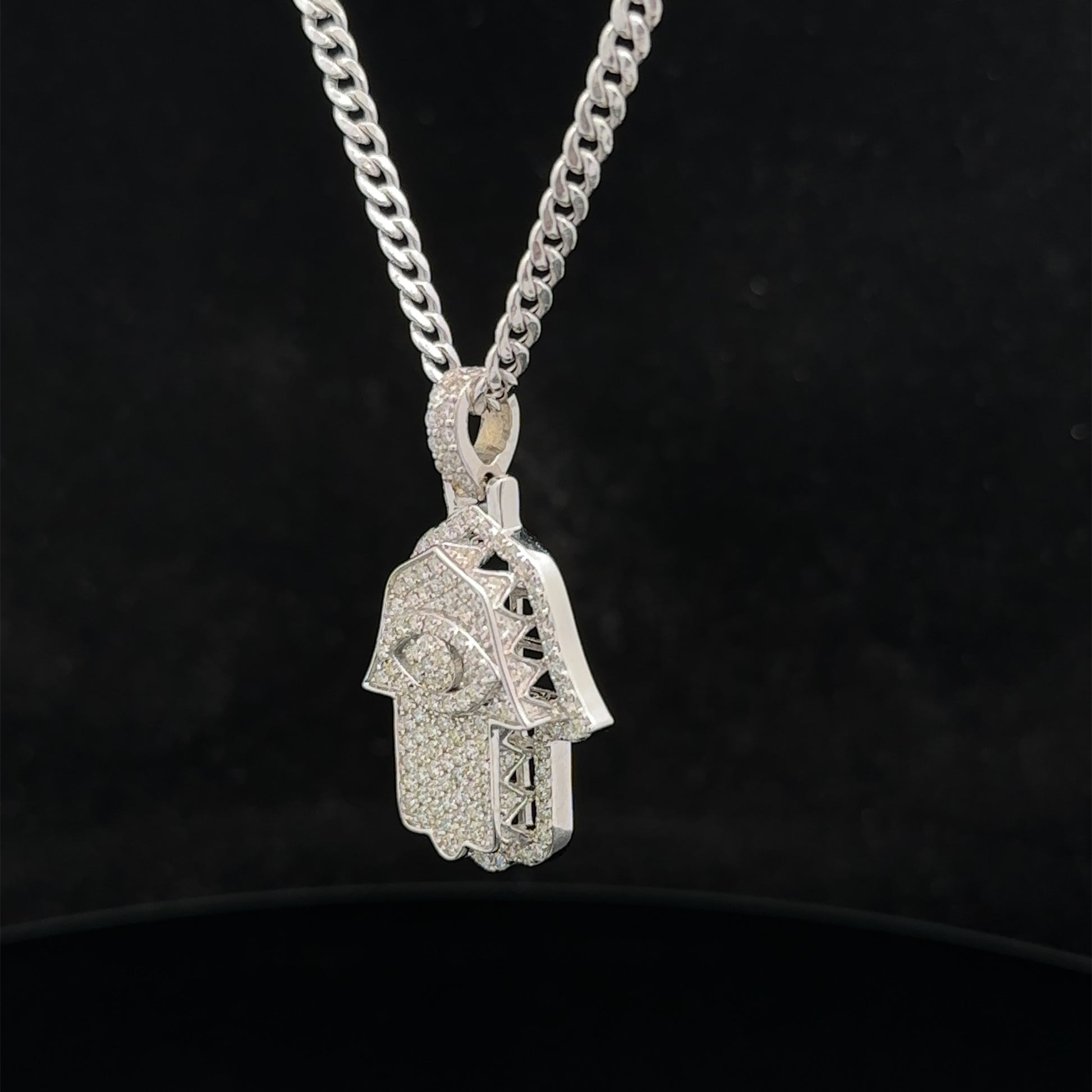 14k white gold and diamond Hamsa pendant and 14k white gold cuban link chain