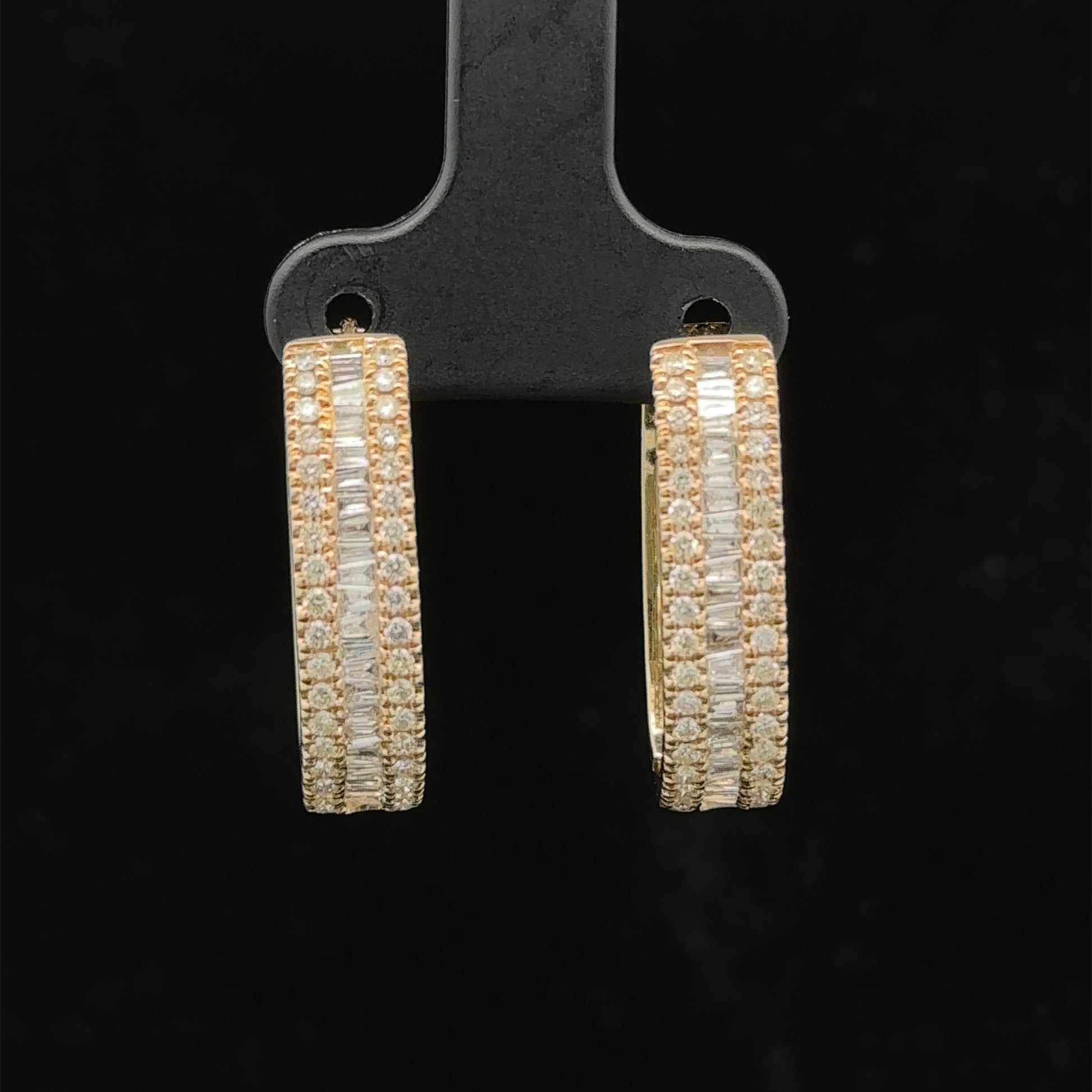 - 14k yellow gold and earth-mined round, baguette diamonds.