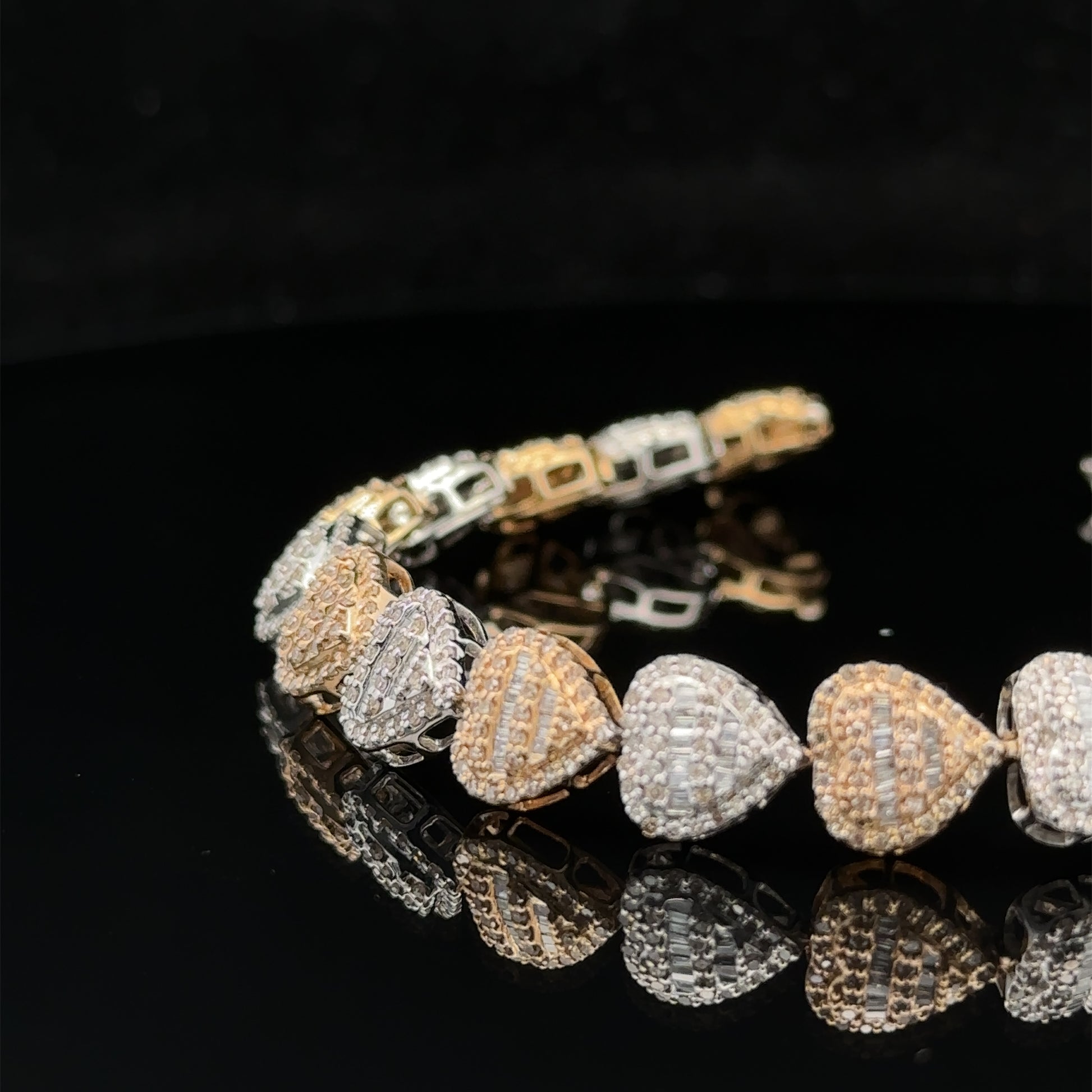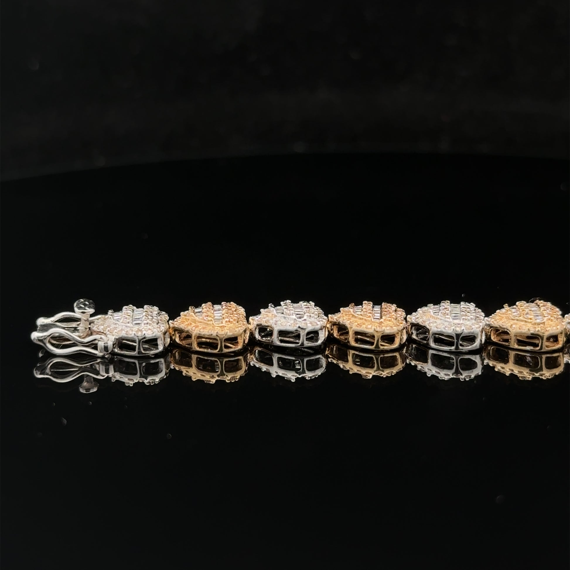 - 14k two-tone: yellow and white gold and natural round diamonds.