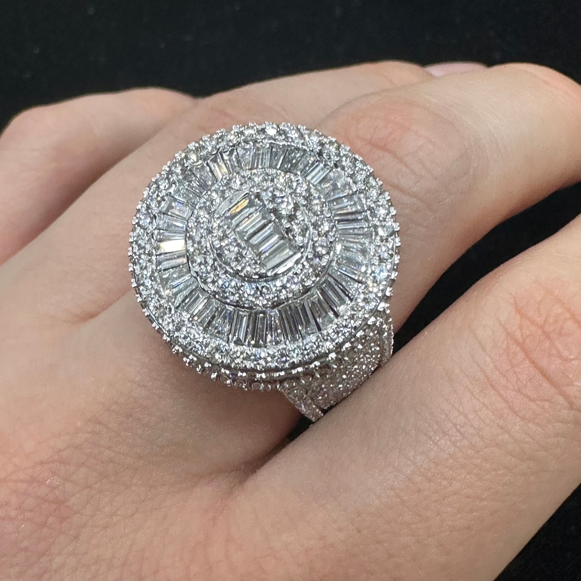 - 14k white gold and natural round and baguette diamond ring.