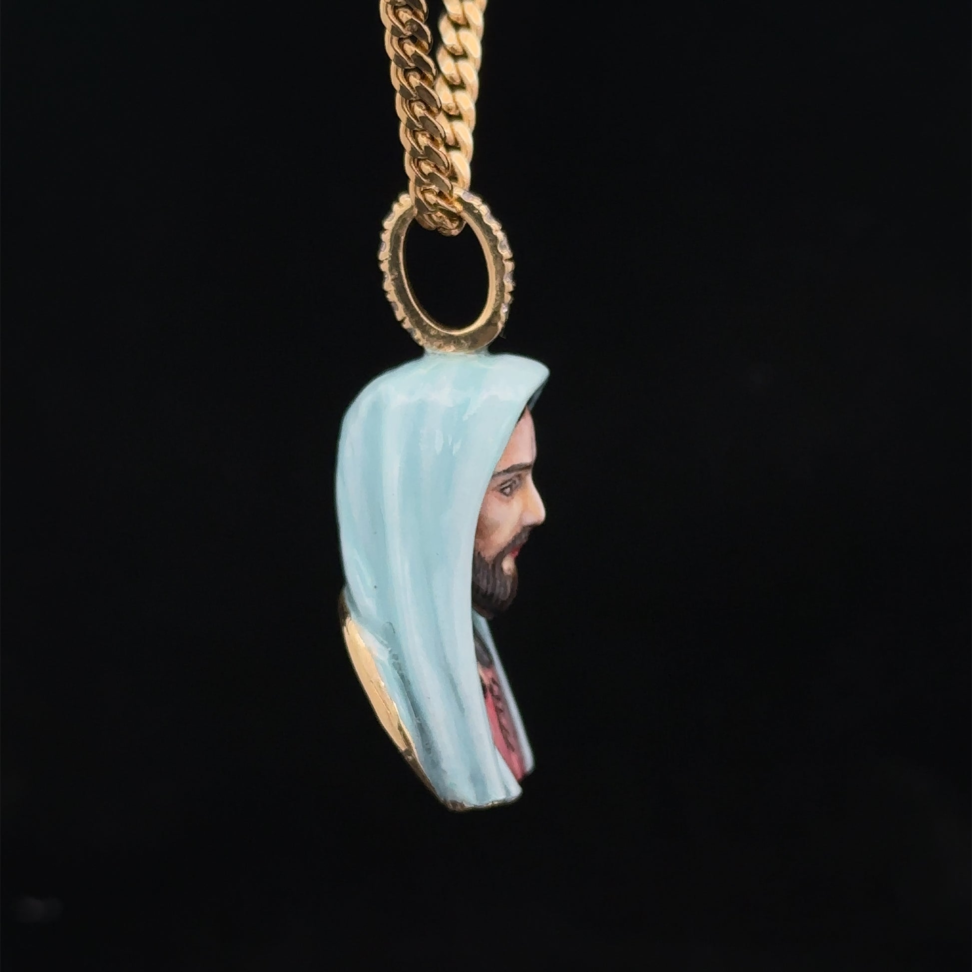 14k yellow gold and diamond Enamel Jesus Head Pendant