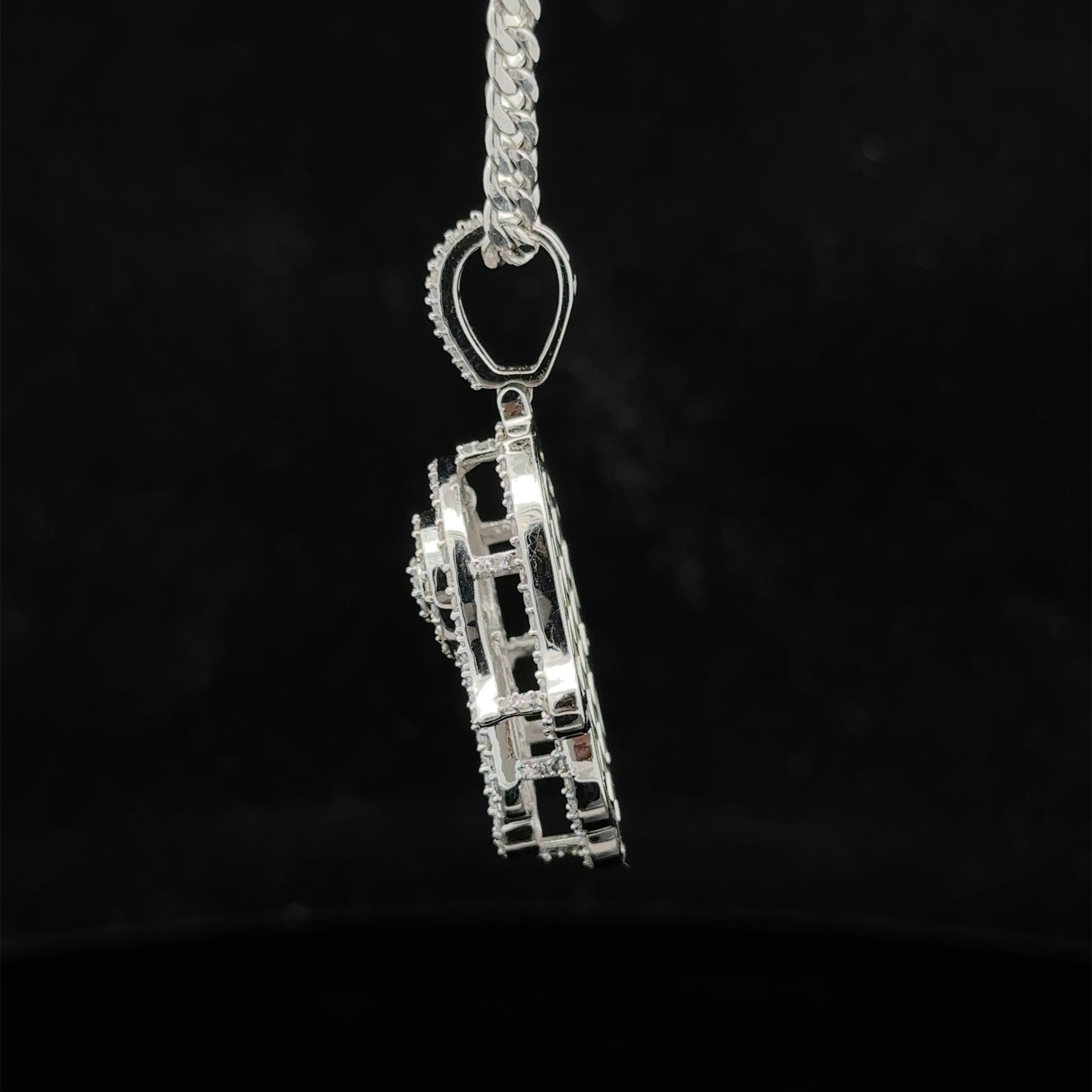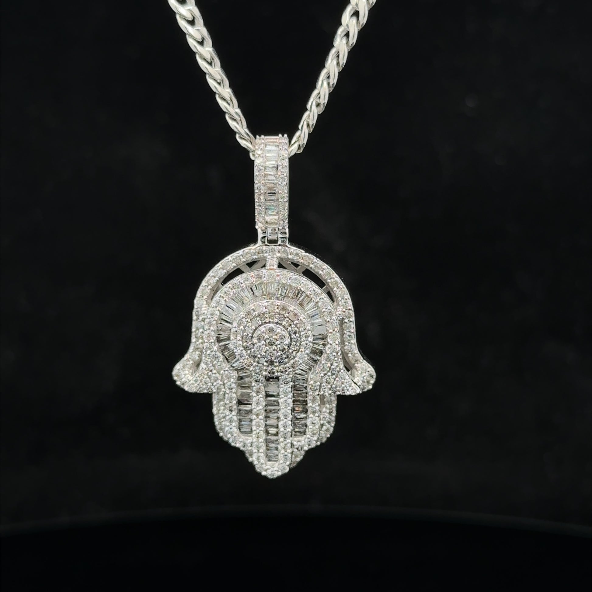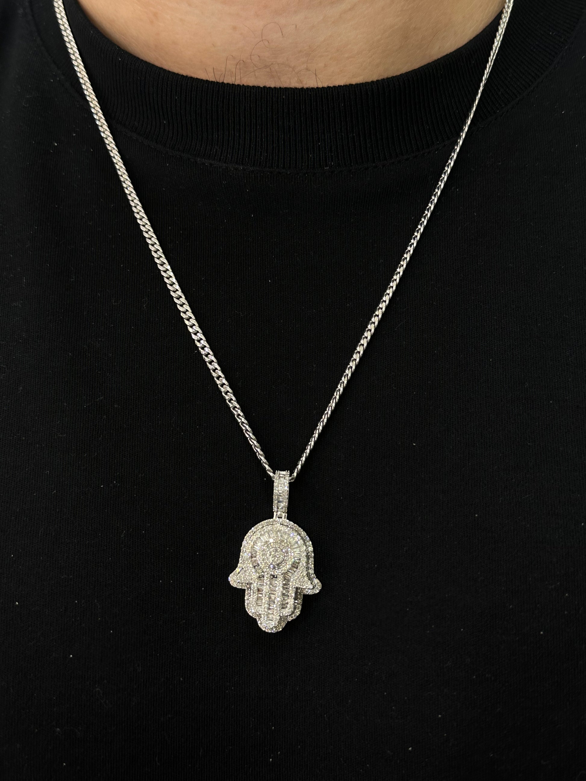 14k white gold and diamond Hamsa pendant and 14k white gold cuban link chain