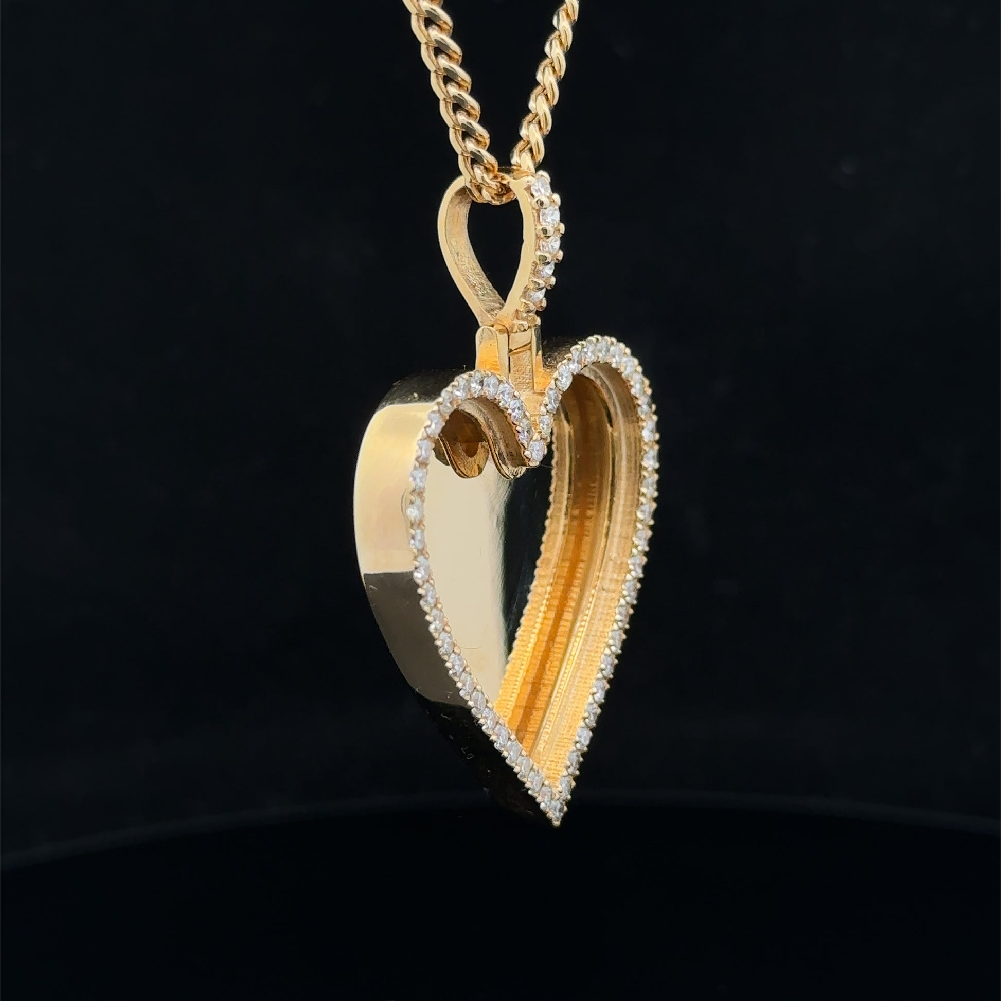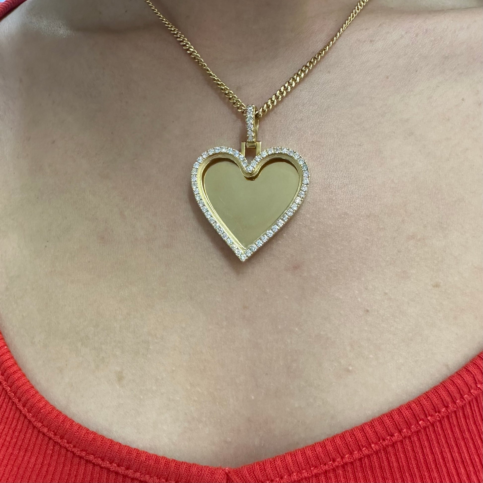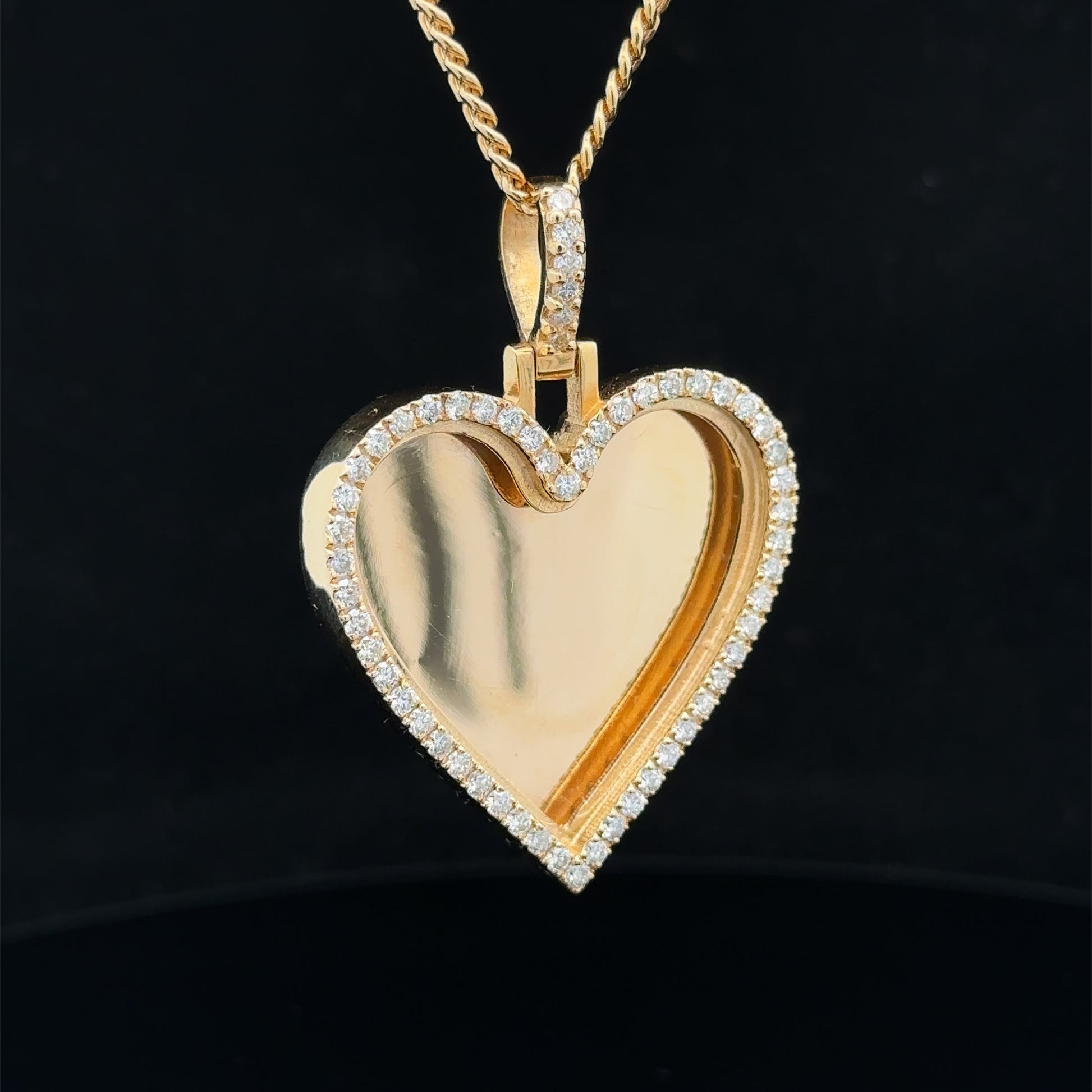 14k yellow gold and diamond Heart Shaped Picture pendant
