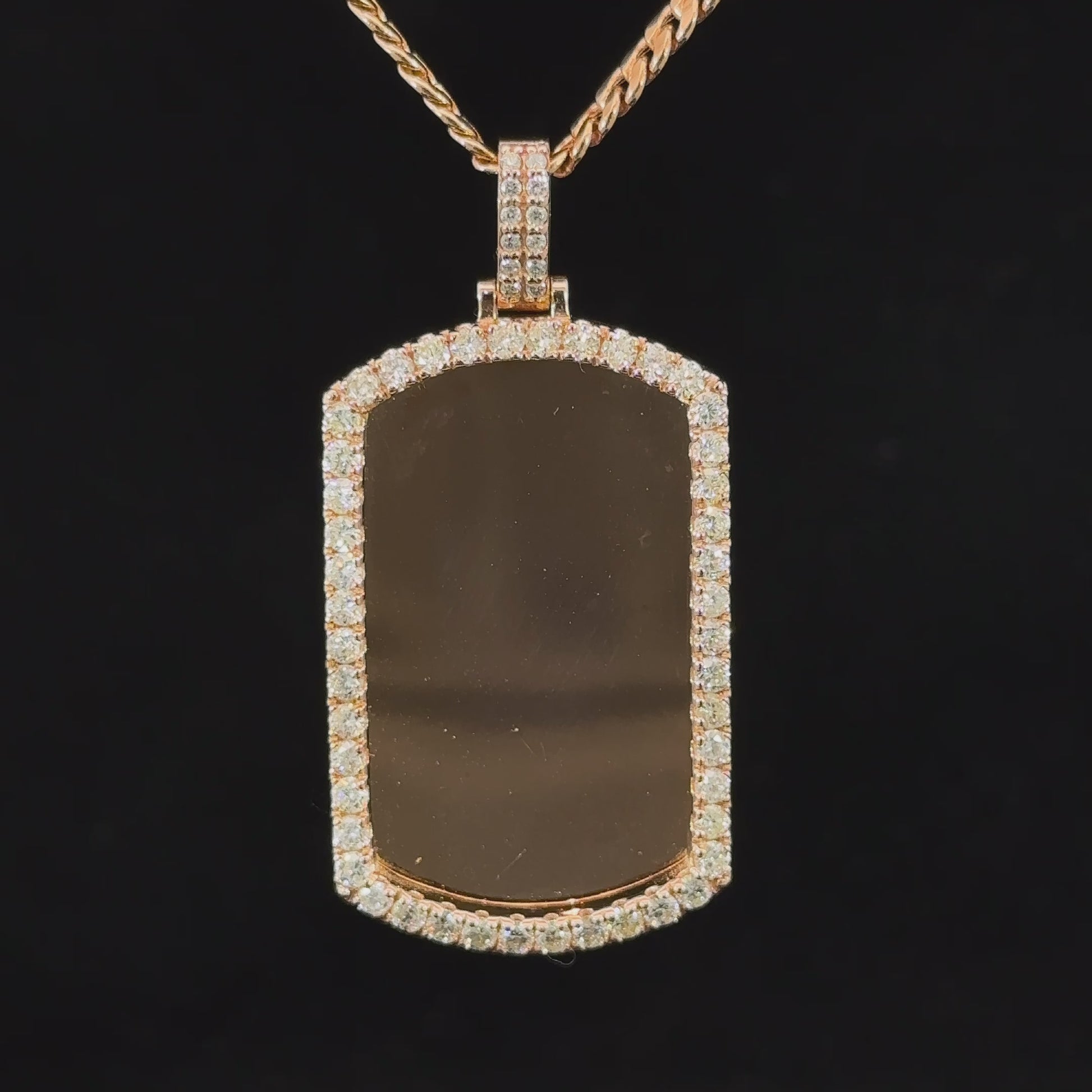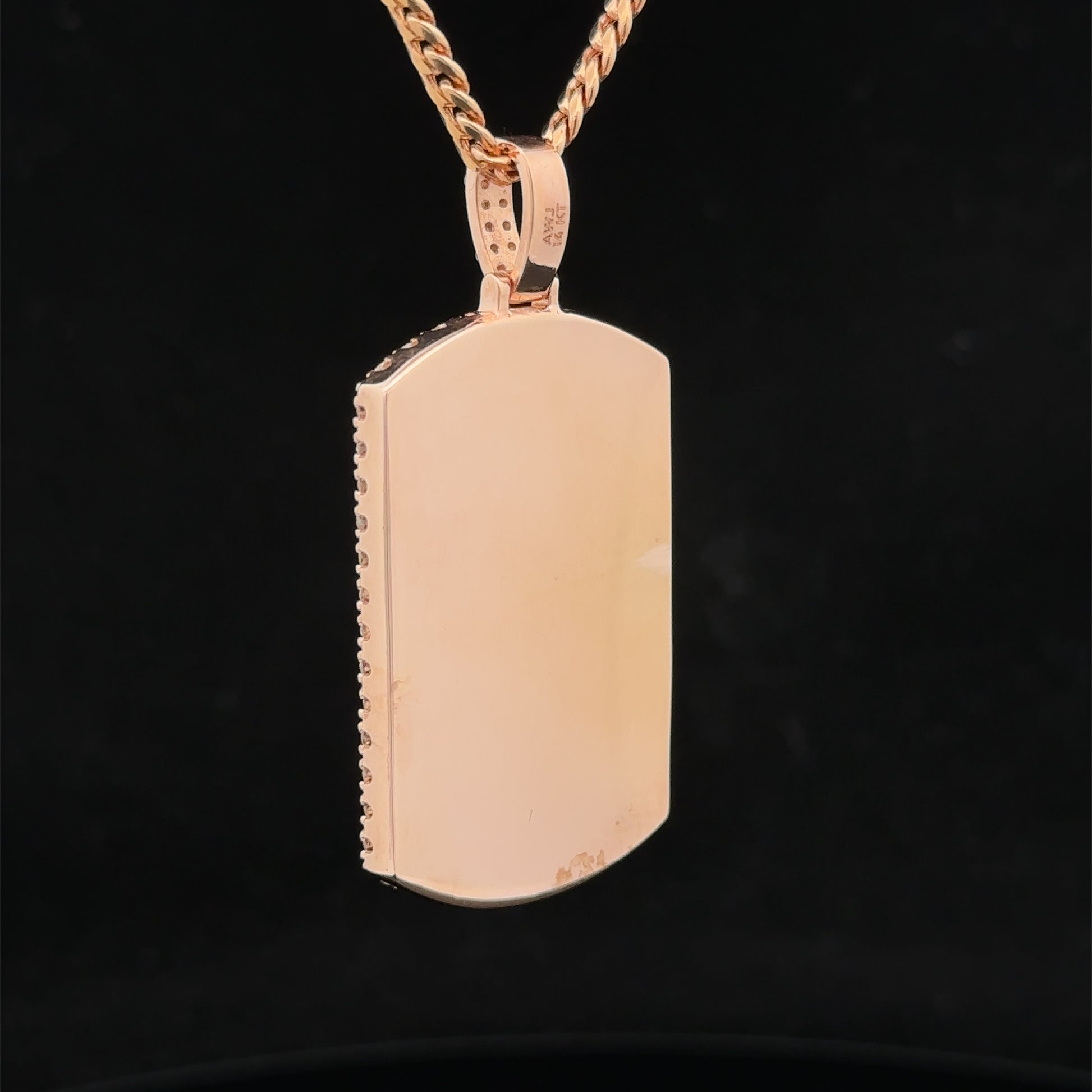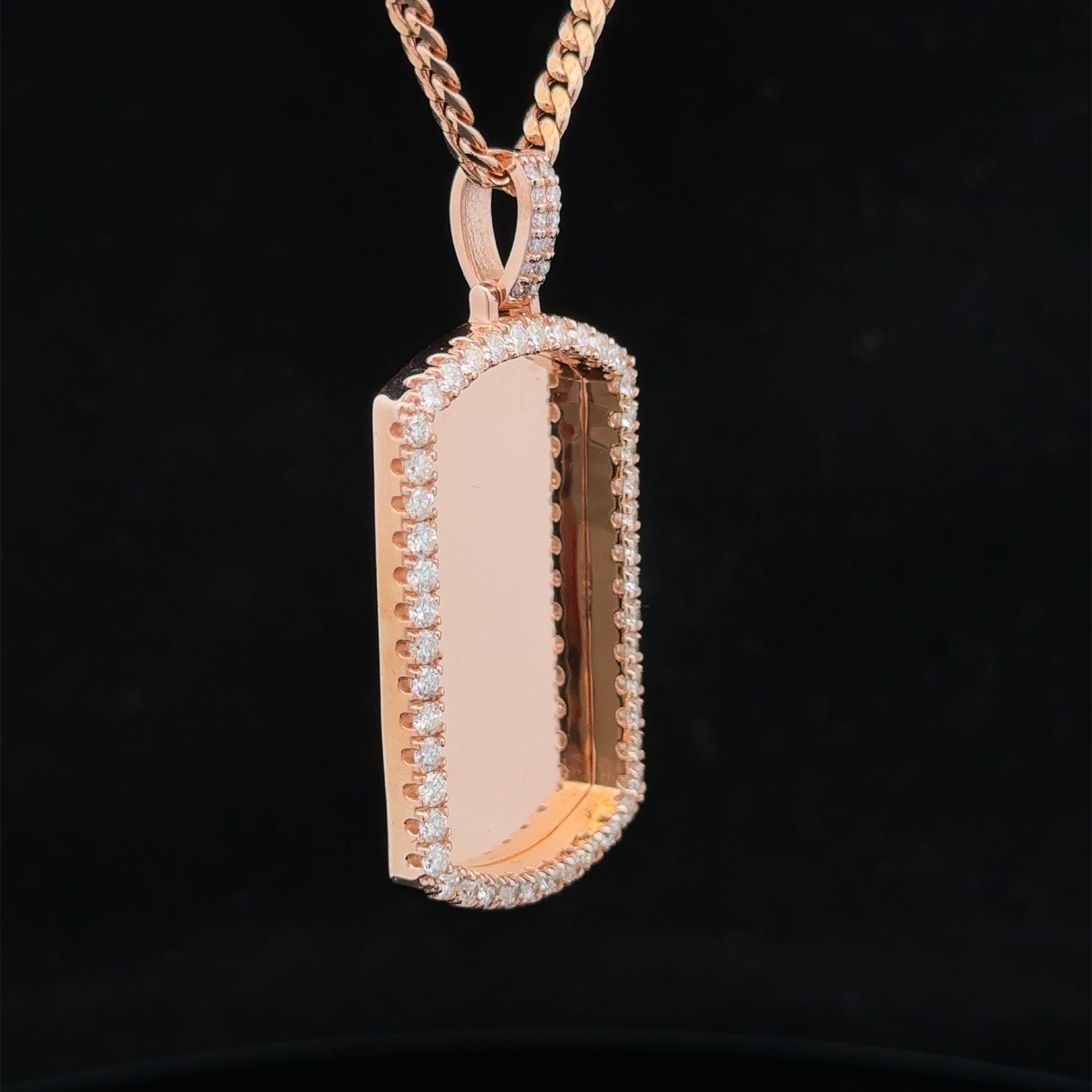 - Pendant with 14k rose gold cuban chain.