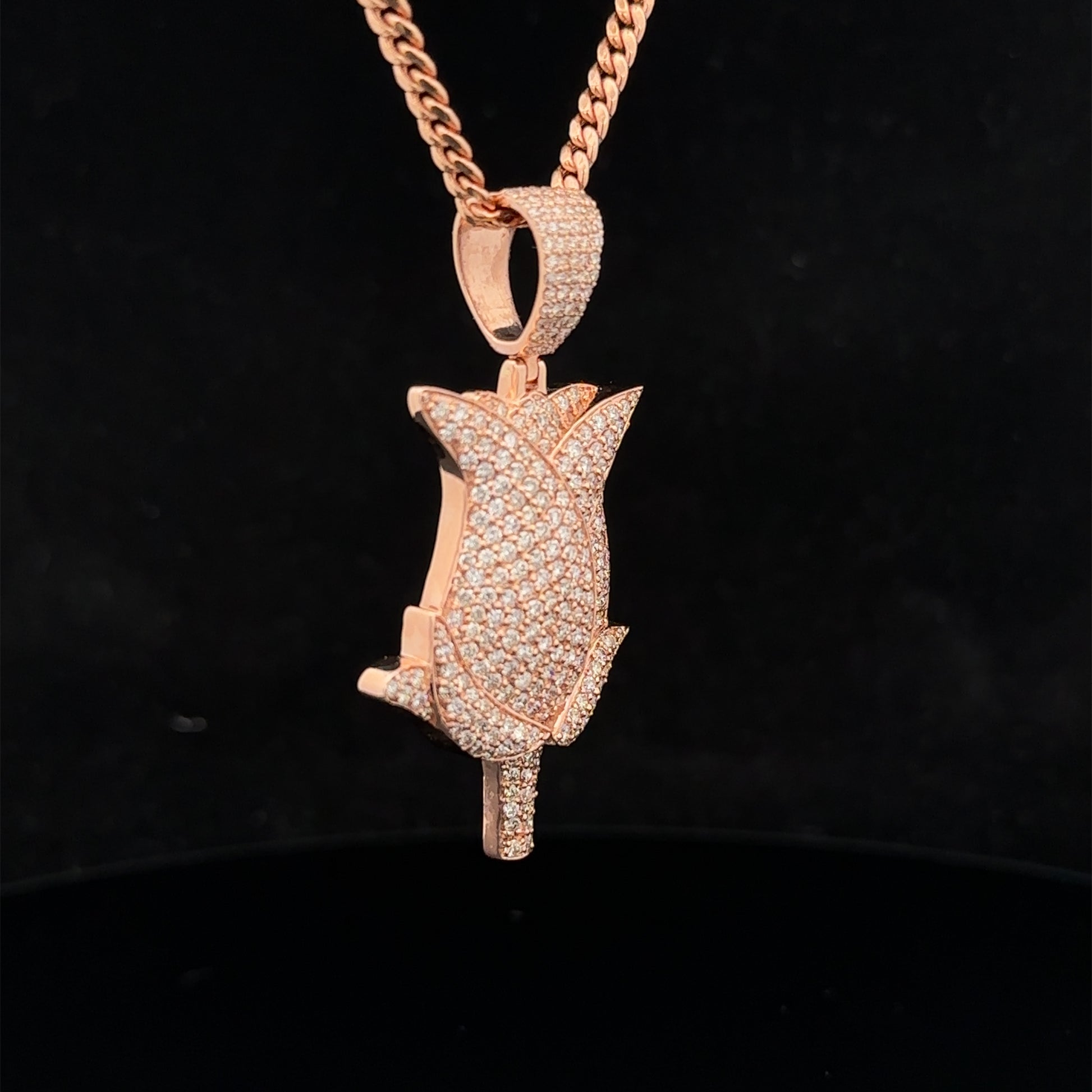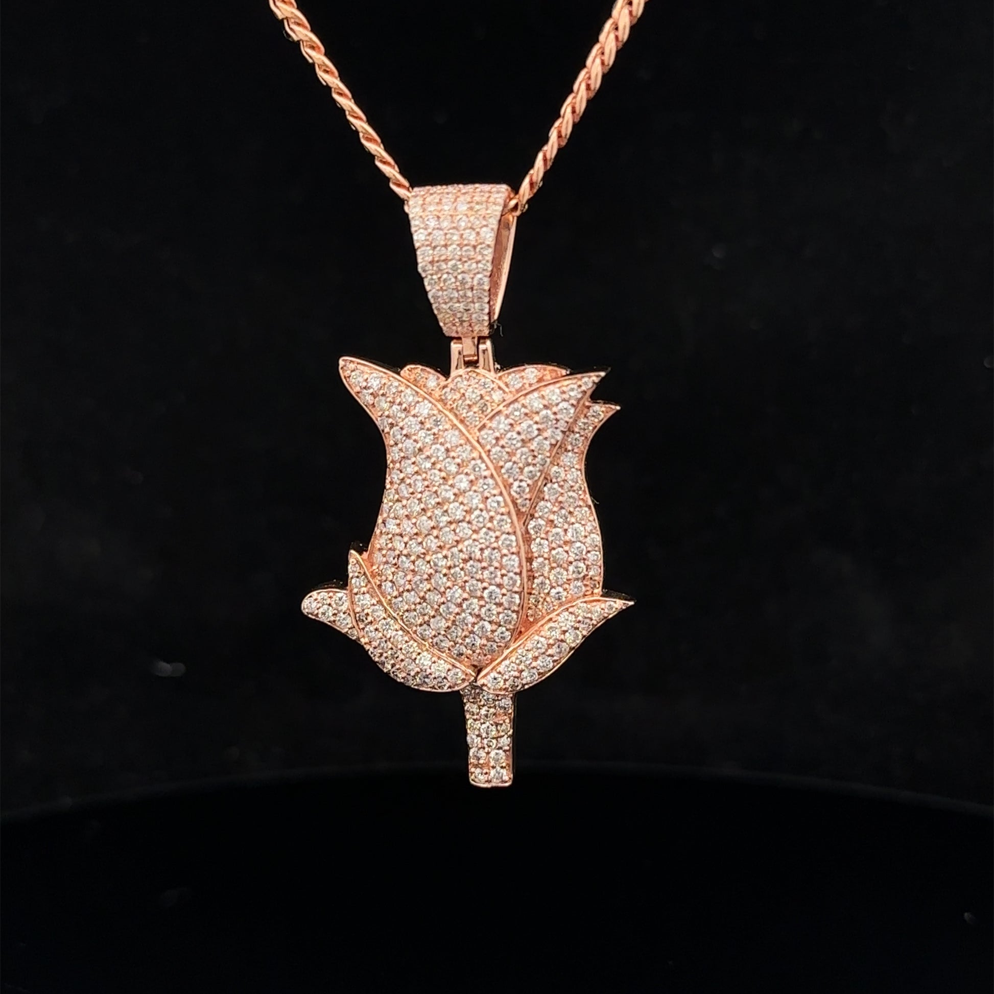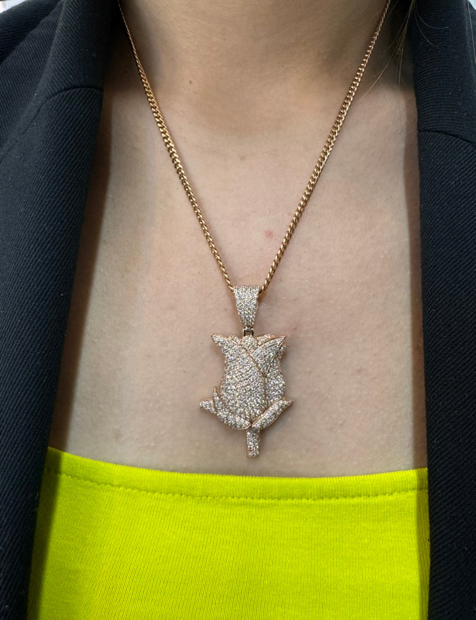 14k rose gold and diamond Rose pendant and 14k gold cuban link chain
