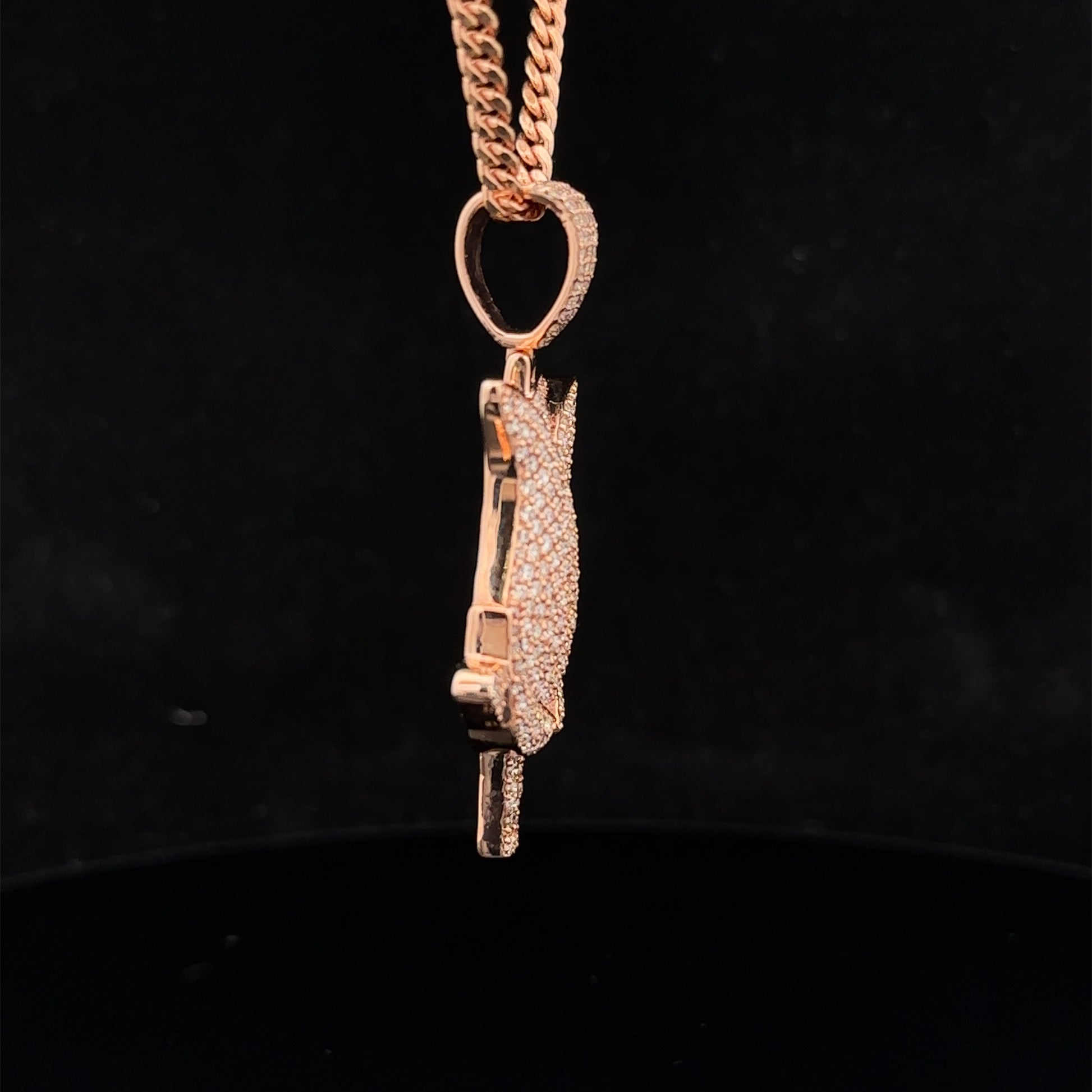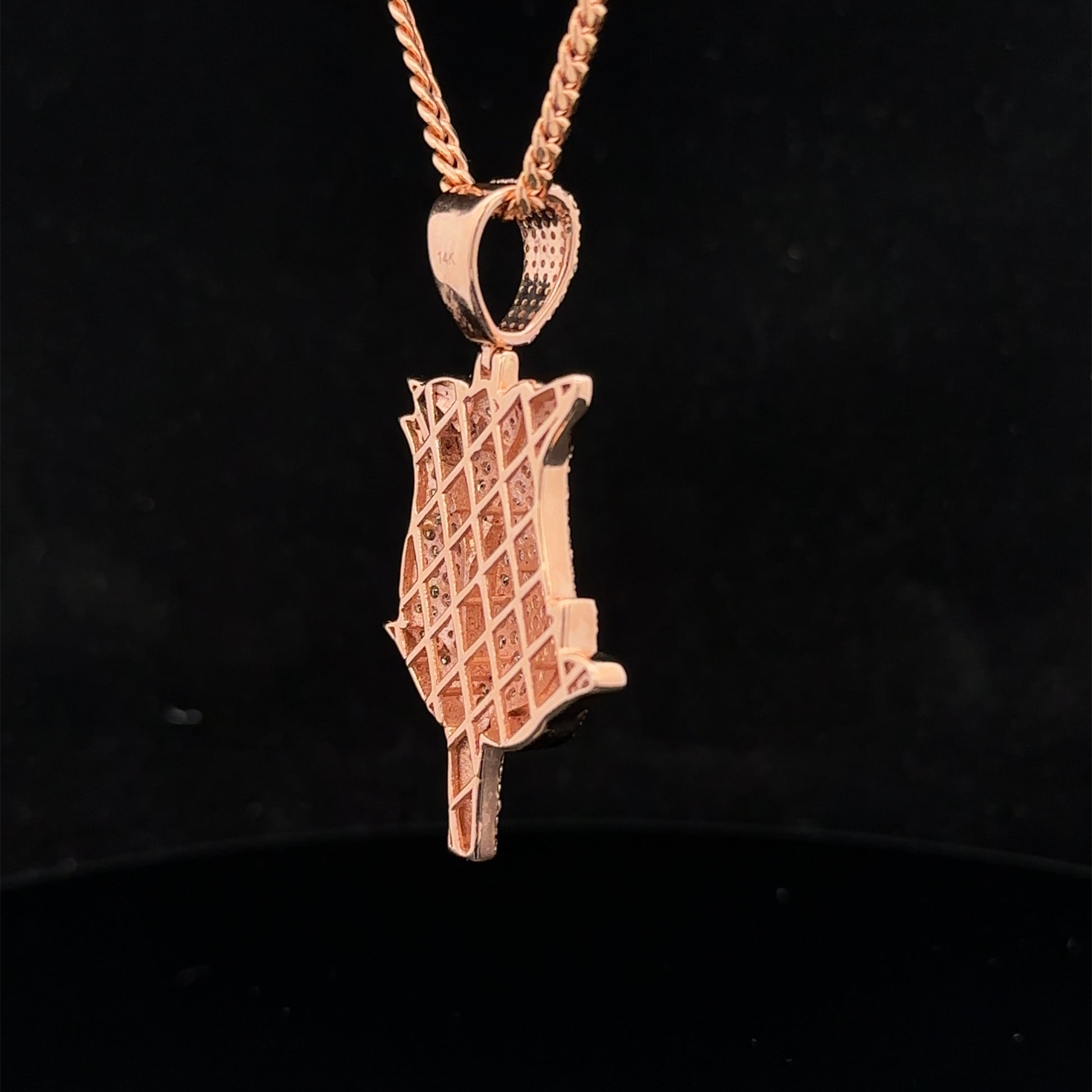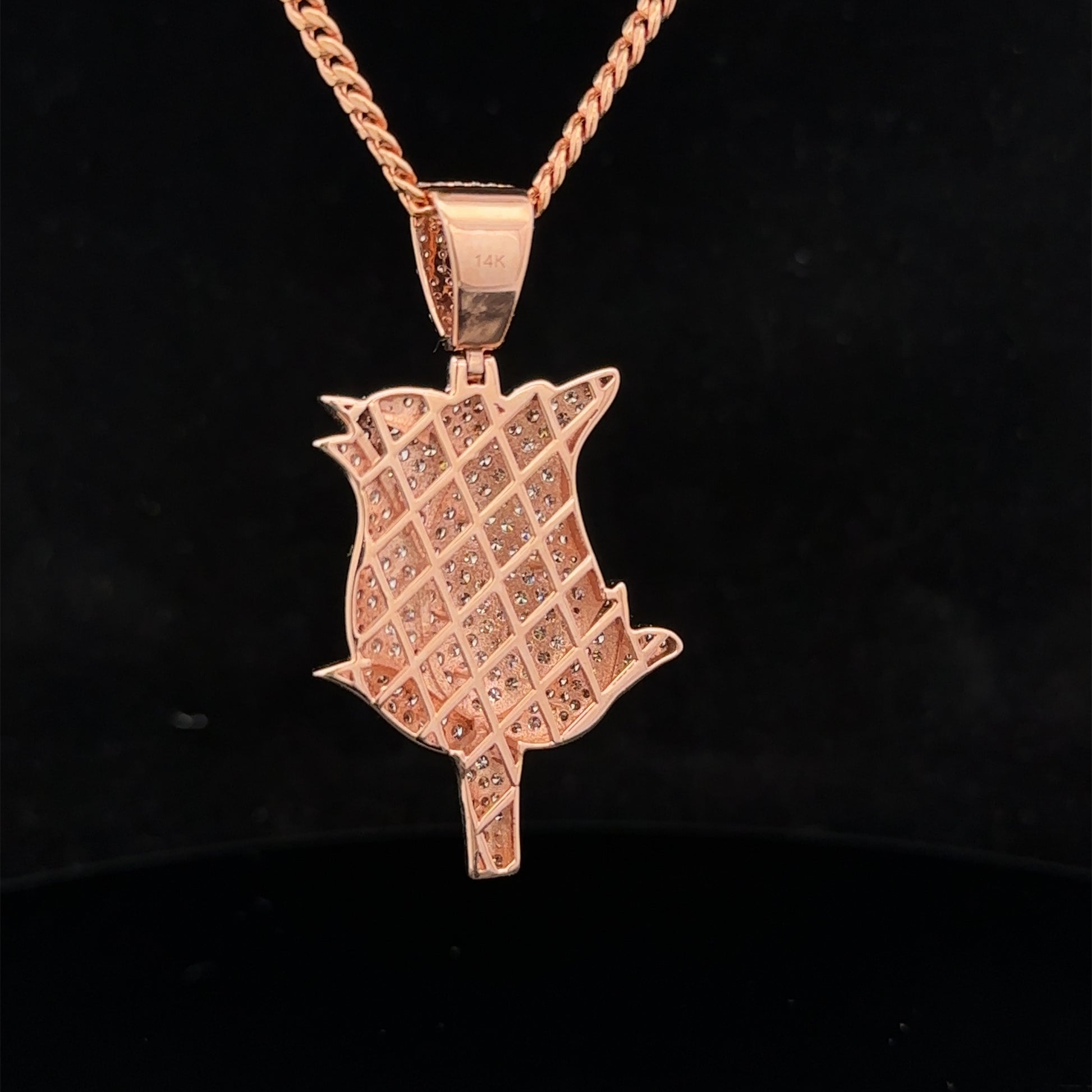 14k rose gold and diamond Rose pendant and 14k gold cuban link chain