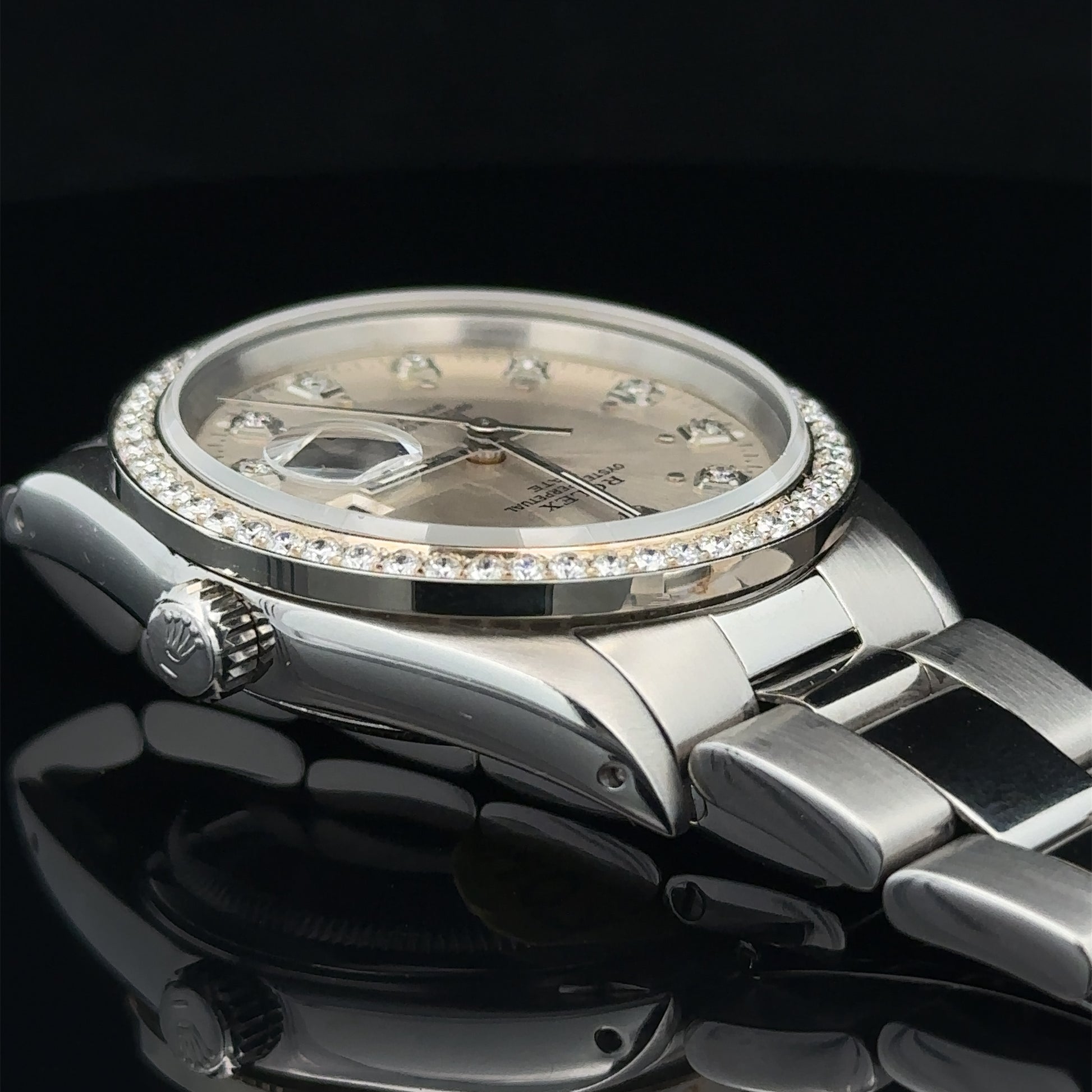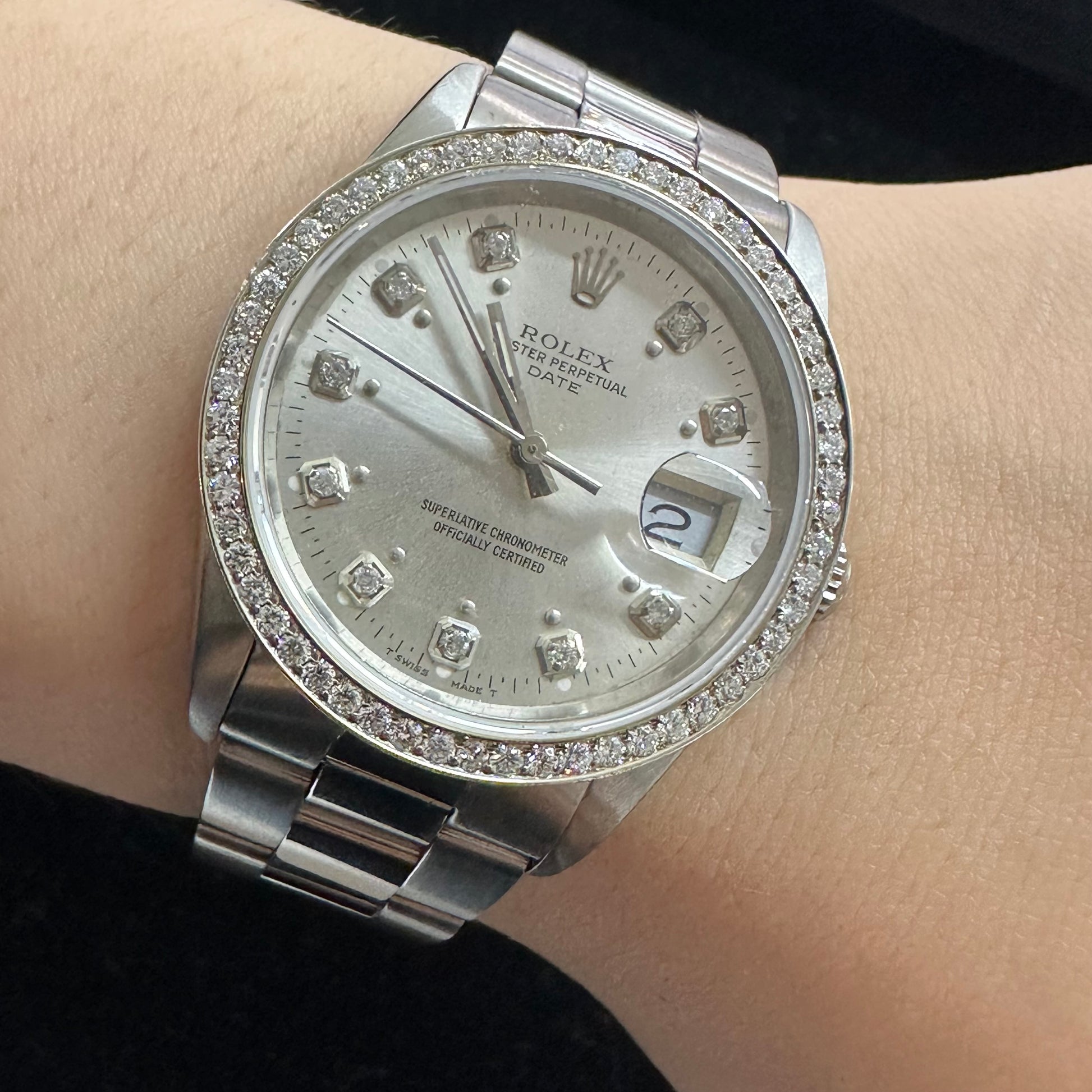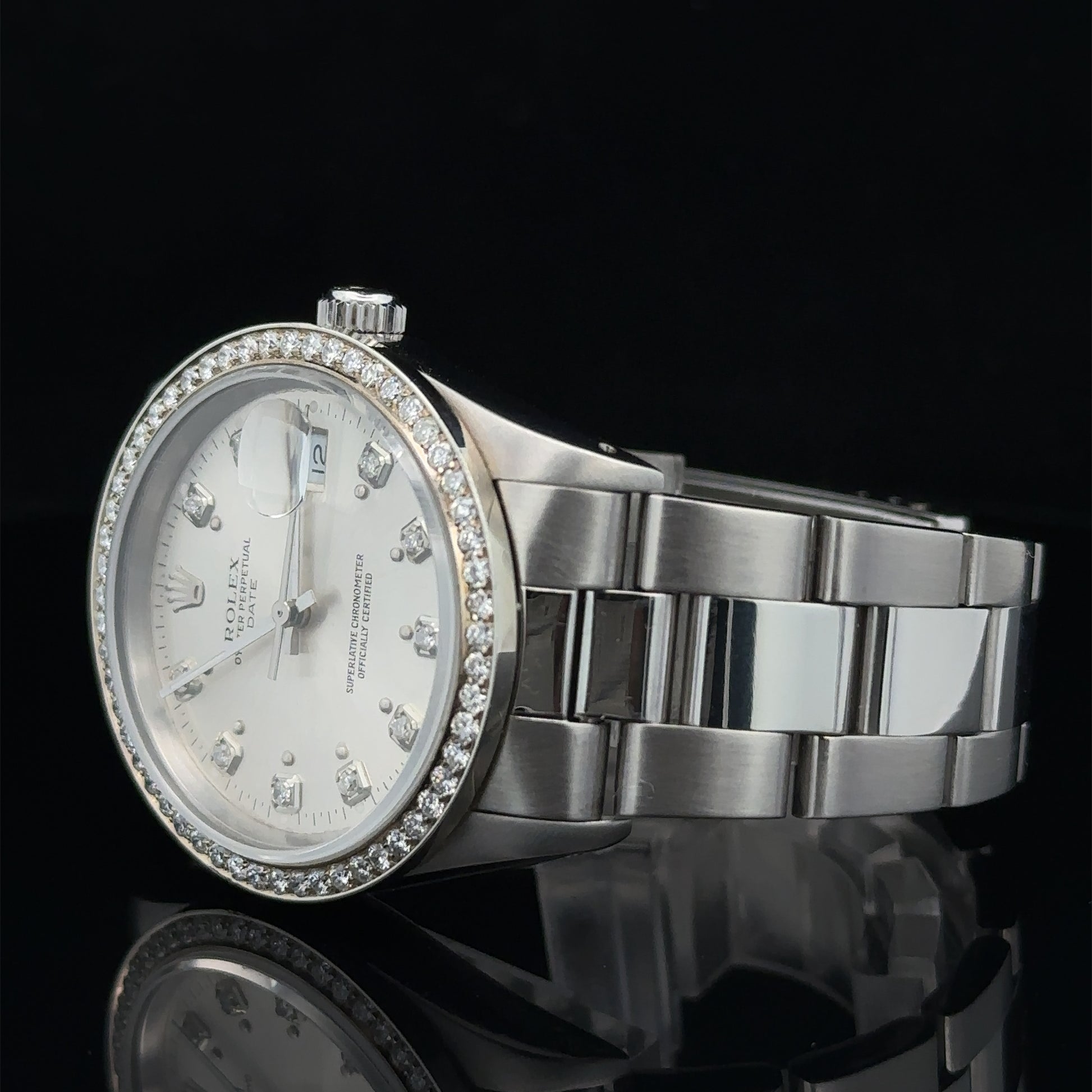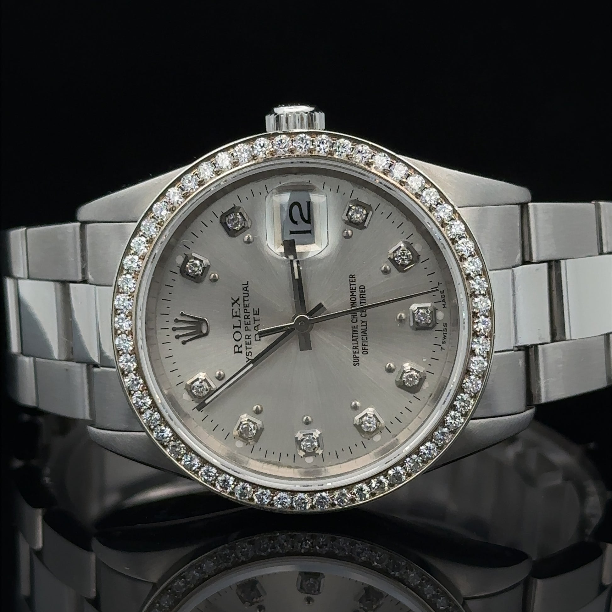 34mm Rolex Diamond Watch with Stainless Steel Oyster Bracelet