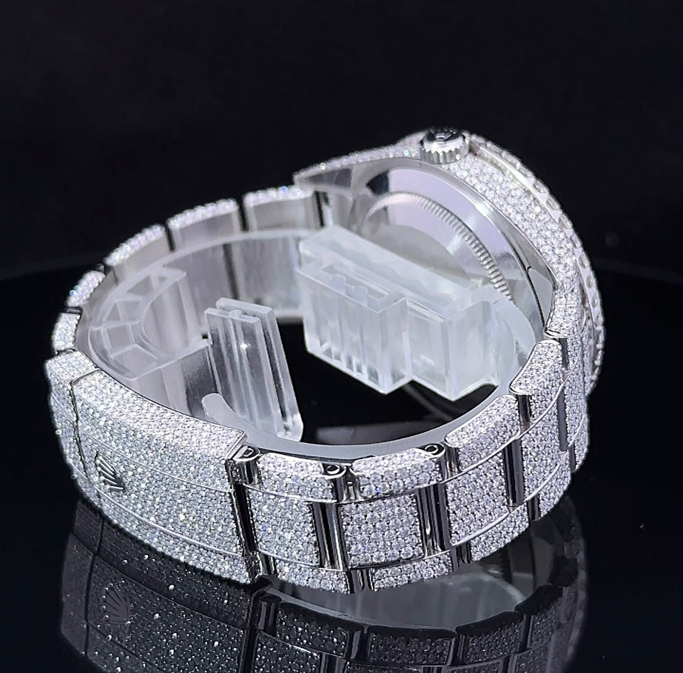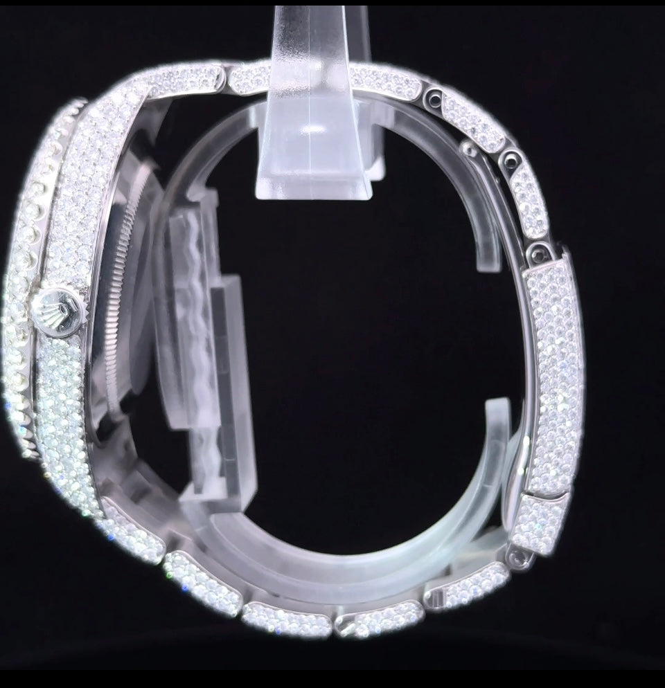 39mm Iced out Rolex Watch with Stainless Steel Oyster Bracelet