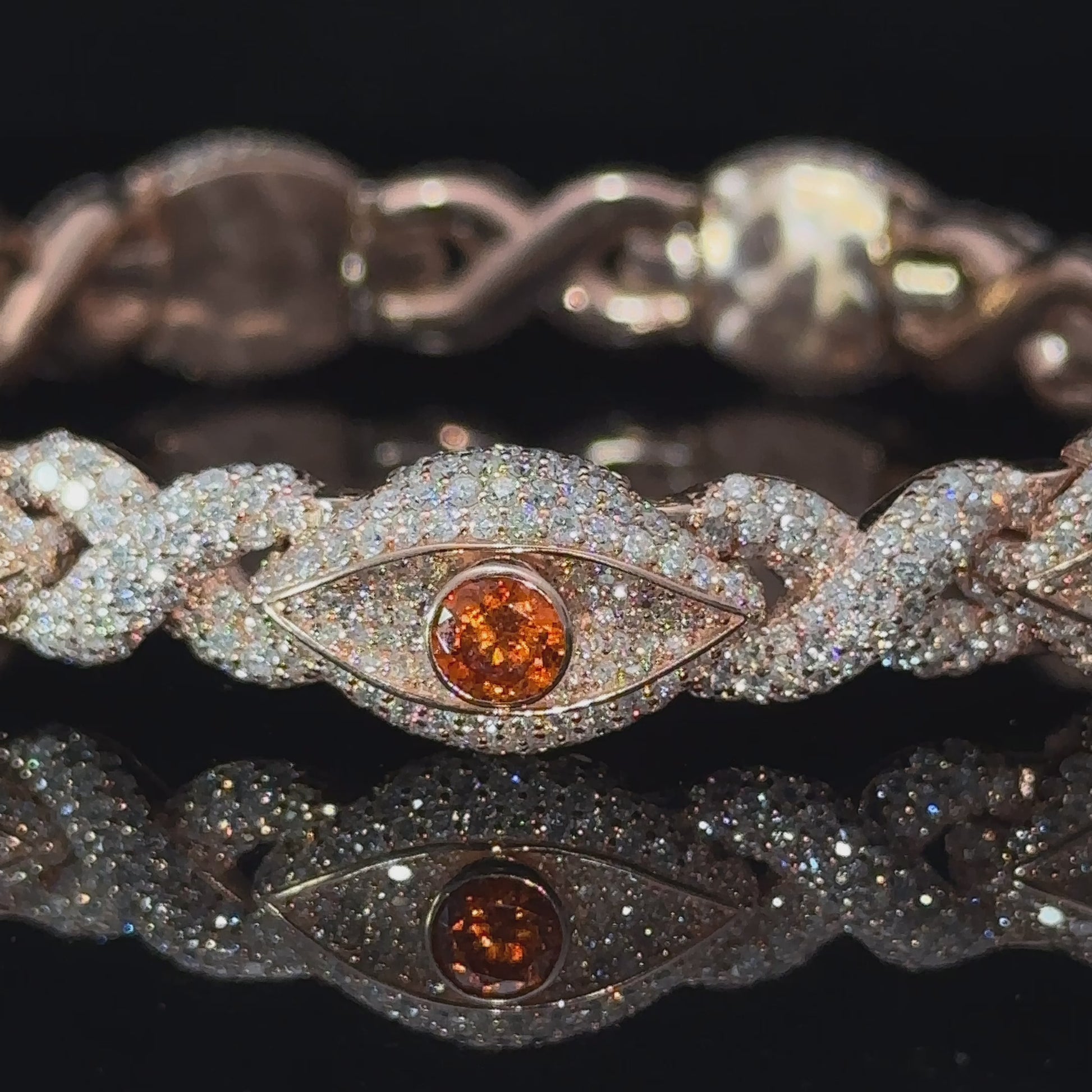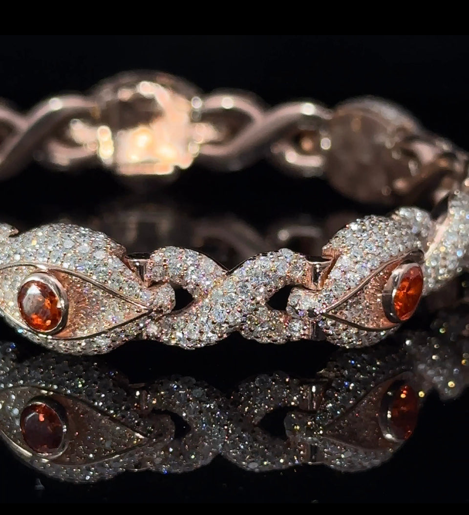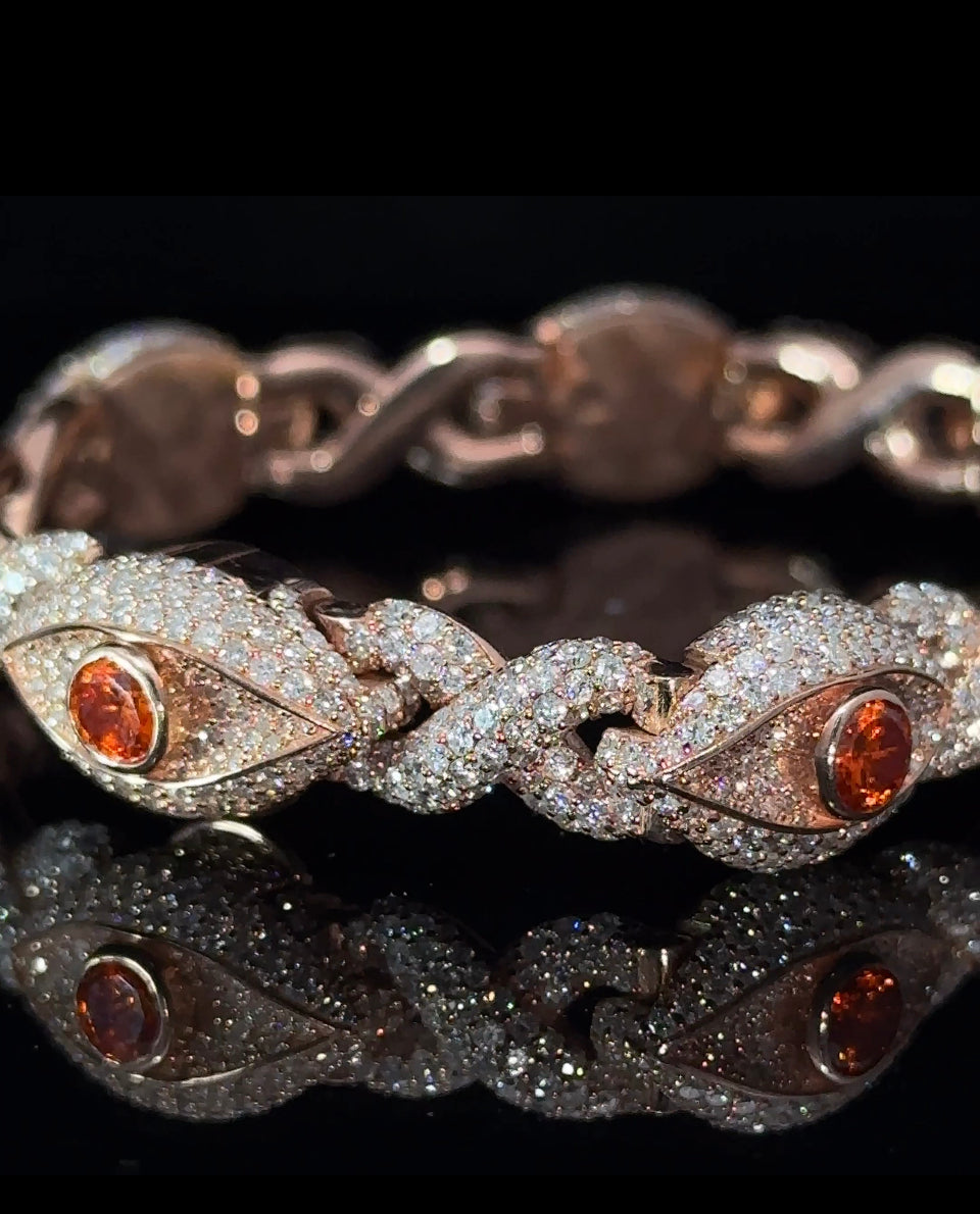10k Rose gold and diamond Evil Eye Bracelet with Orange gemstones