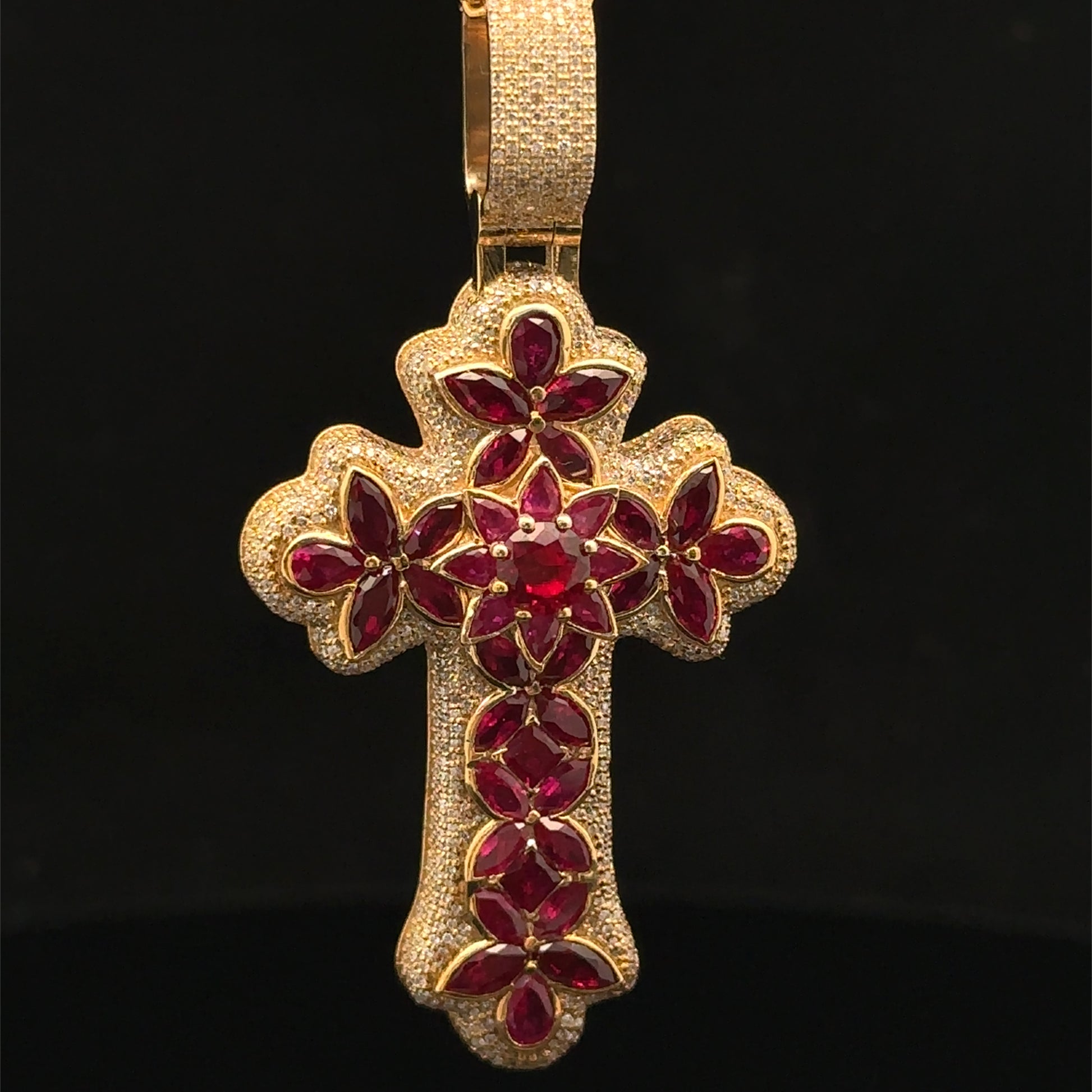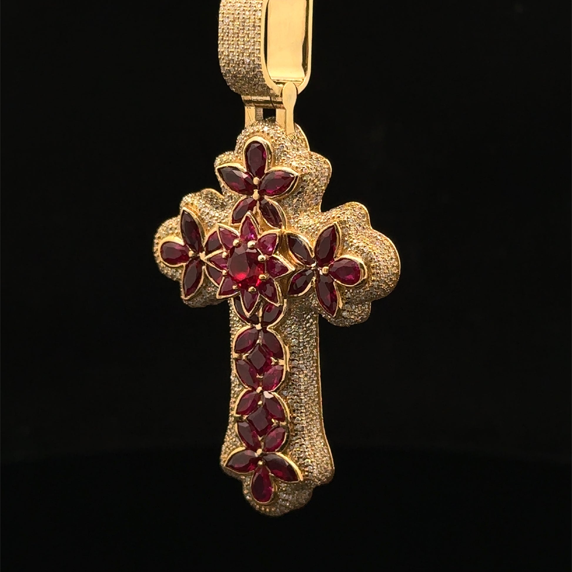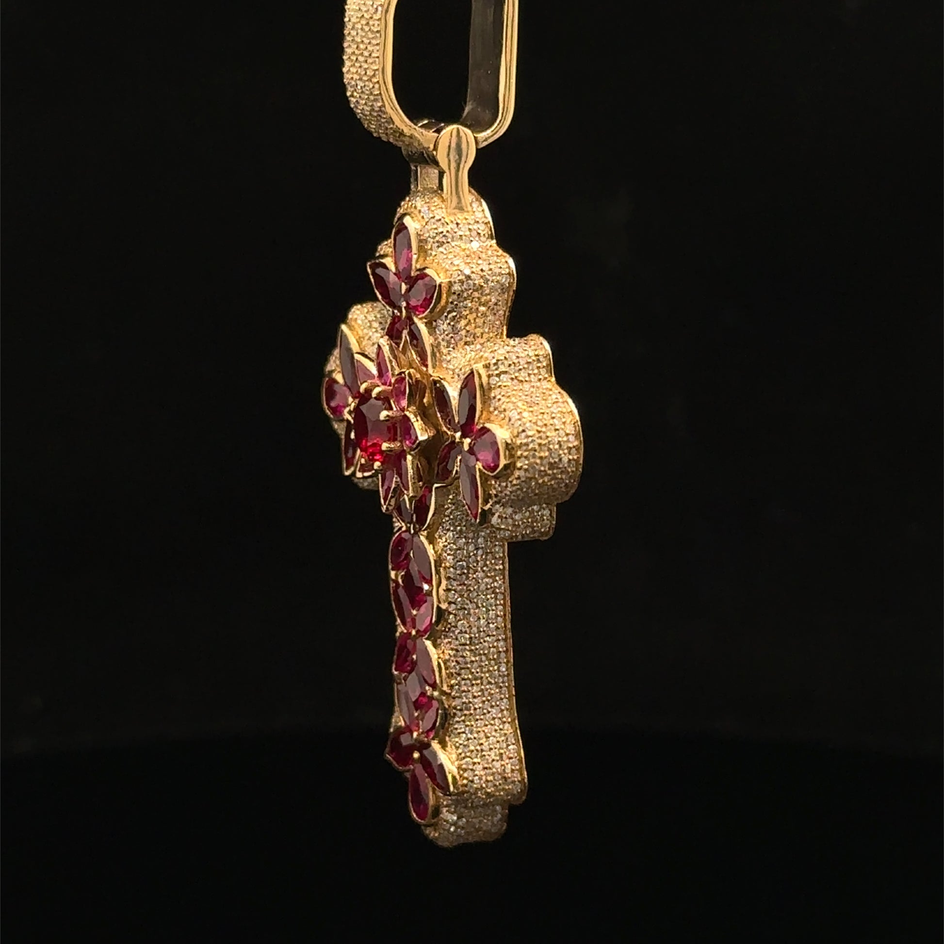 10K Yellow Gold Cross Pendant with Diamonds & Multicolored Stones