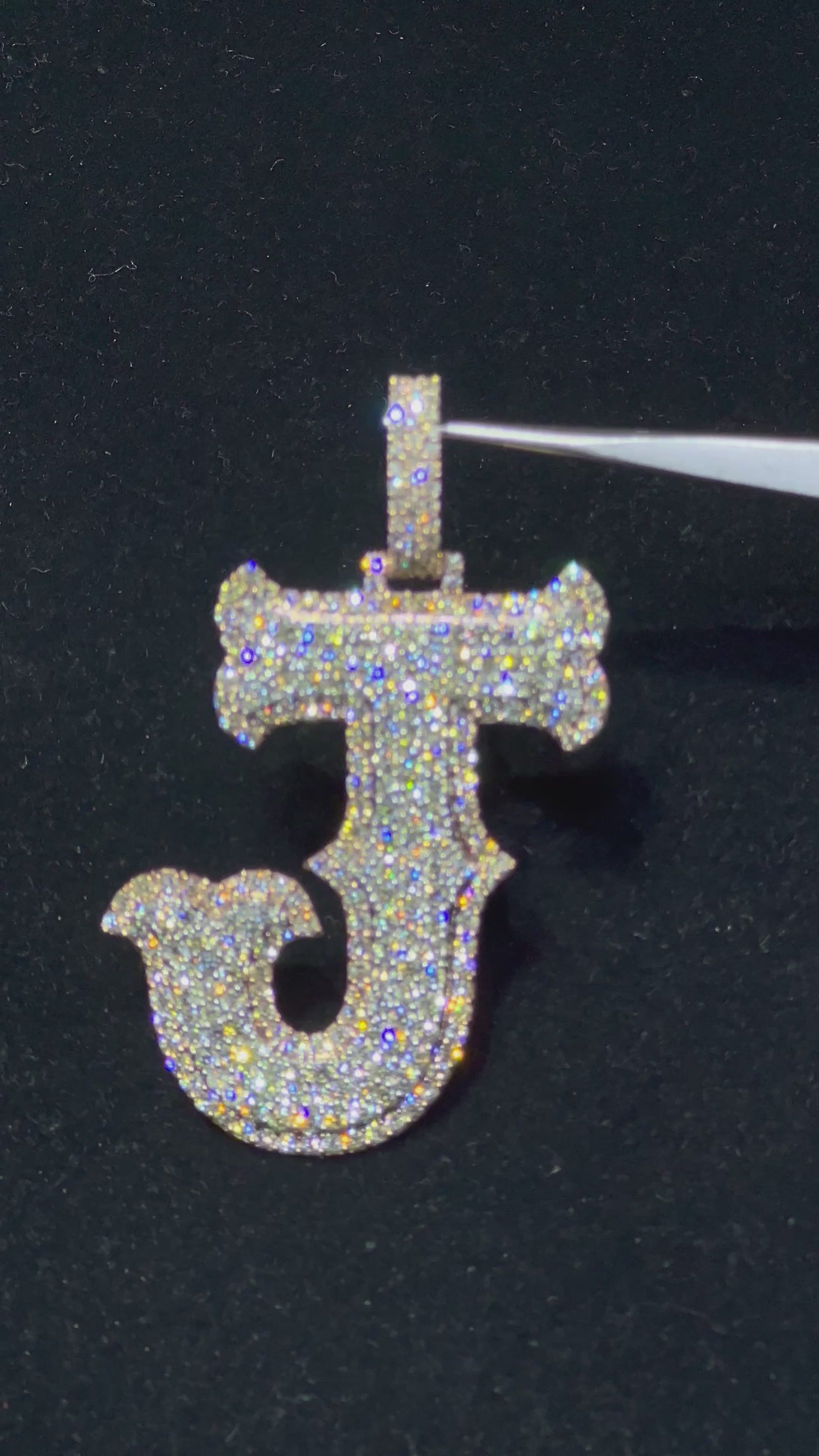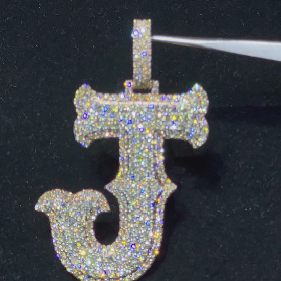 10k Two tone Rose & White Gold diamond J Initial Pendant