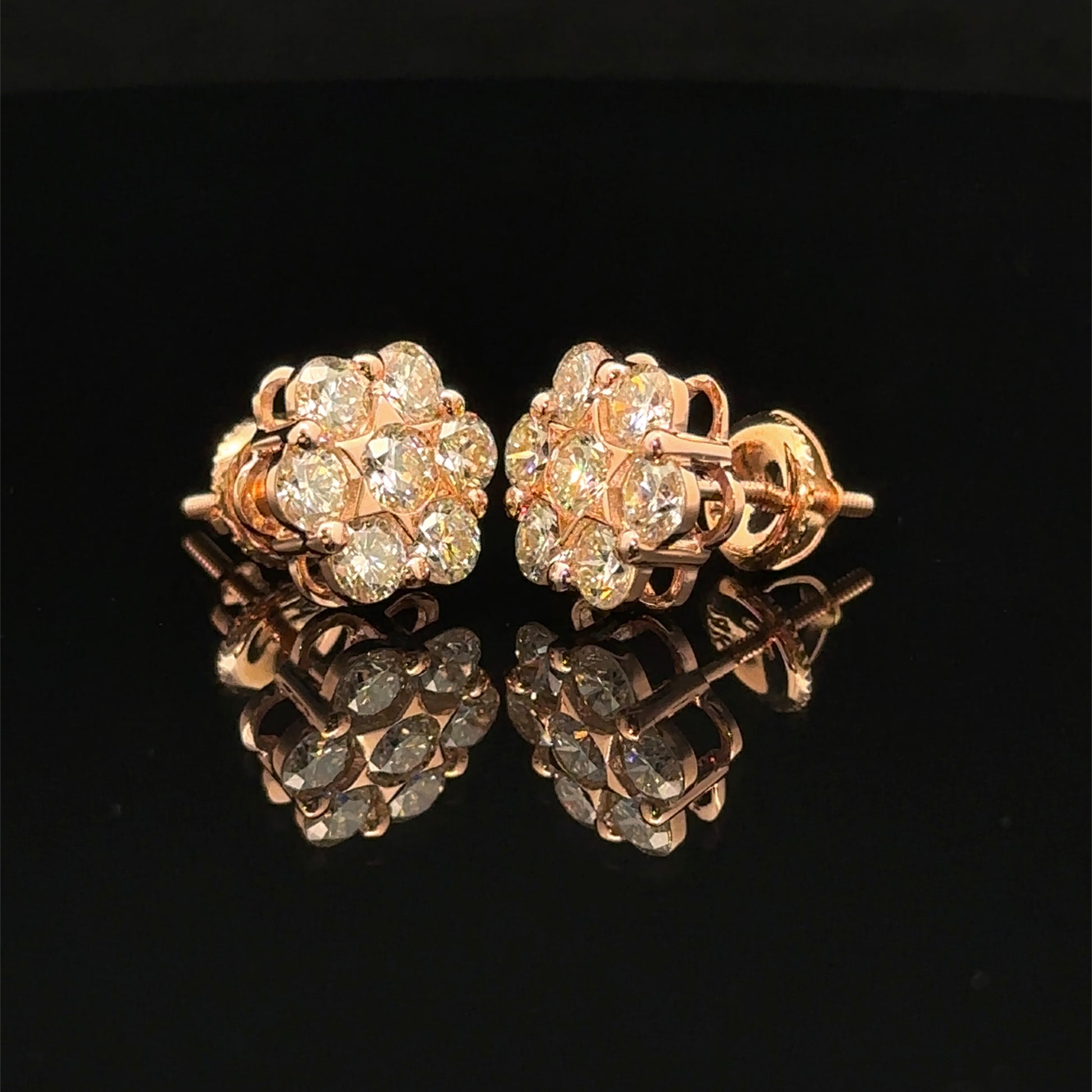 14k Rose Gold Diamond Flower Earrings – Delicate & Luxurious Fine Jewelry