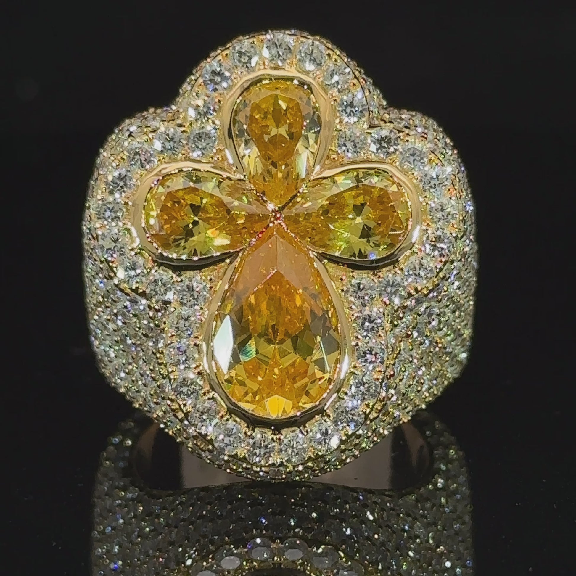 14k yellow gold and diamond Cross Ring with Fancy Pear Cut Gem Stones