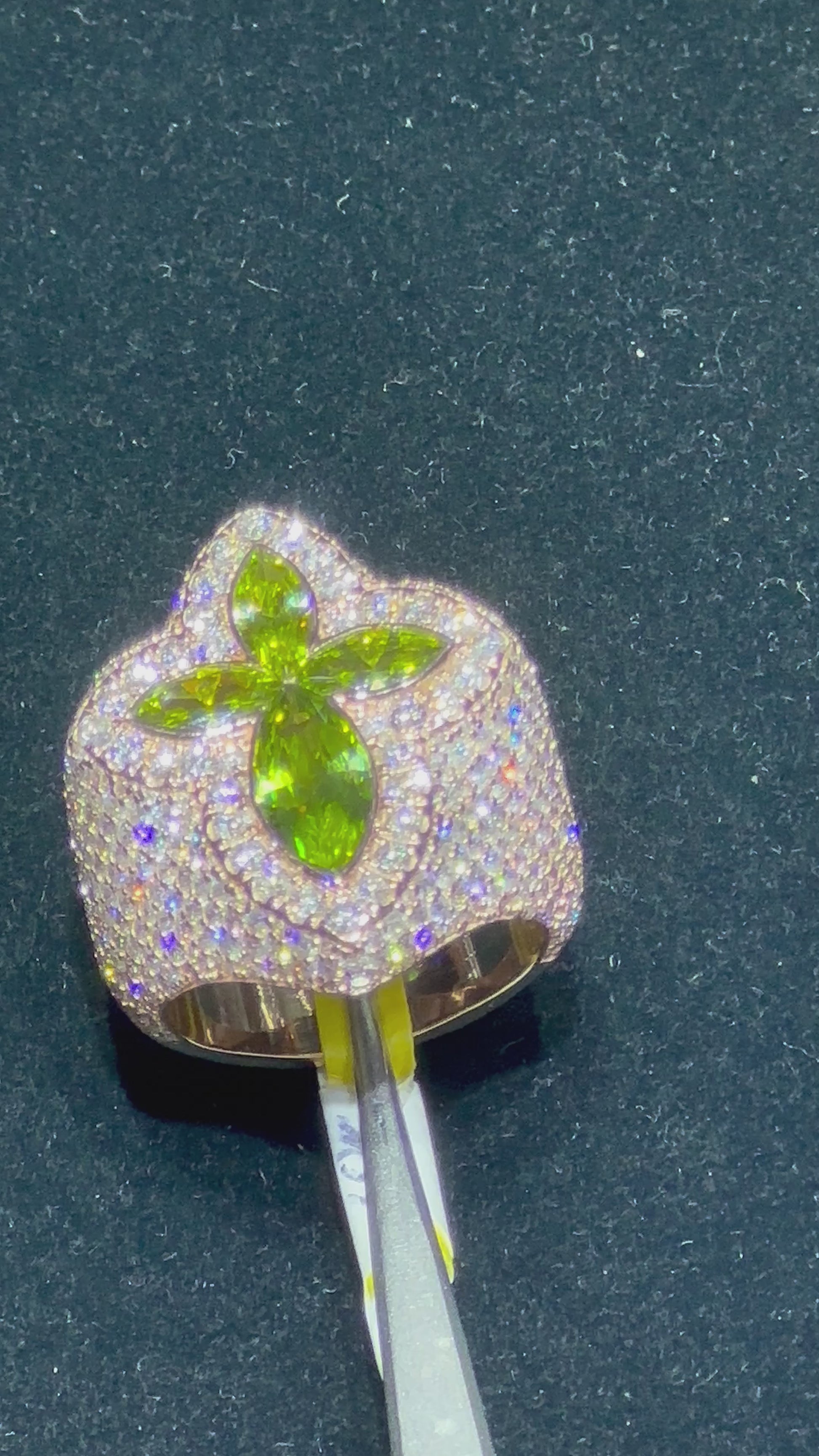 Rose gold and diamond Cross Ring with Pink Fancy Pear Gem Stones