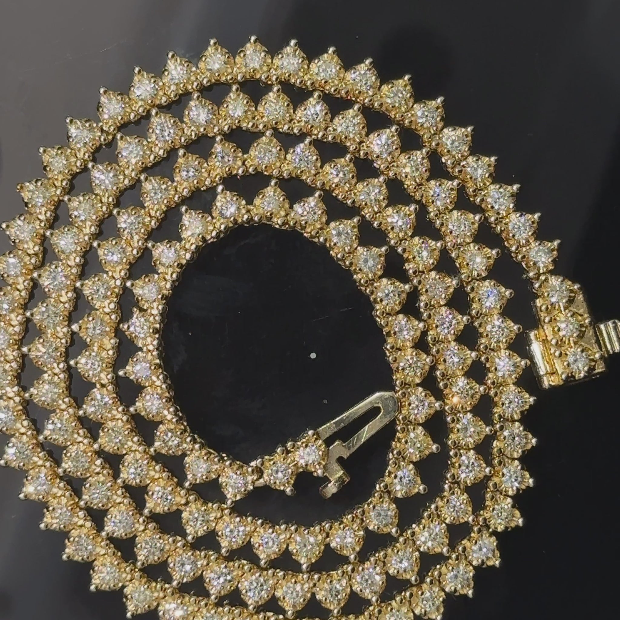14k yellow gold and diamond Tennis Chain (Martini Setting 3 Pointers)