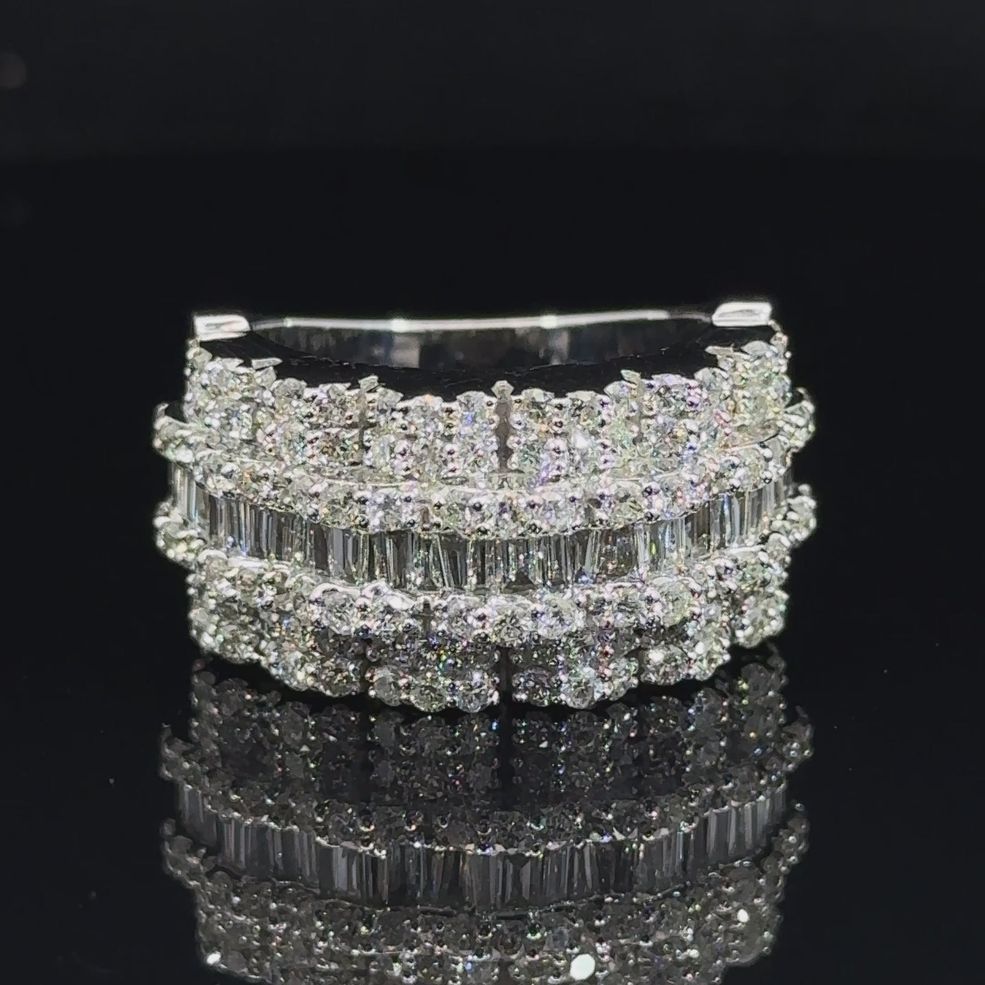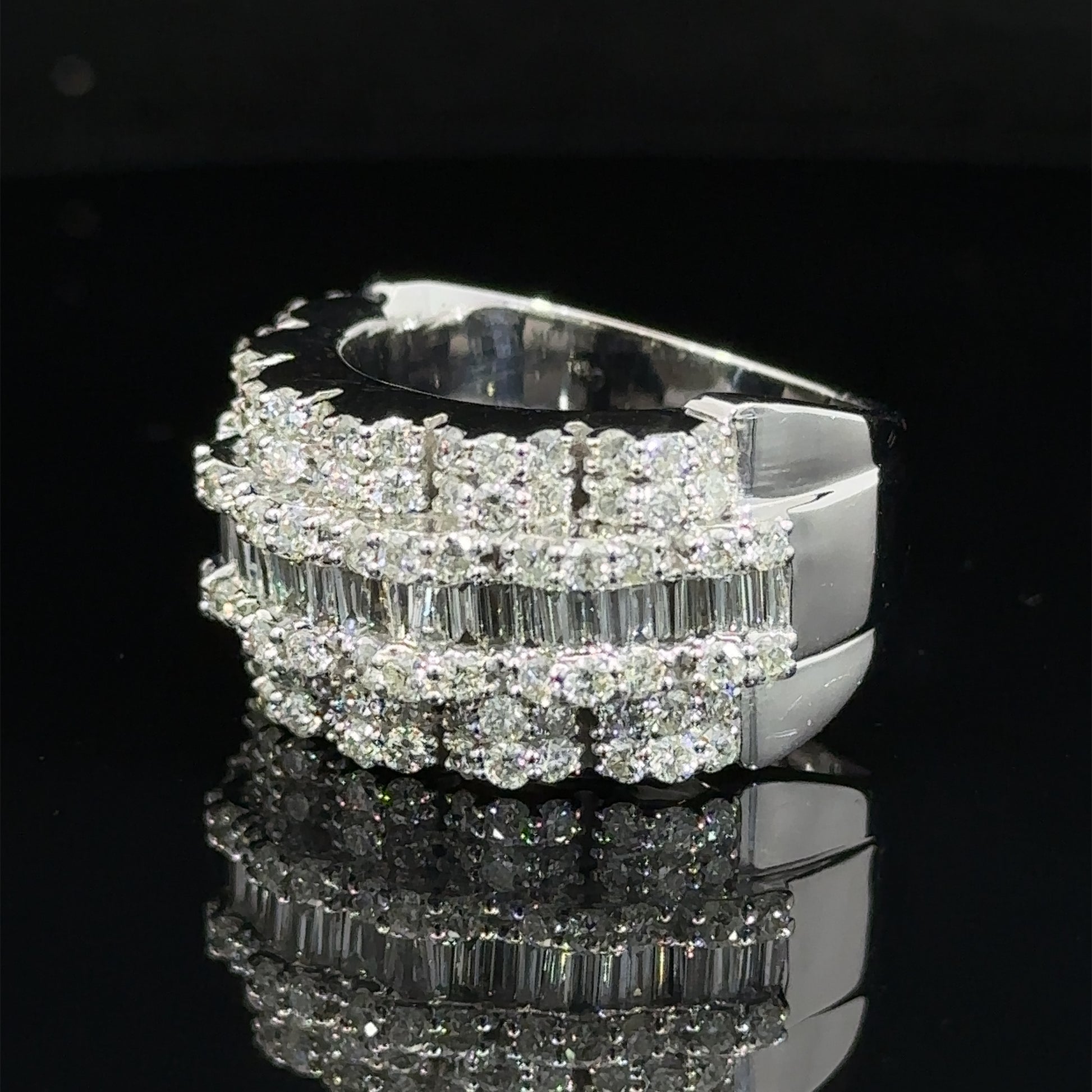 14k white gold Men`s Ring with Round and Baguettes Diamonds