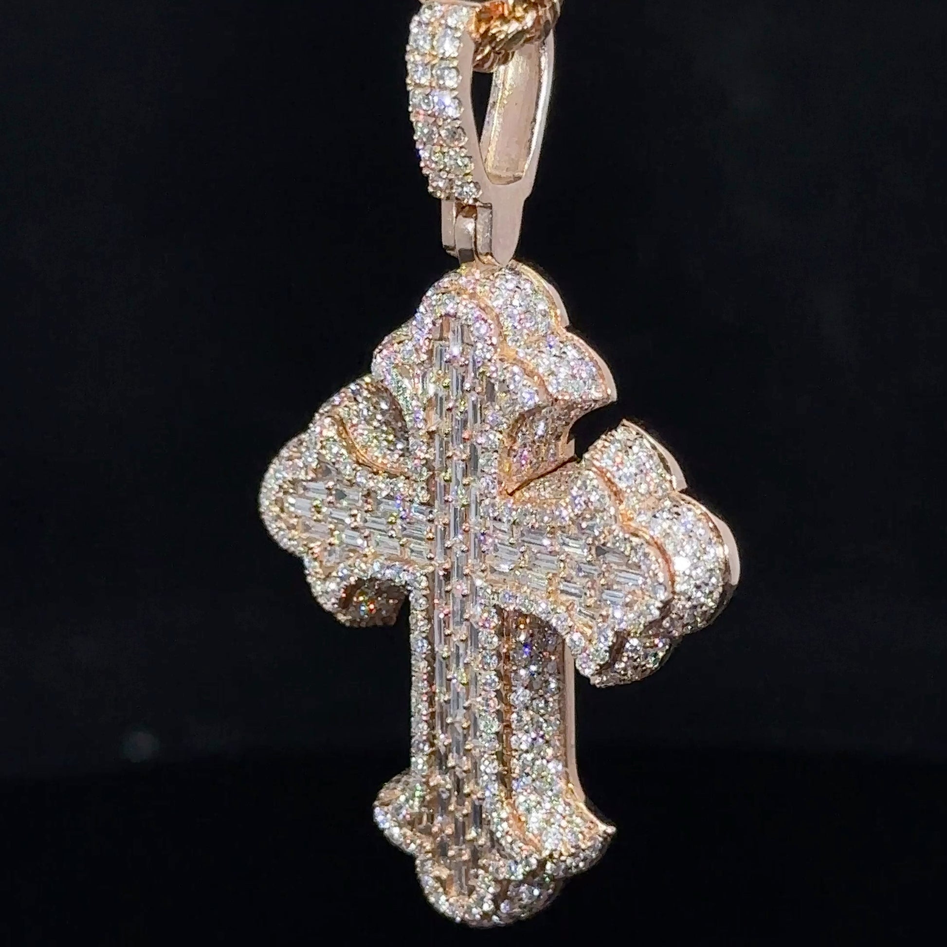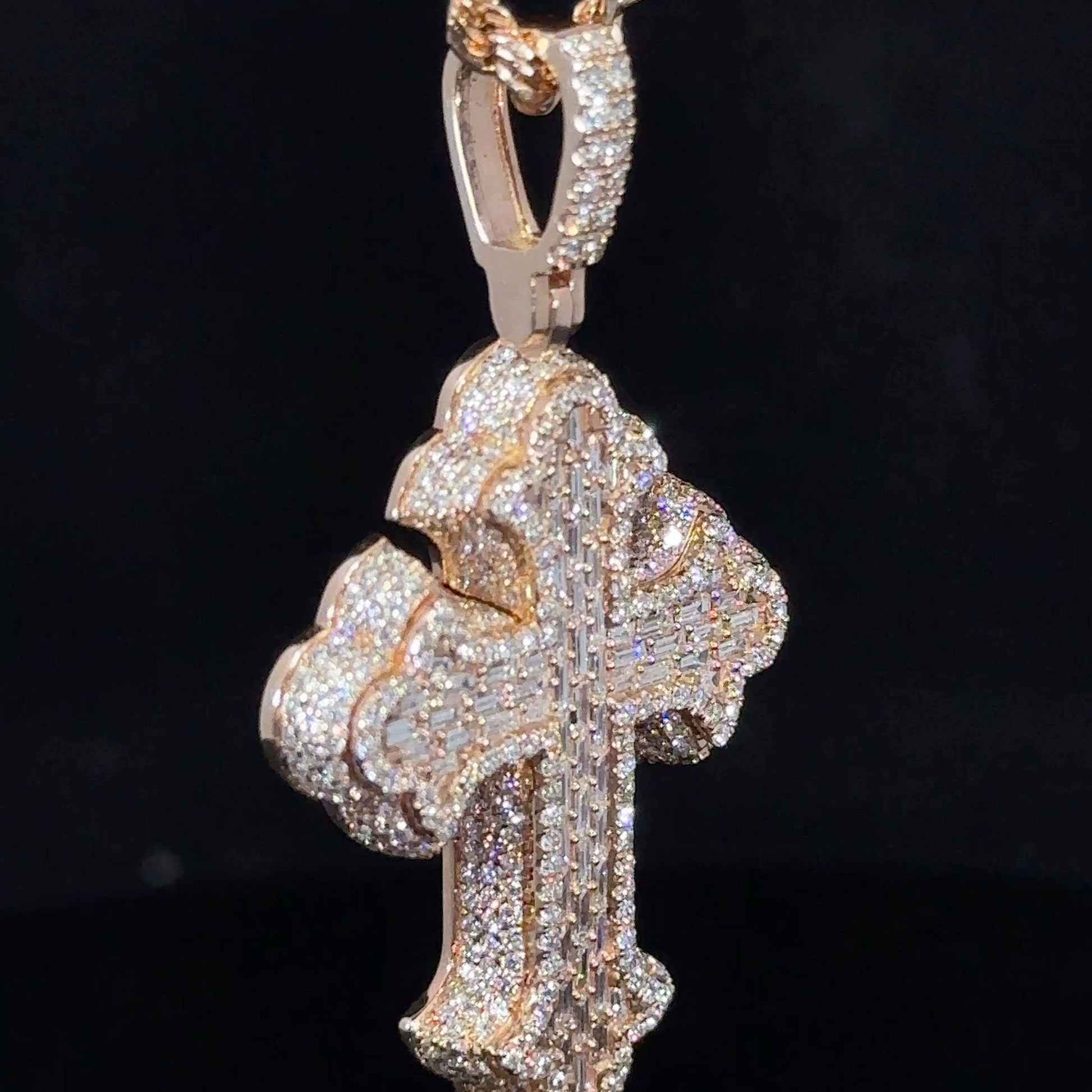 - Charm is 14k Rose gold and natural round diamonds and Baguette Diamonds.