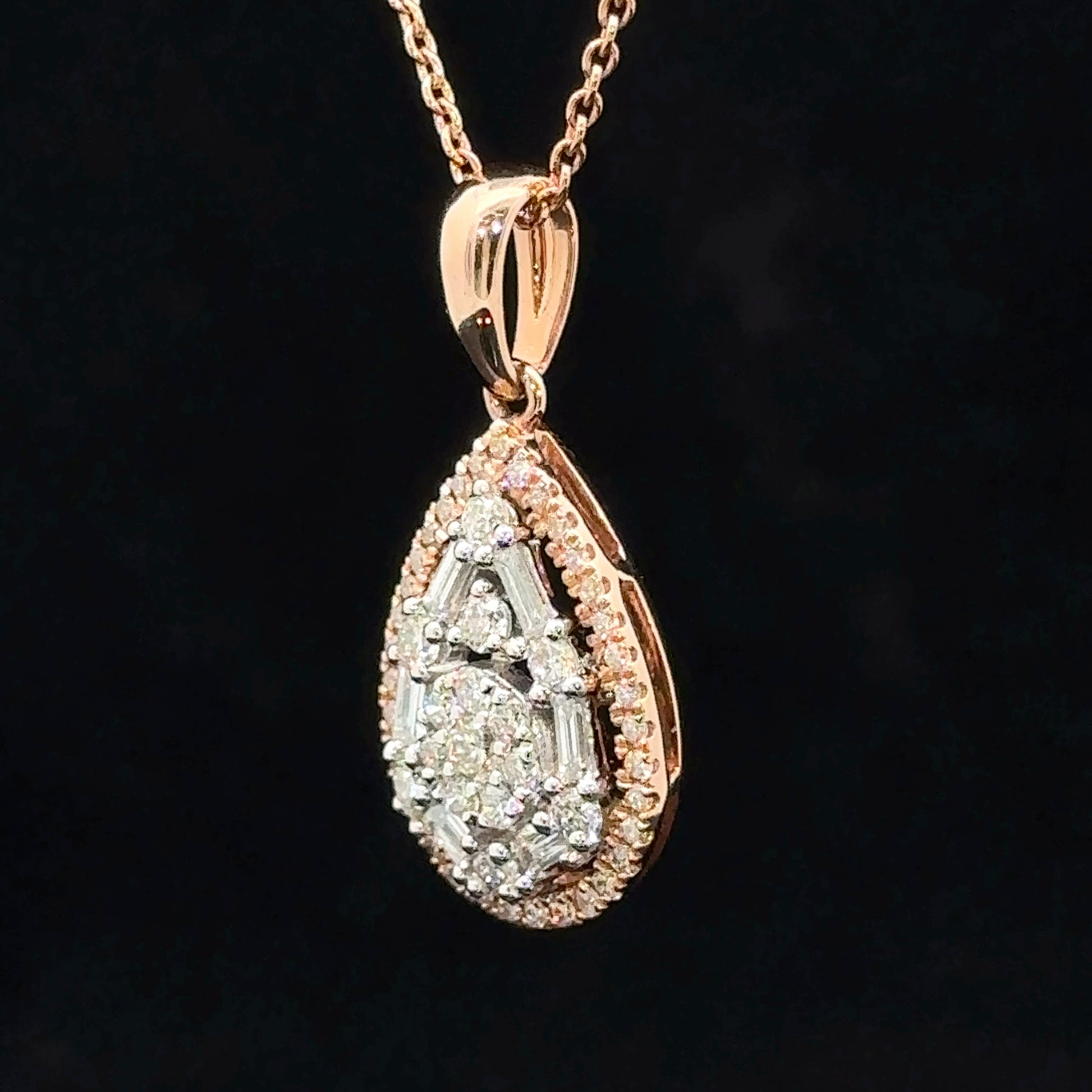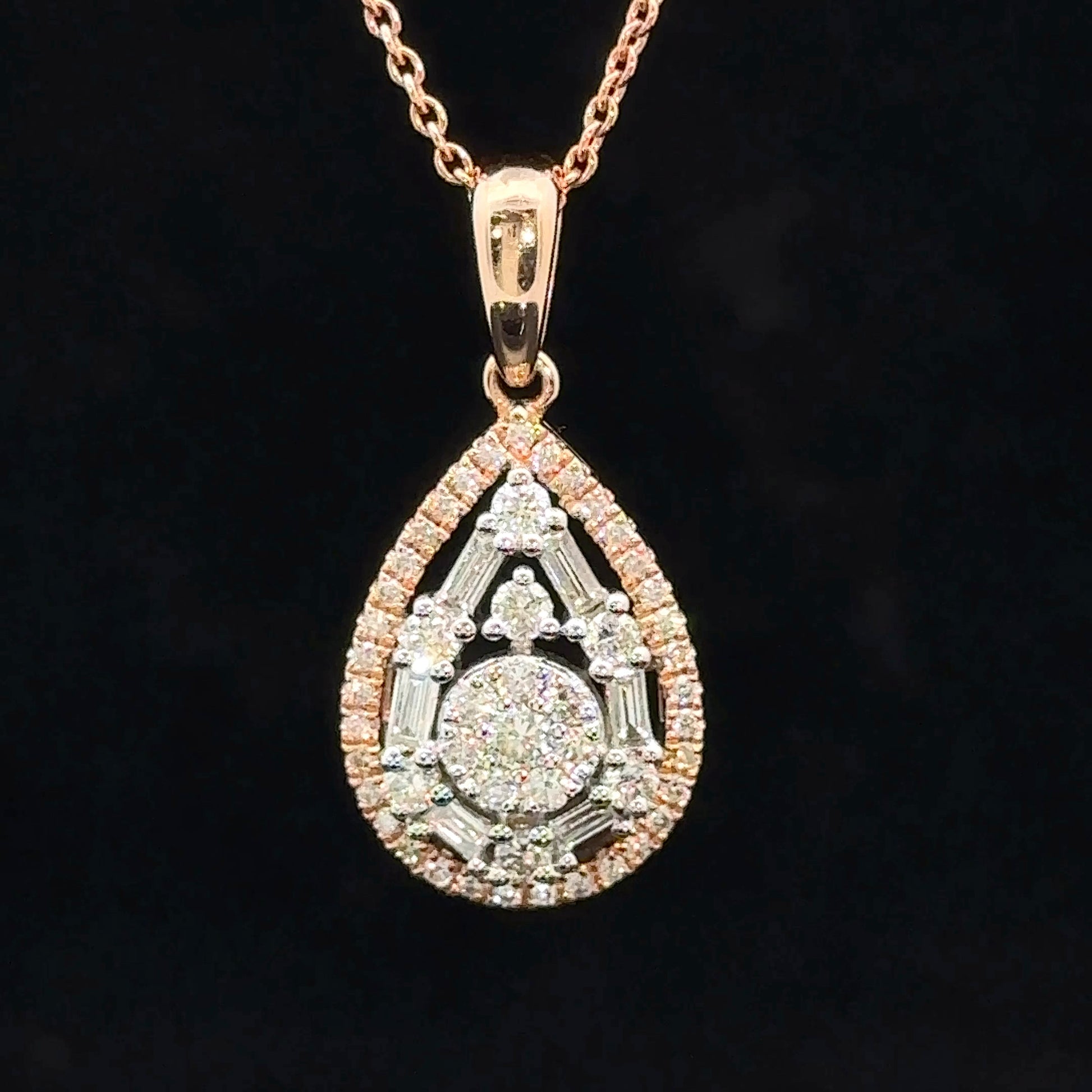 14k Rose/White gold and diamond Pear Shape Fancy Pendant