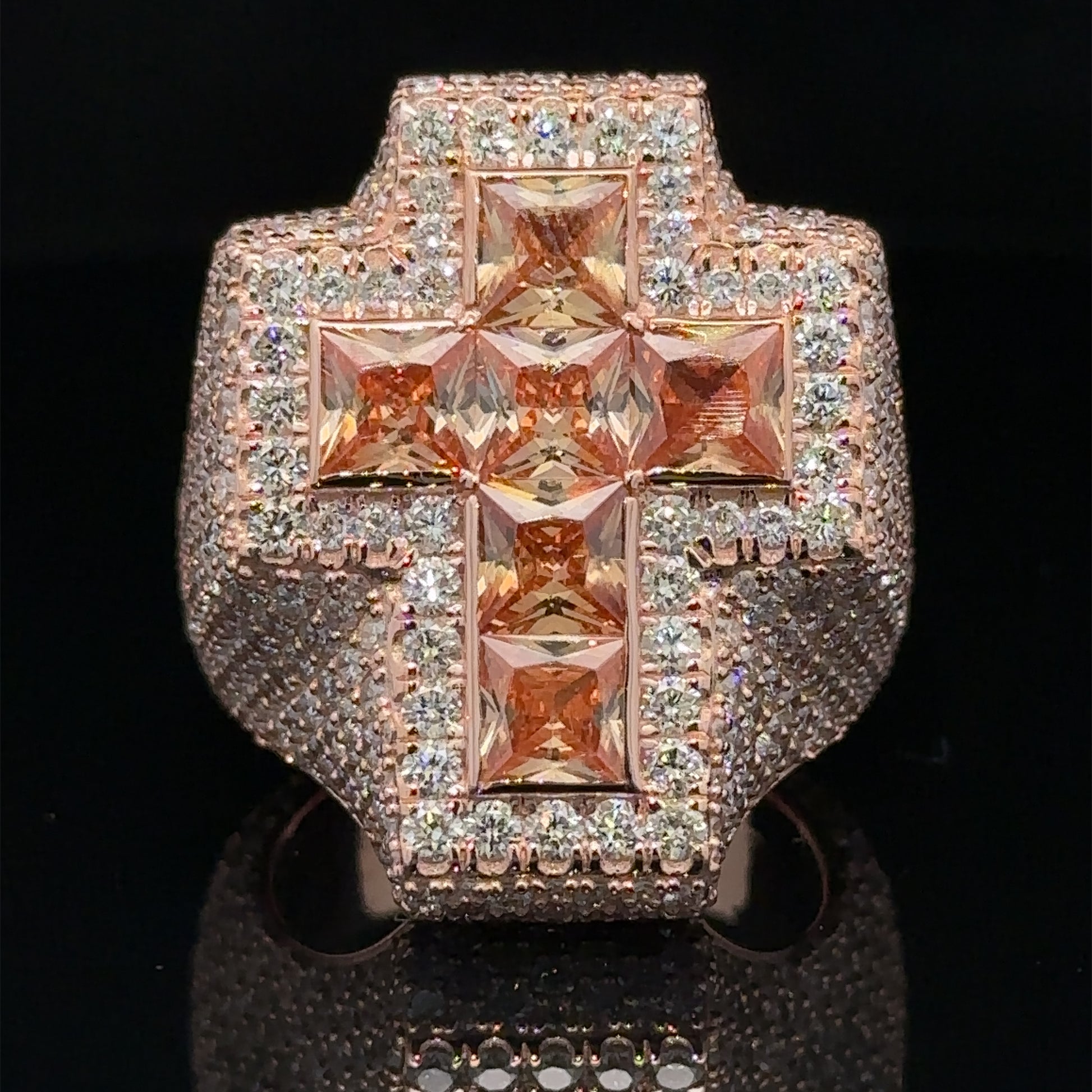 Rose gold and diamond Cross Ring with Fancy Champagne Pear Cut Gem Stones