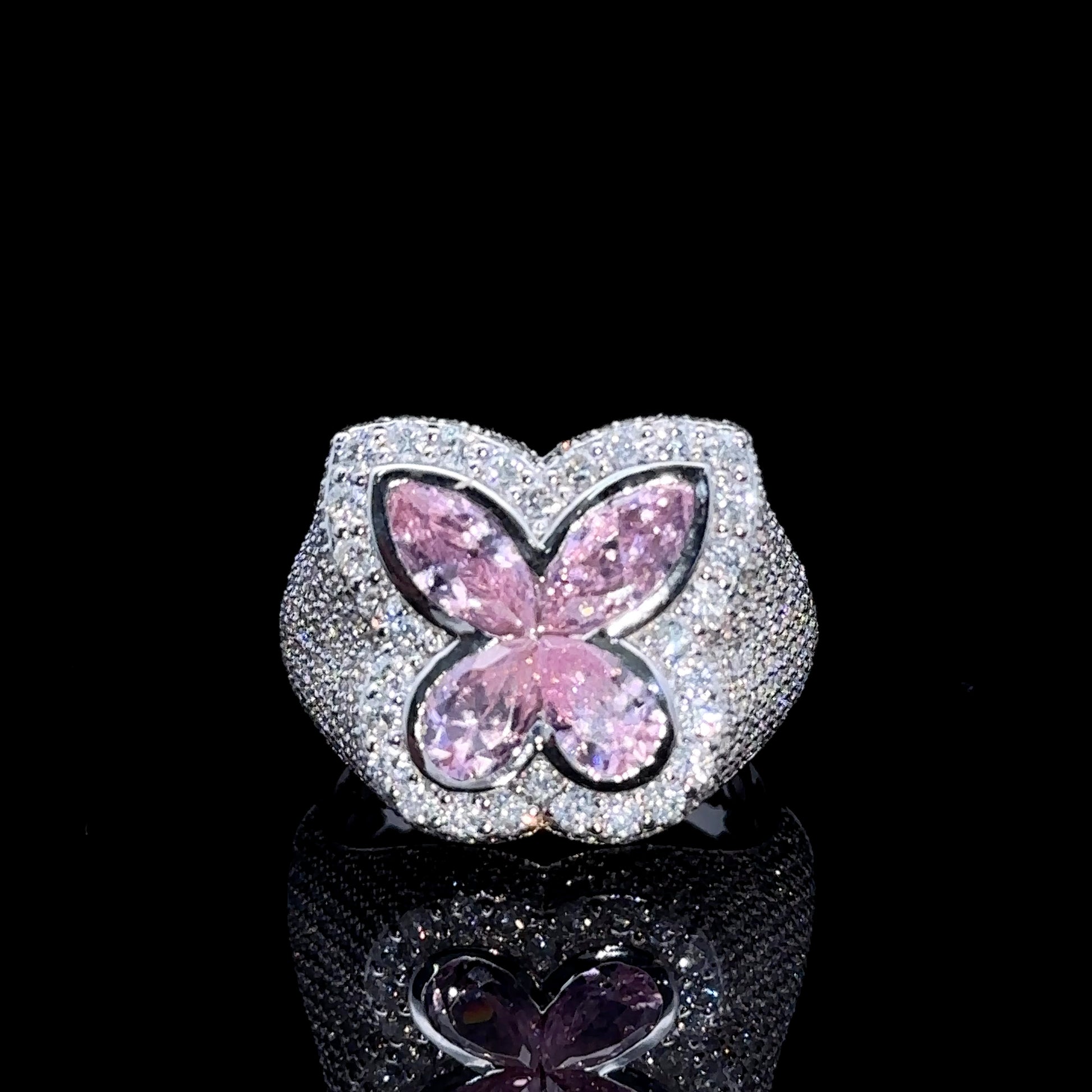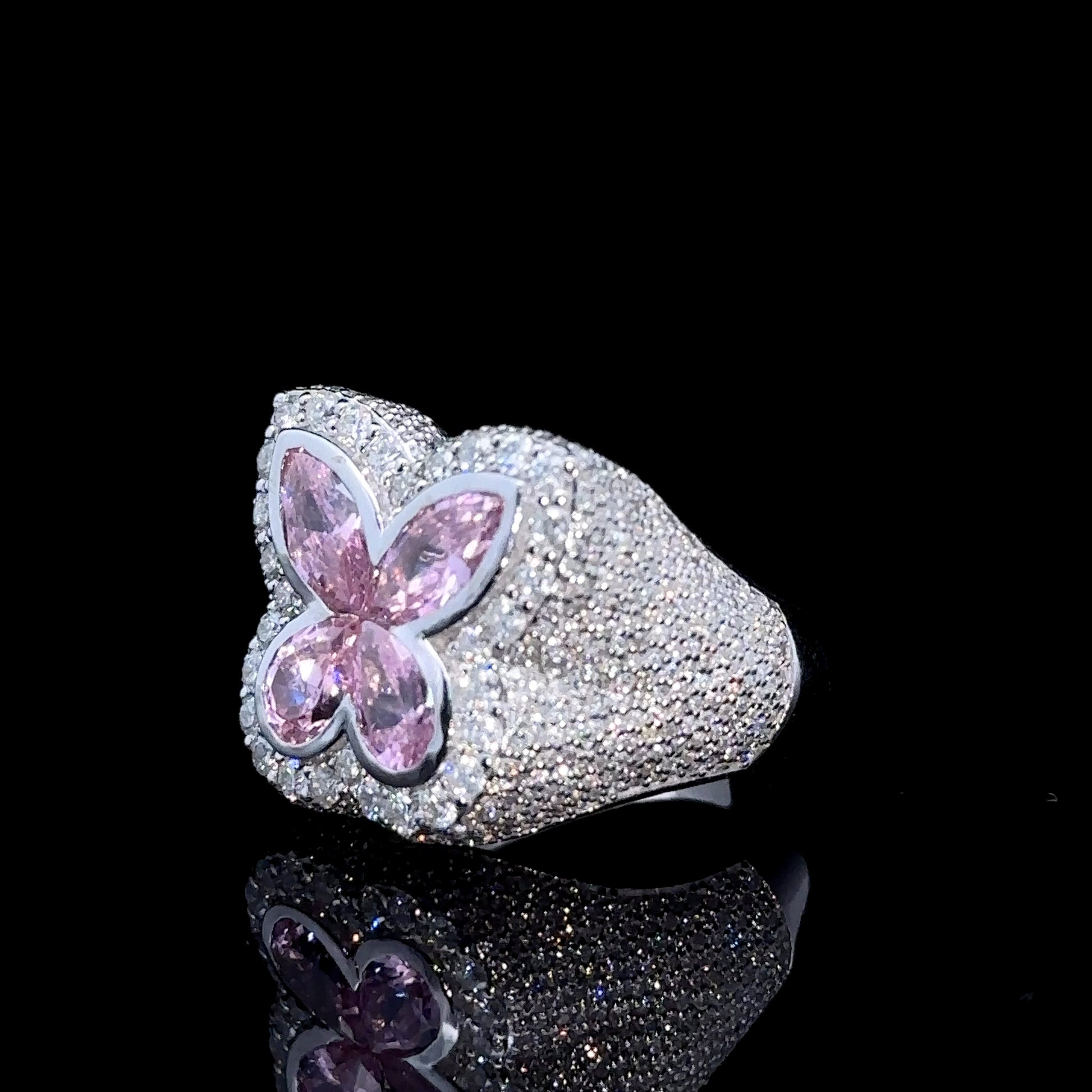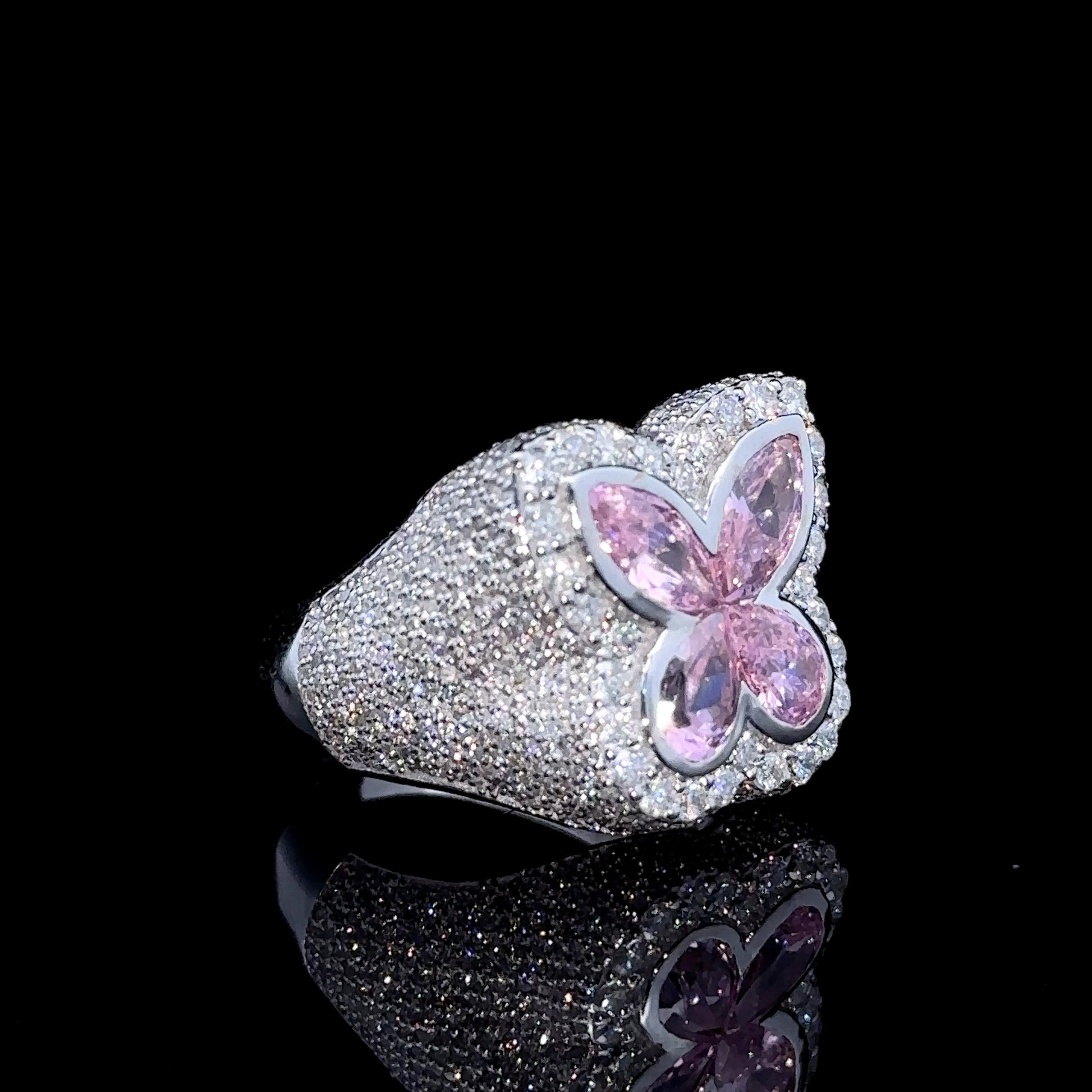 White gold and Diamond butterfly Ring with Pink Fancy Pear Cut Gem Stones