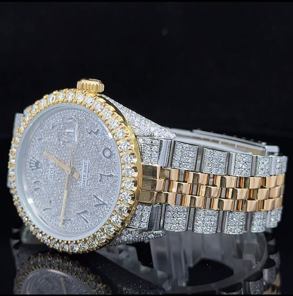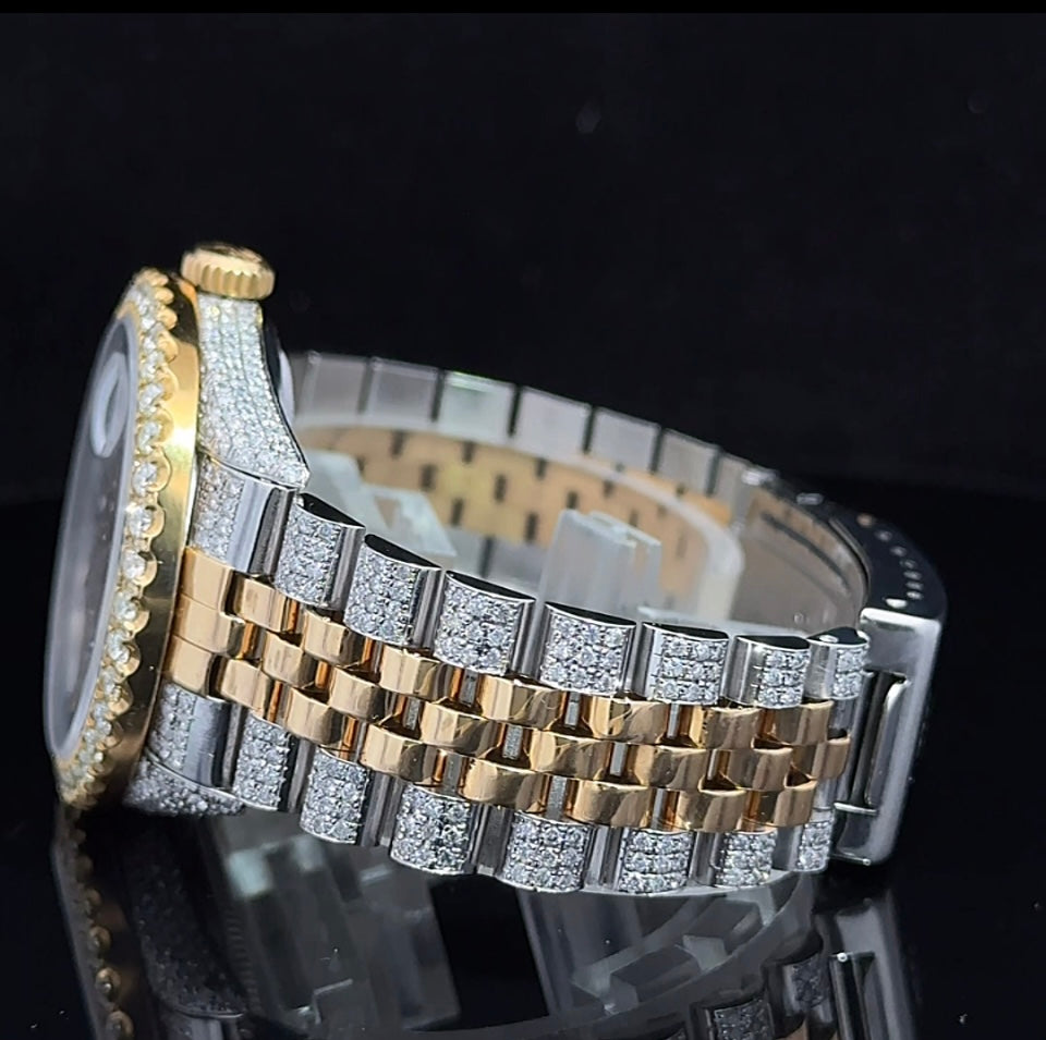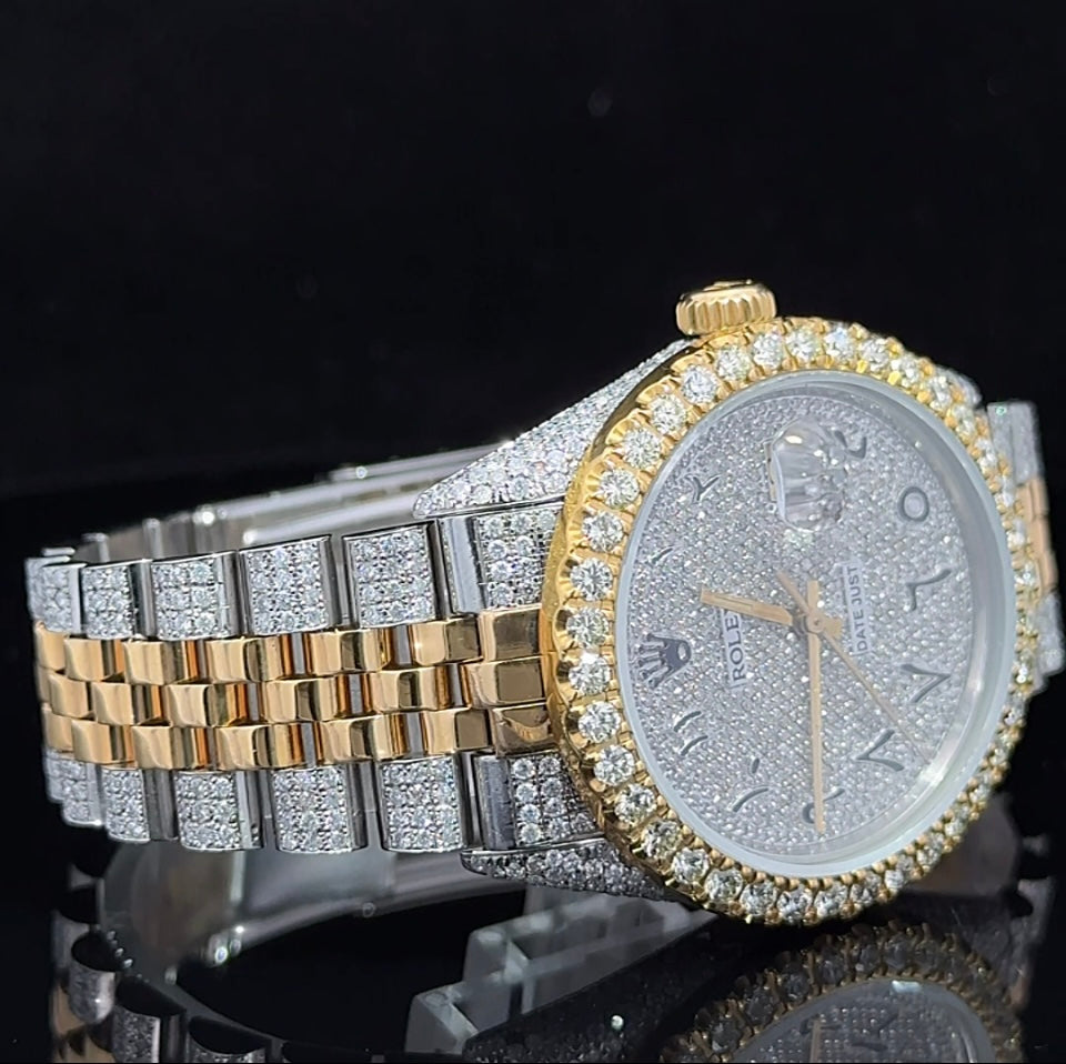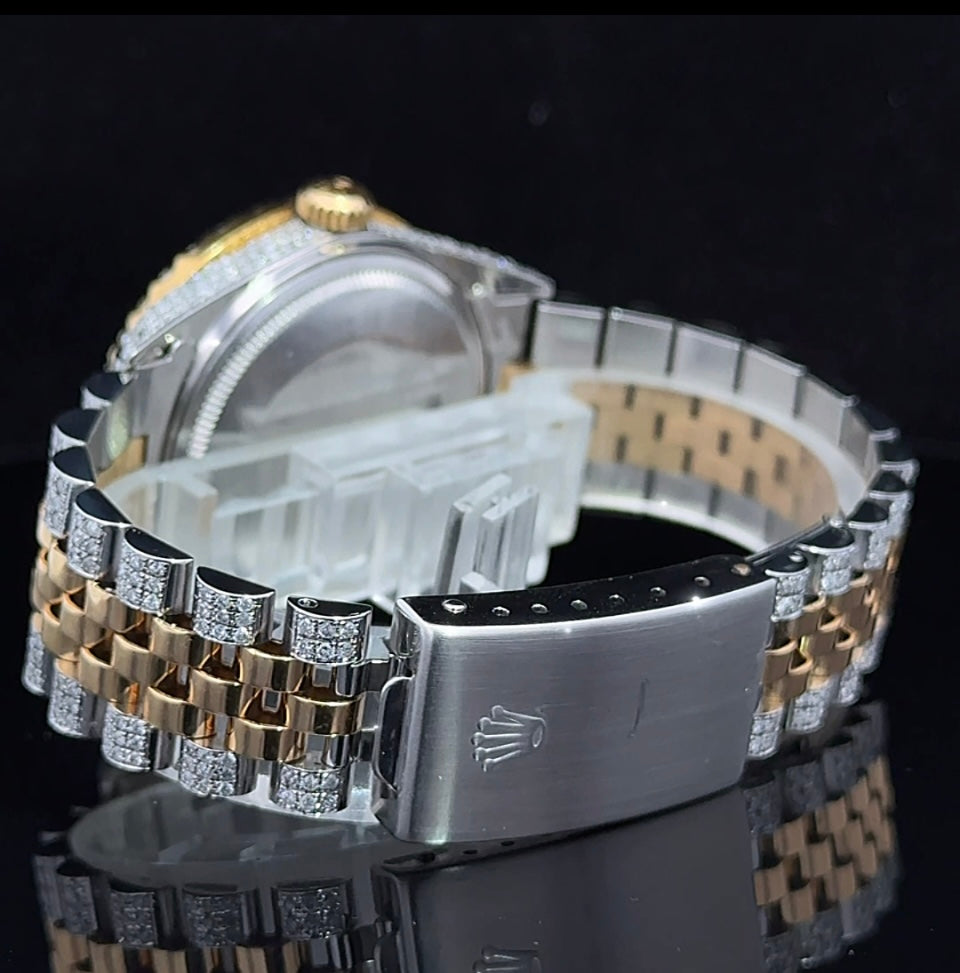 Iced out 36mm Rolex Watch with Two-Tone Jubilee Bracelet