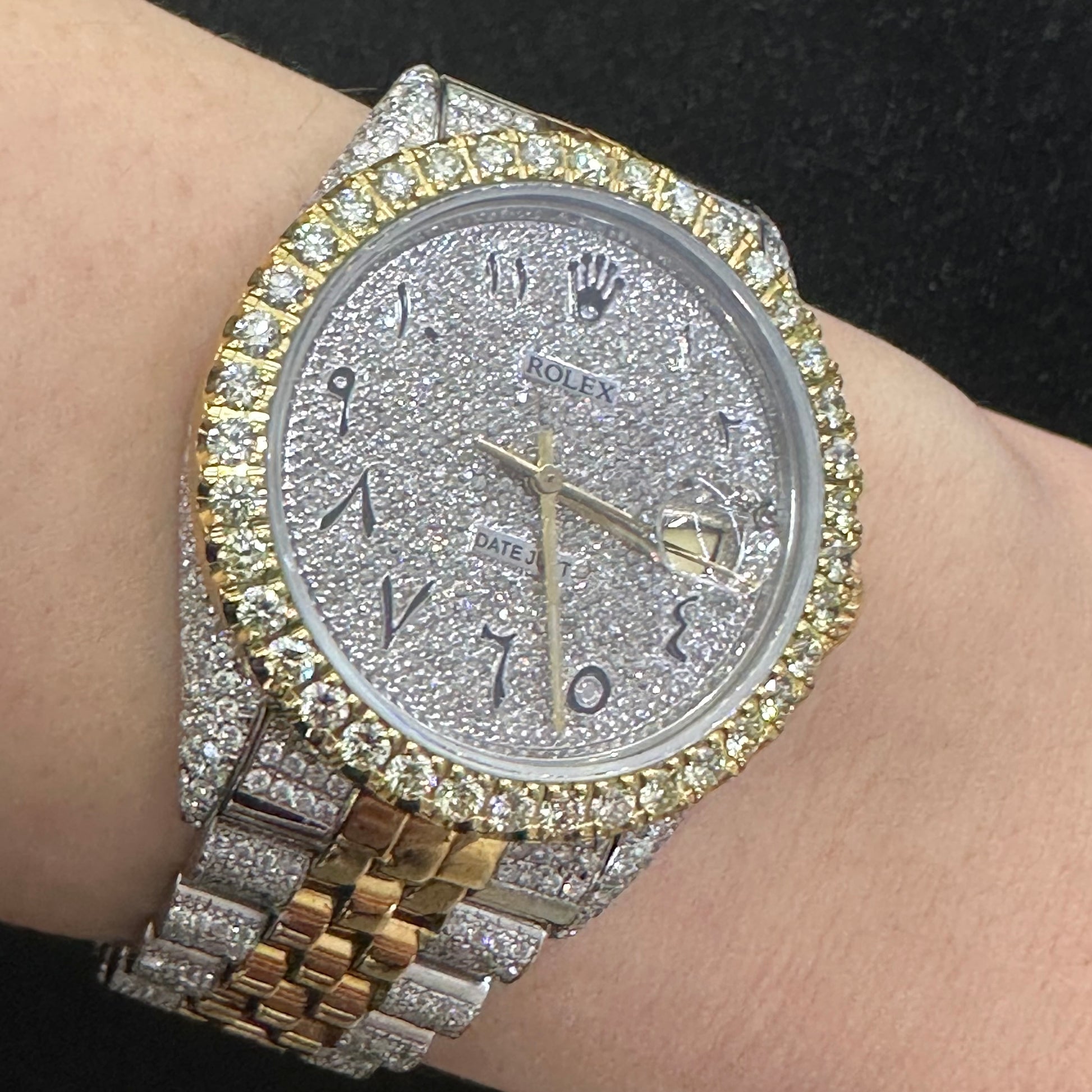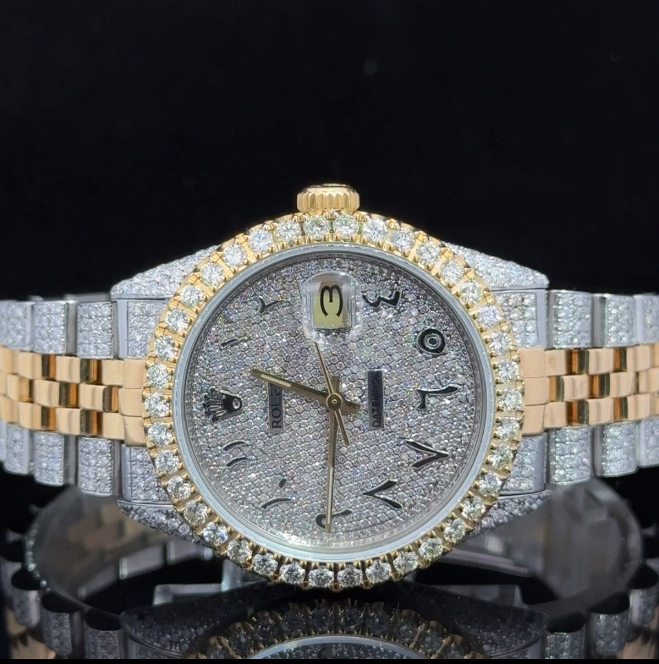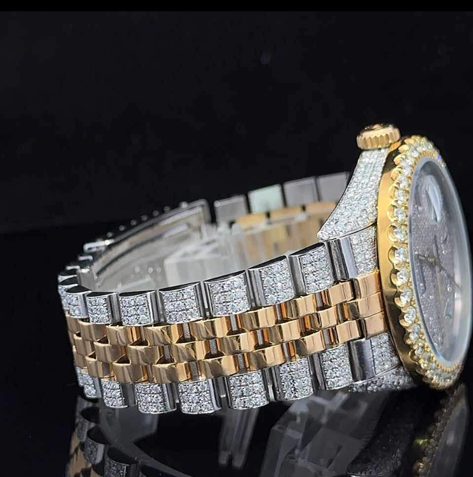 Iced out 36mm Rolex Watch with Two-Tone Jubilee Bracelet