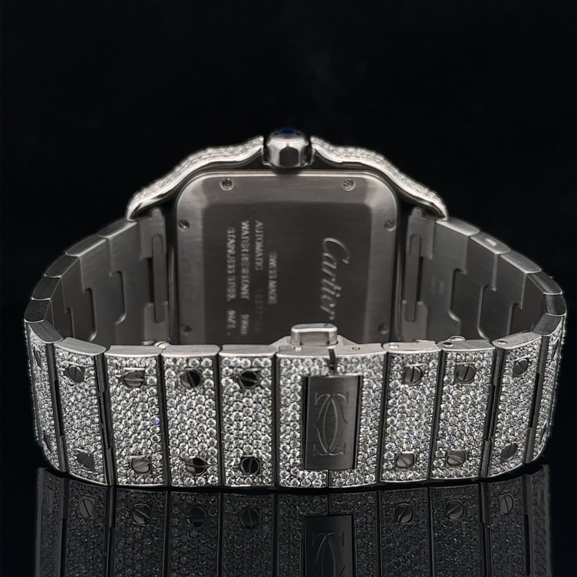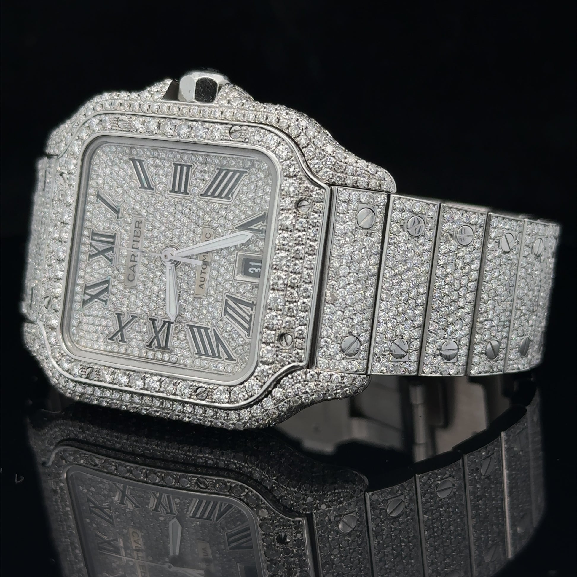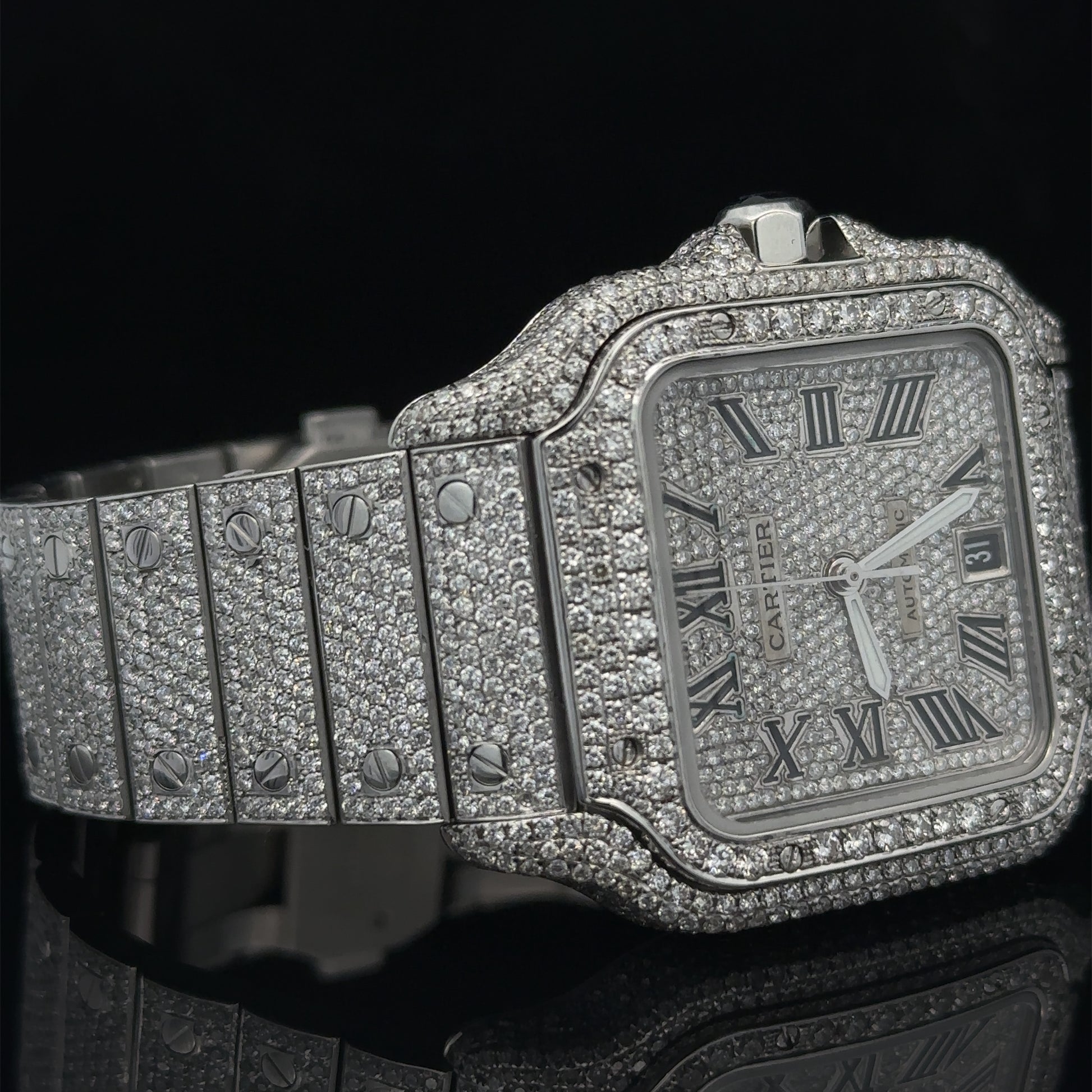 Iced out 40mm Cartier Santos Watch (stainless steel)