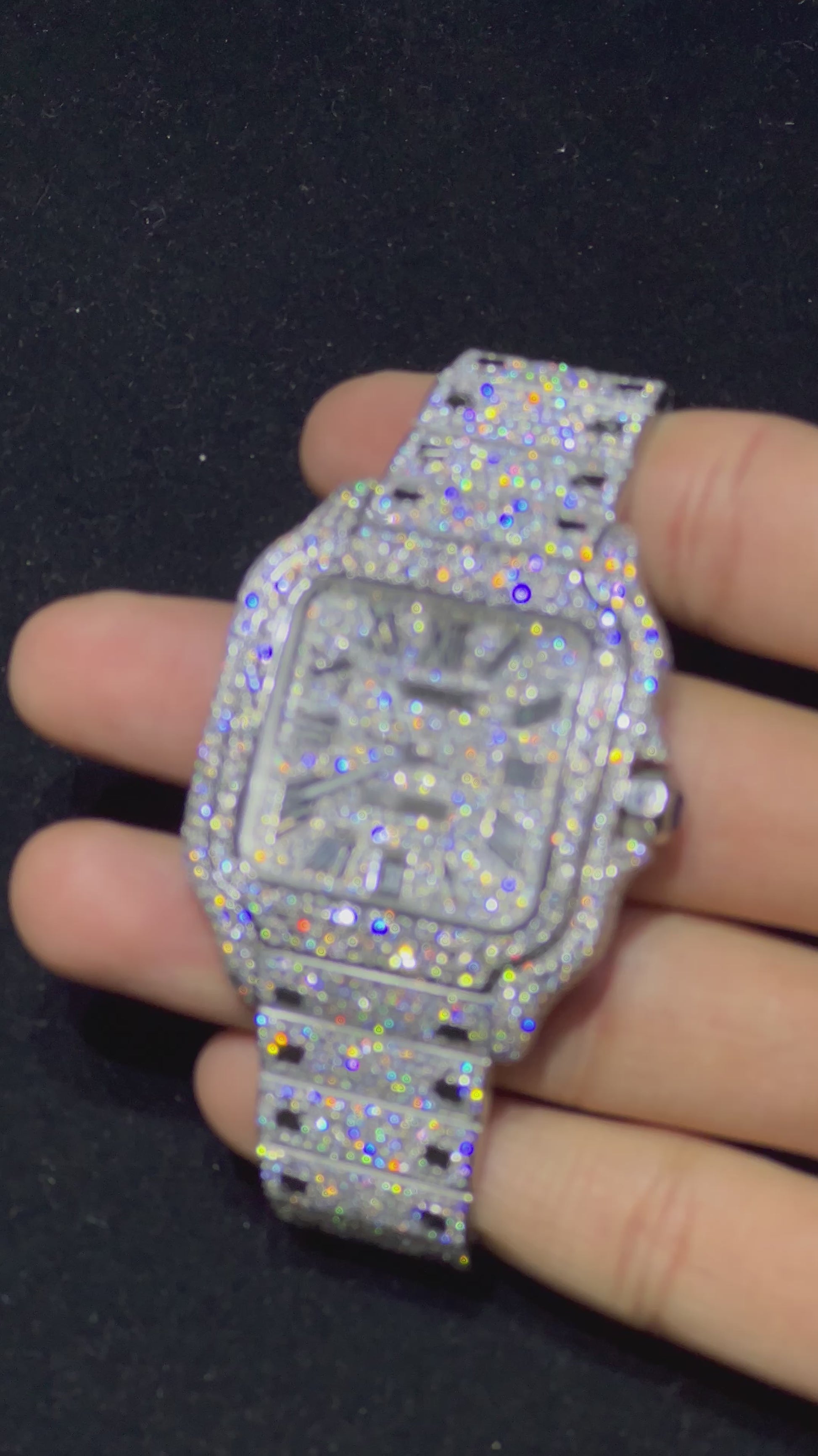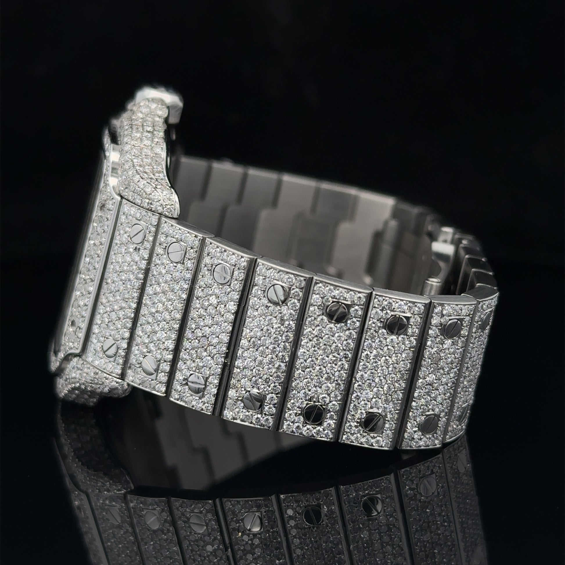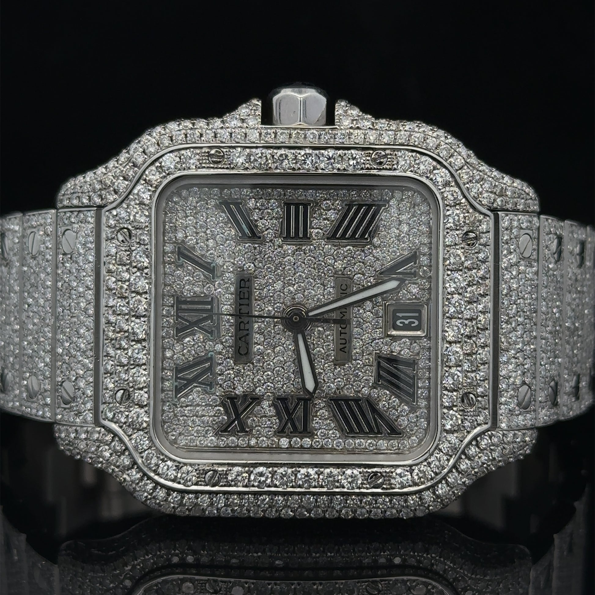 Iced out 40mm Cartier Santos Watch (stainless steel)