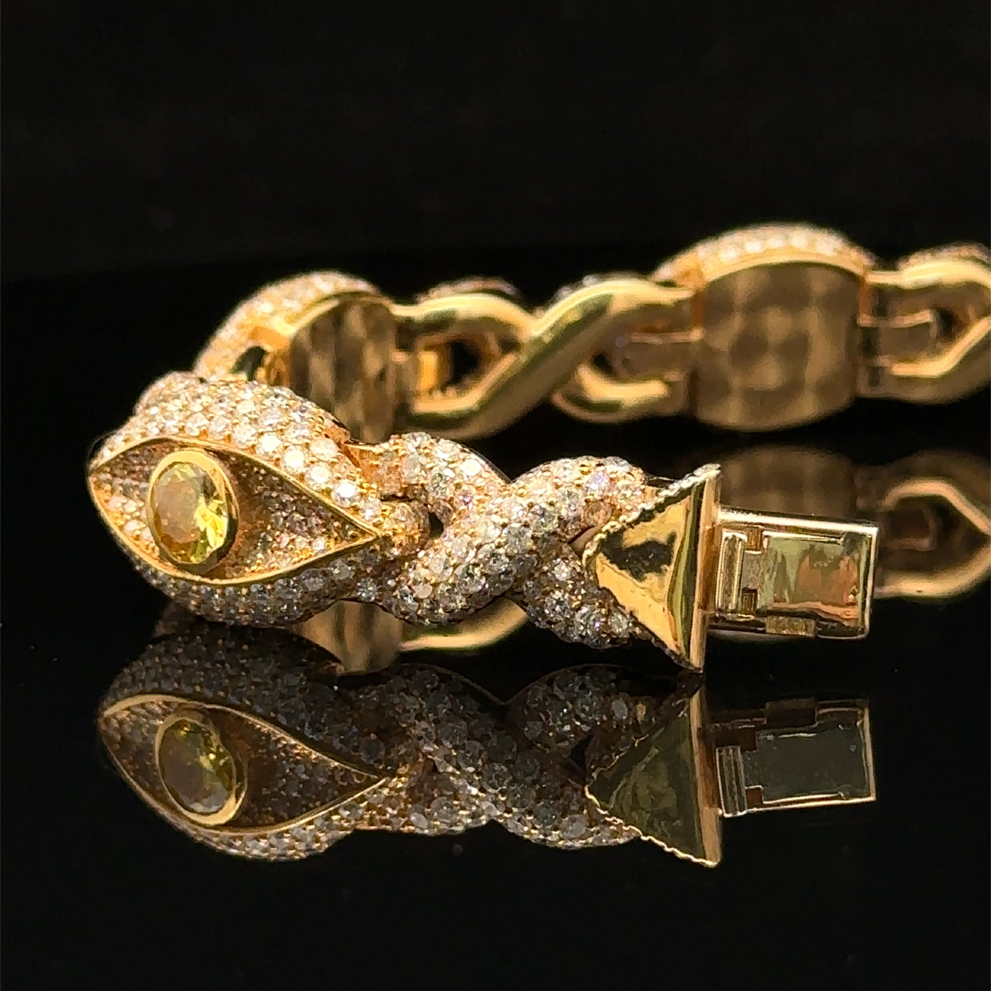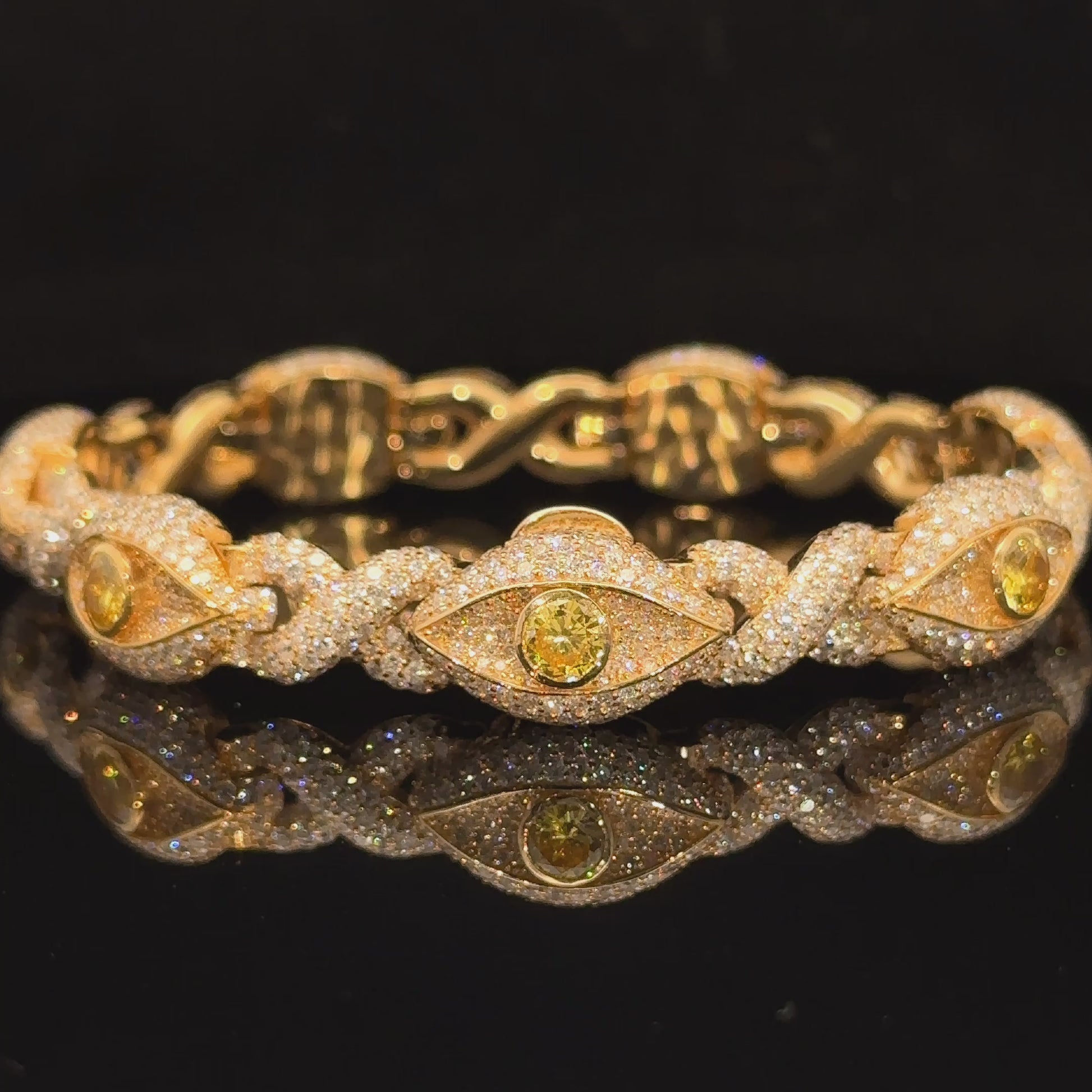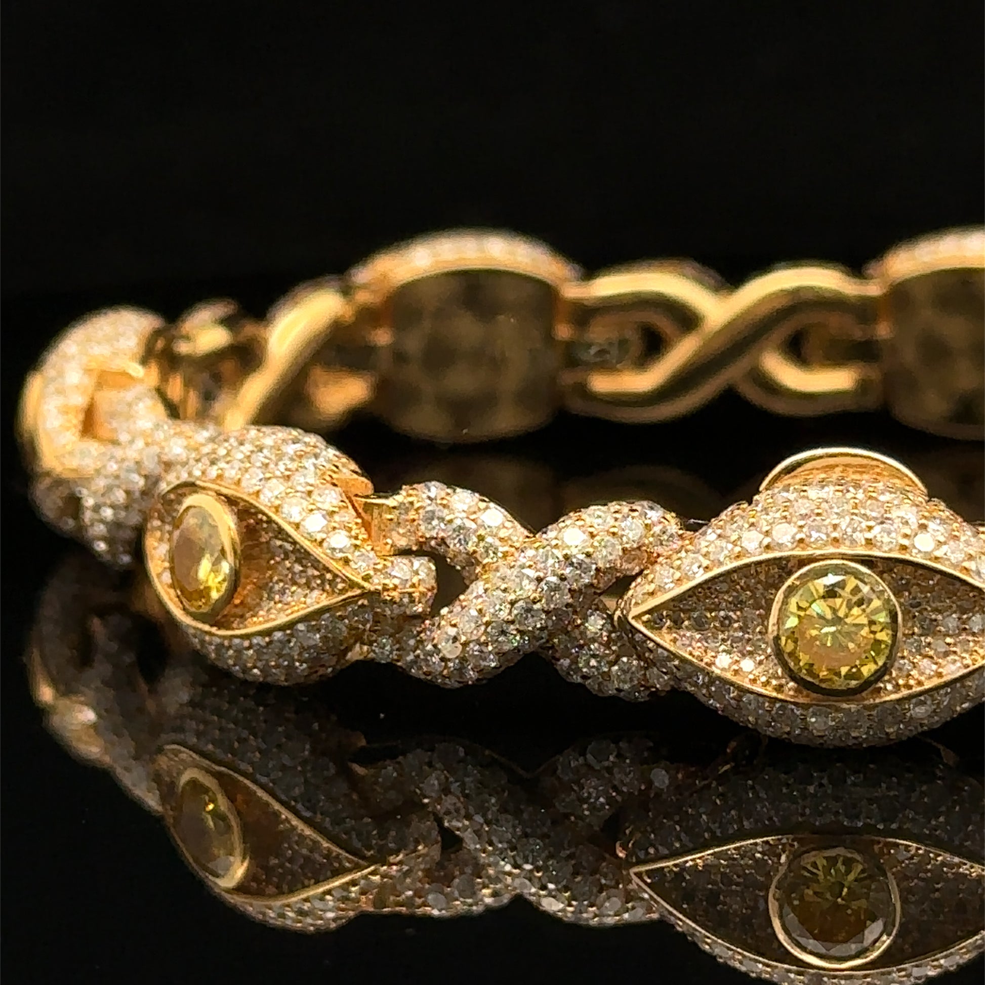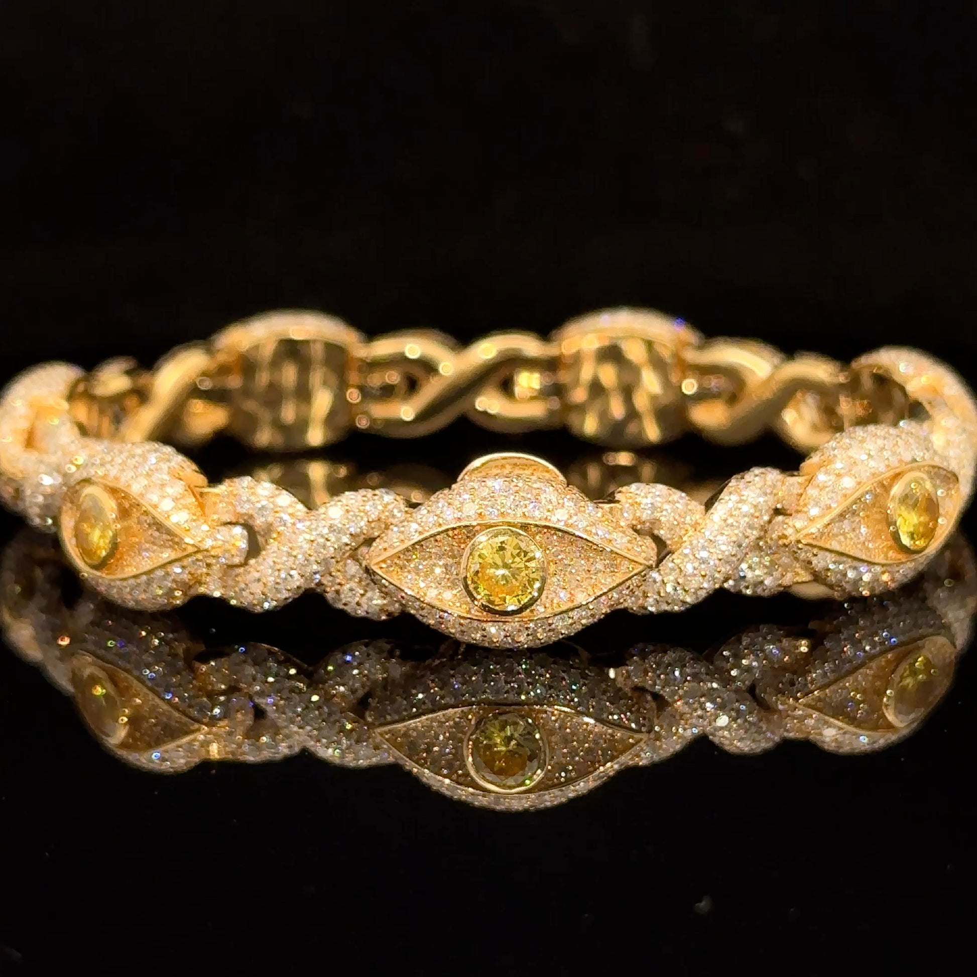 Yellow Gold and Diamond Evil Eye Bracelet with round diamonds and yellow stones