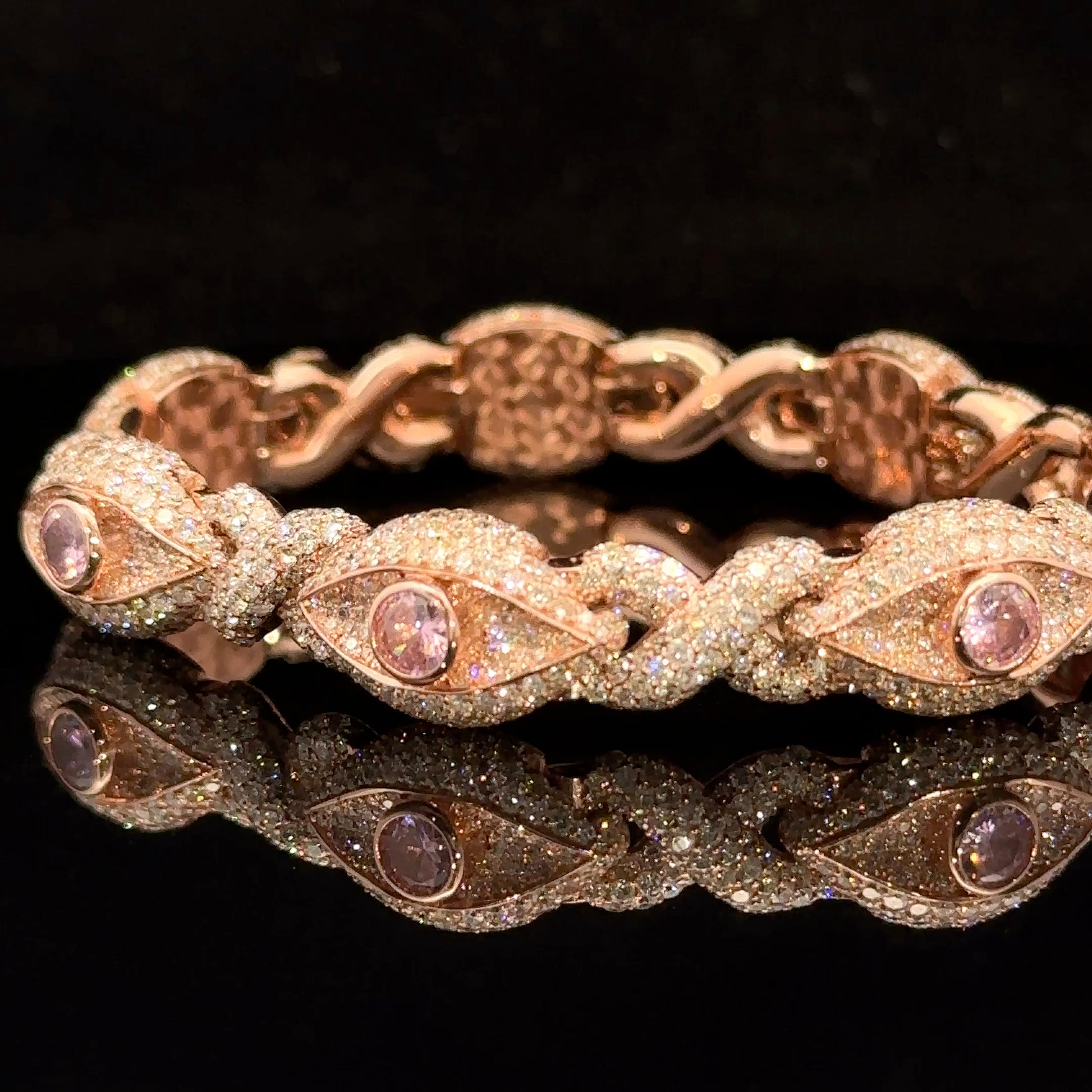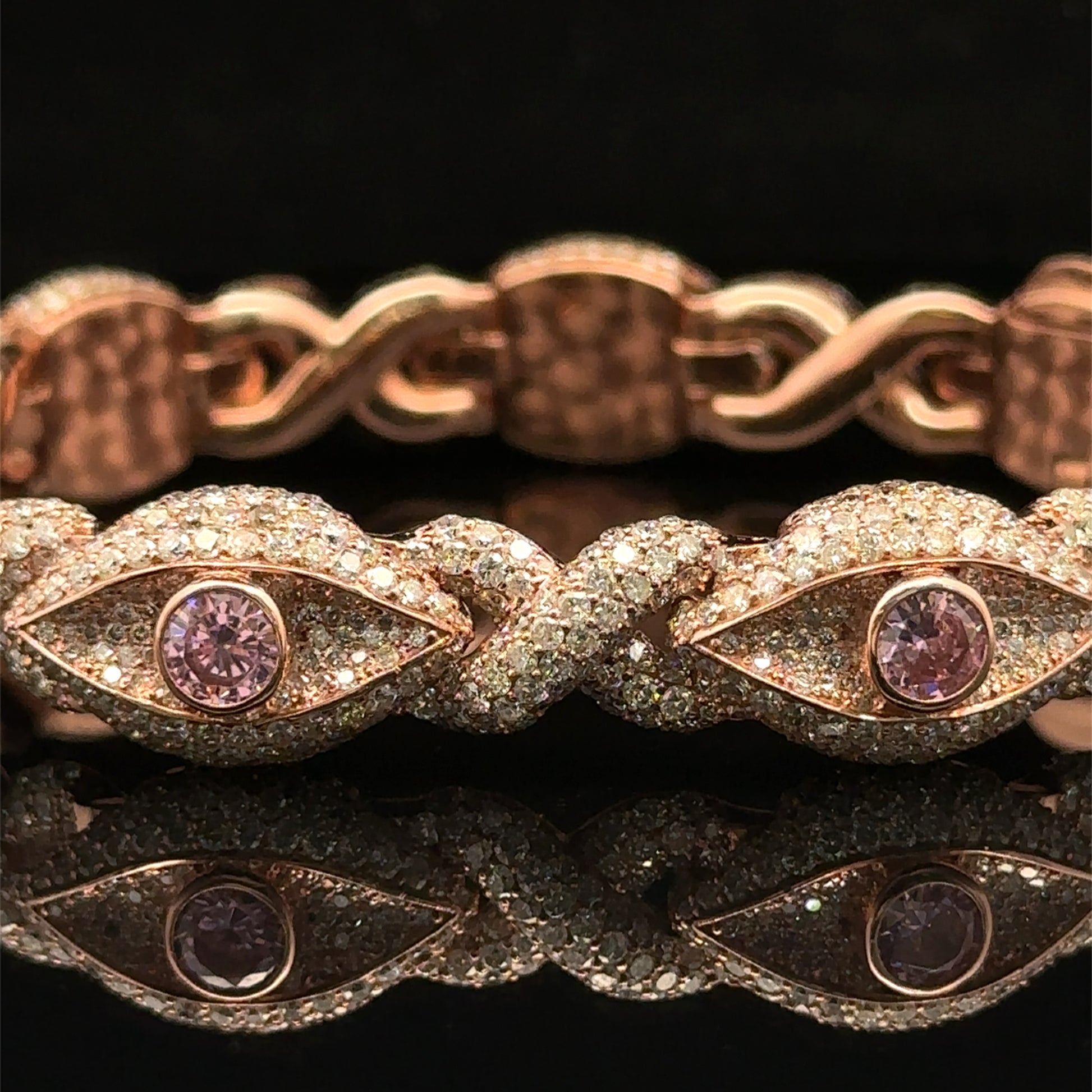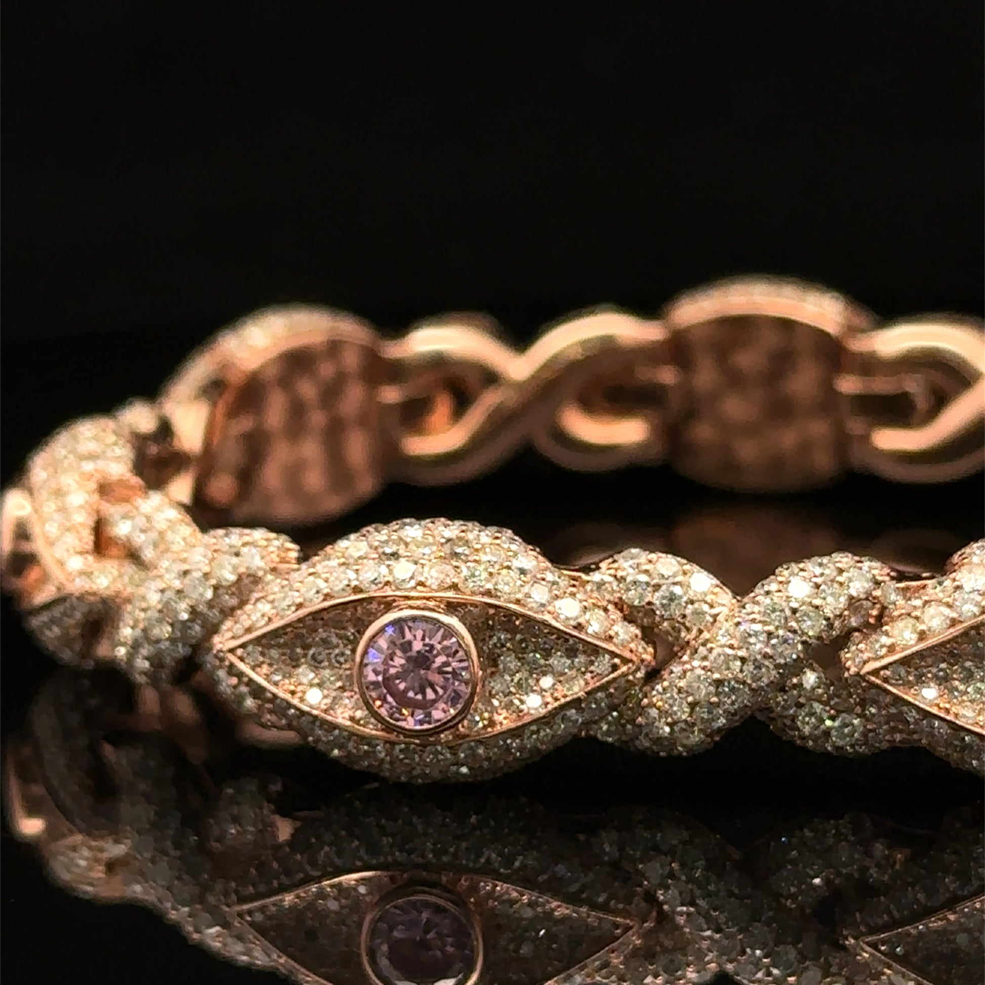 Rose Gold and Diamond Evil Eye Bracelet with round diamonds and pink stones