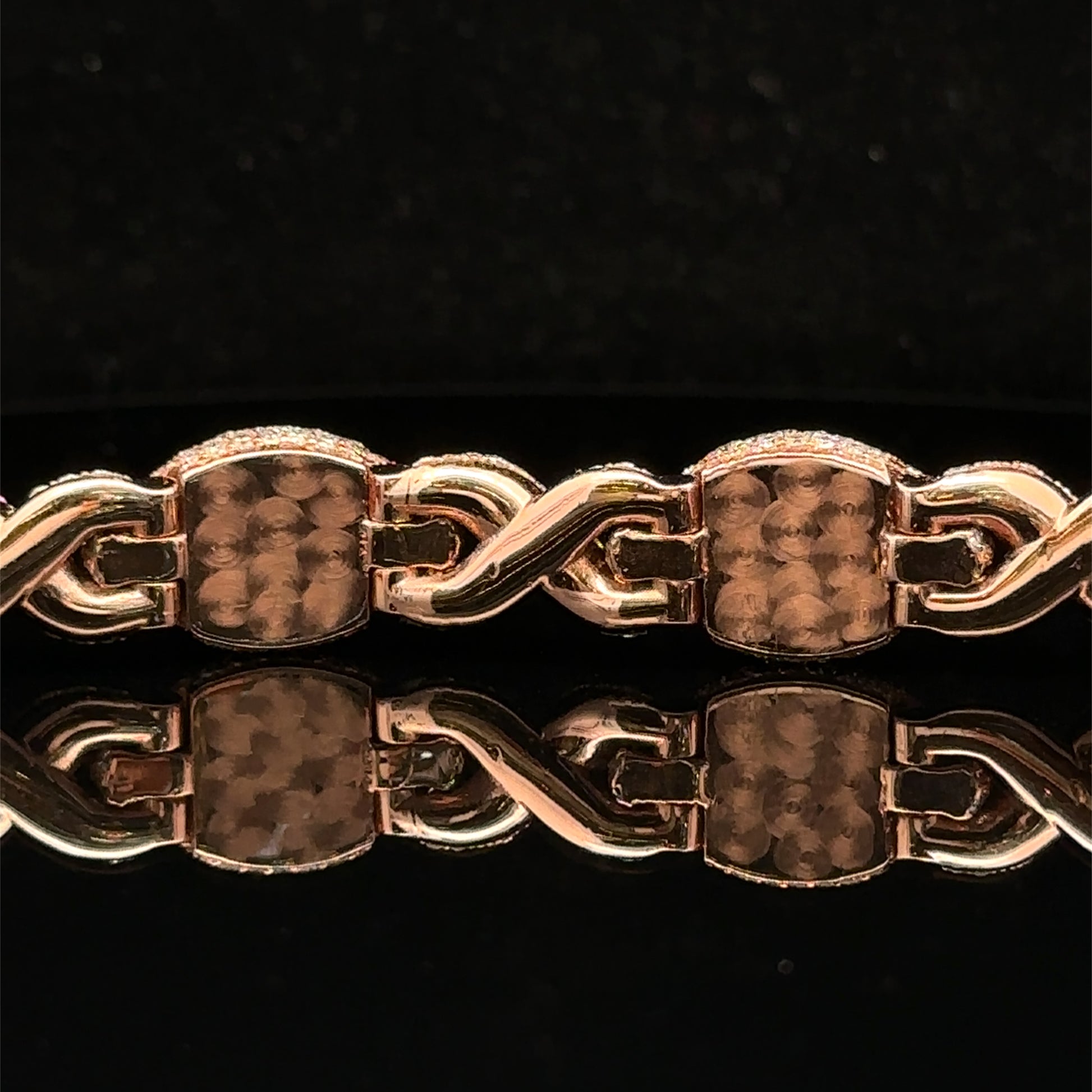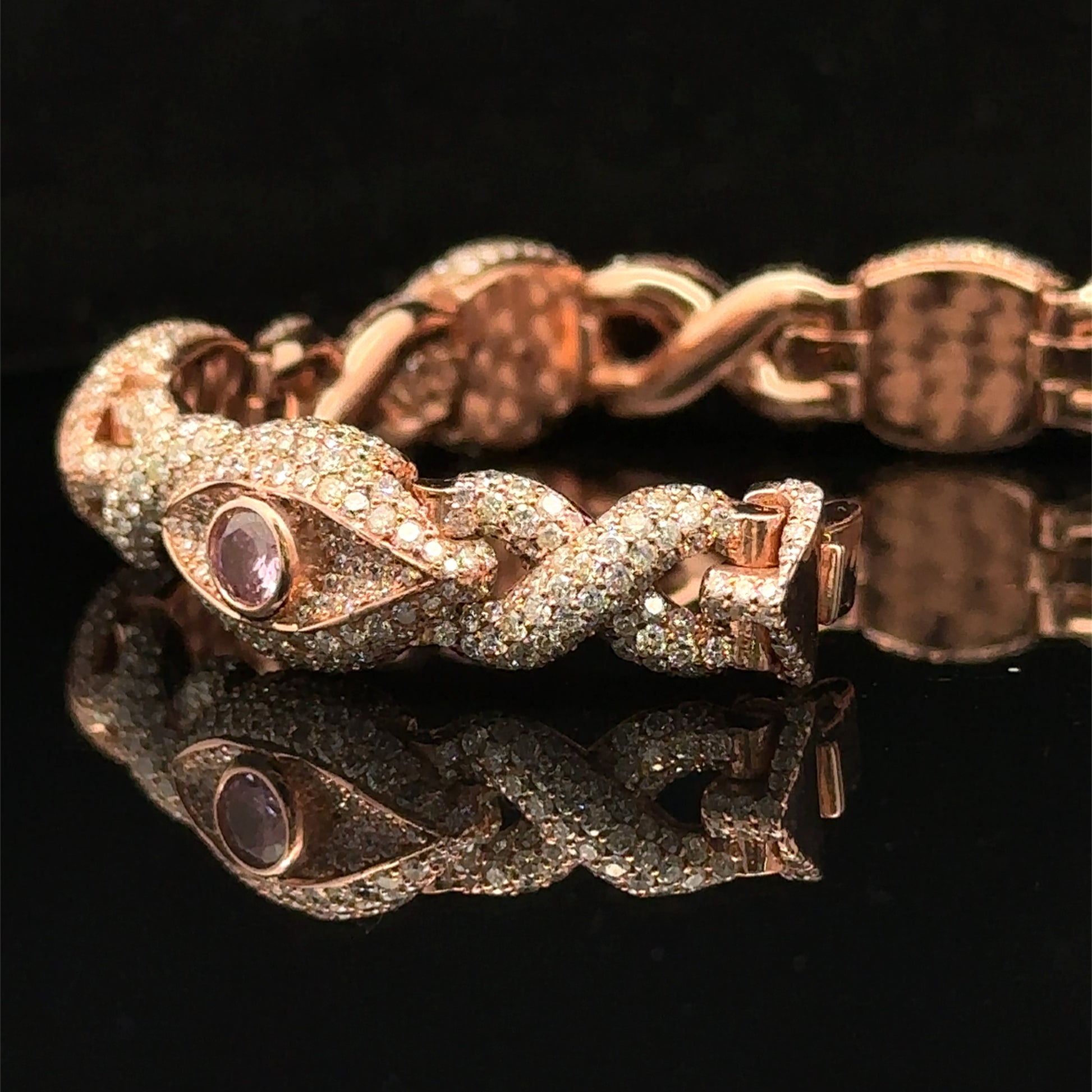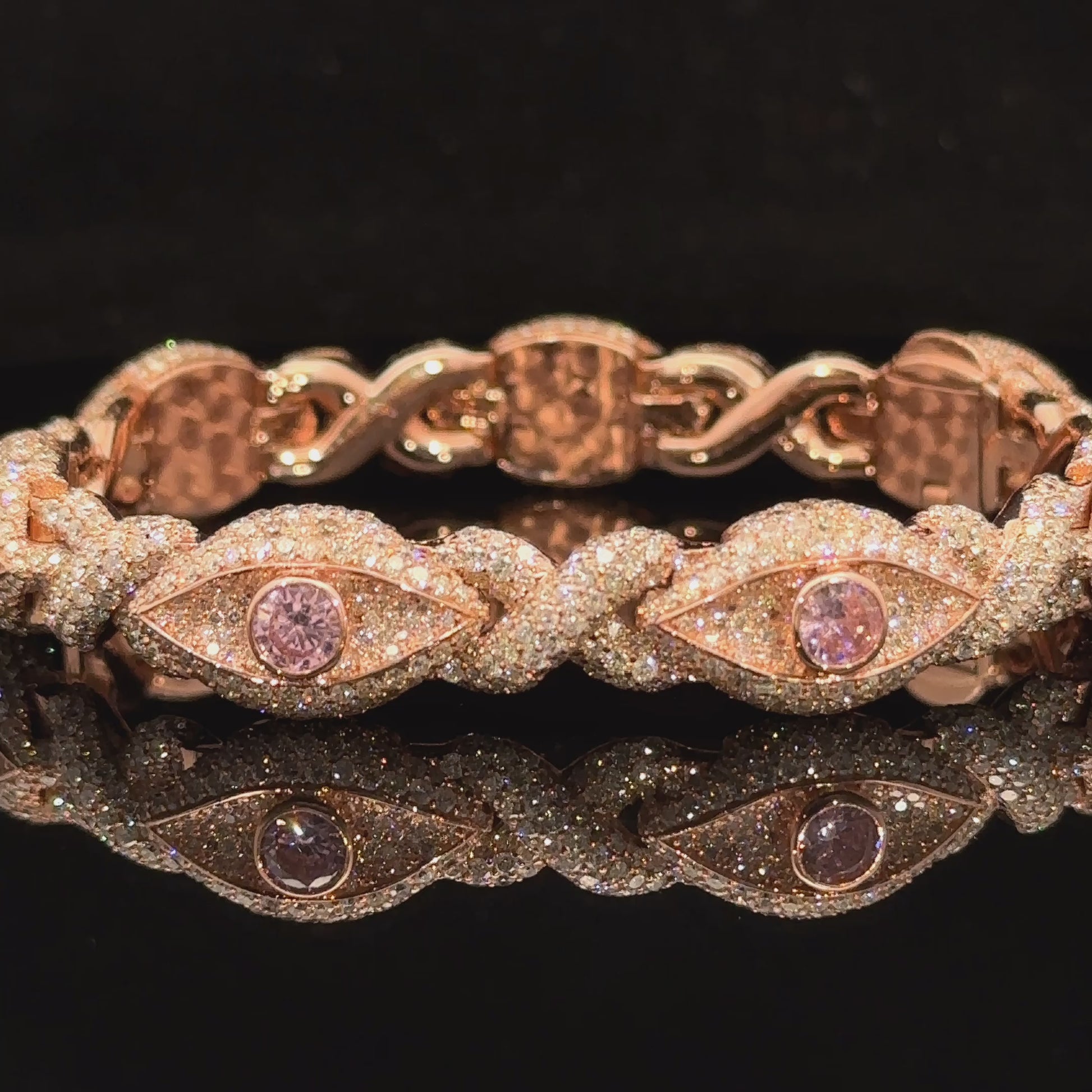 Rose Gold and Diamond Evil Eye Bracelet with round diamonds and pink stones